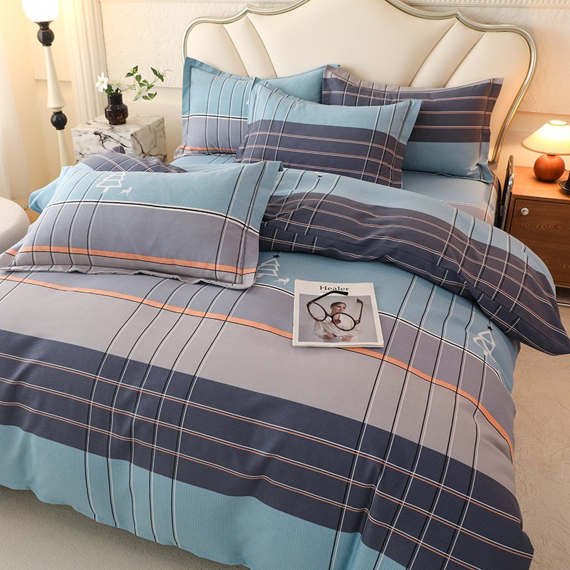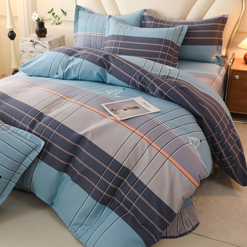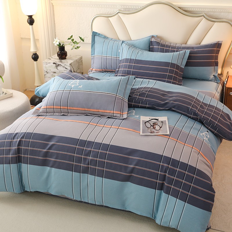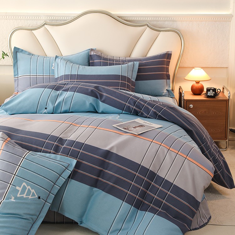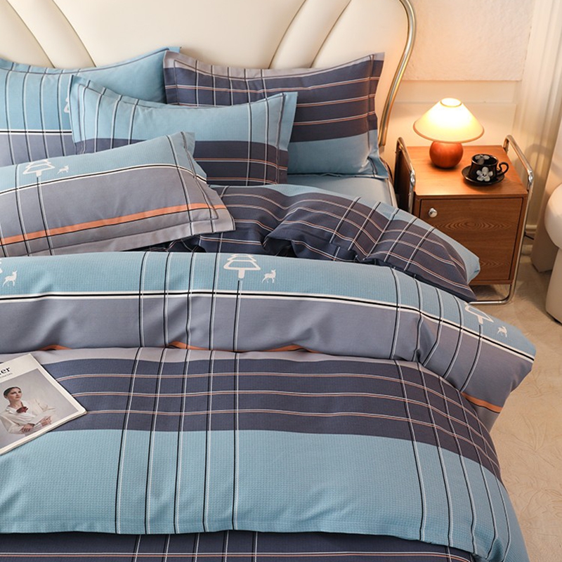 木易家居 2025新款全棉色织水洗棉四件套海伦-蓝,海伦-蓝