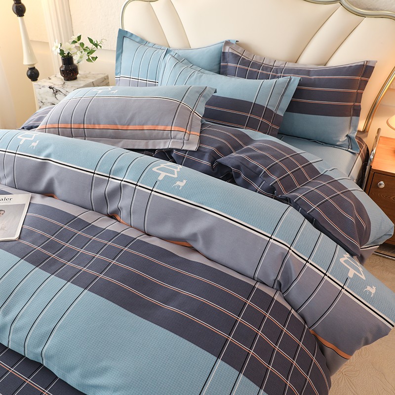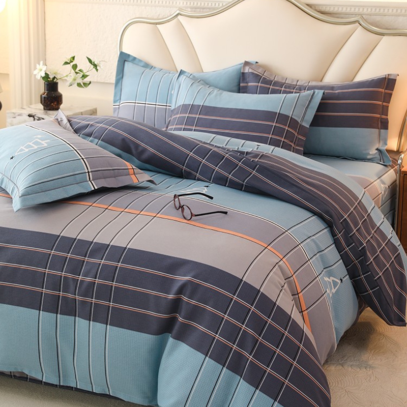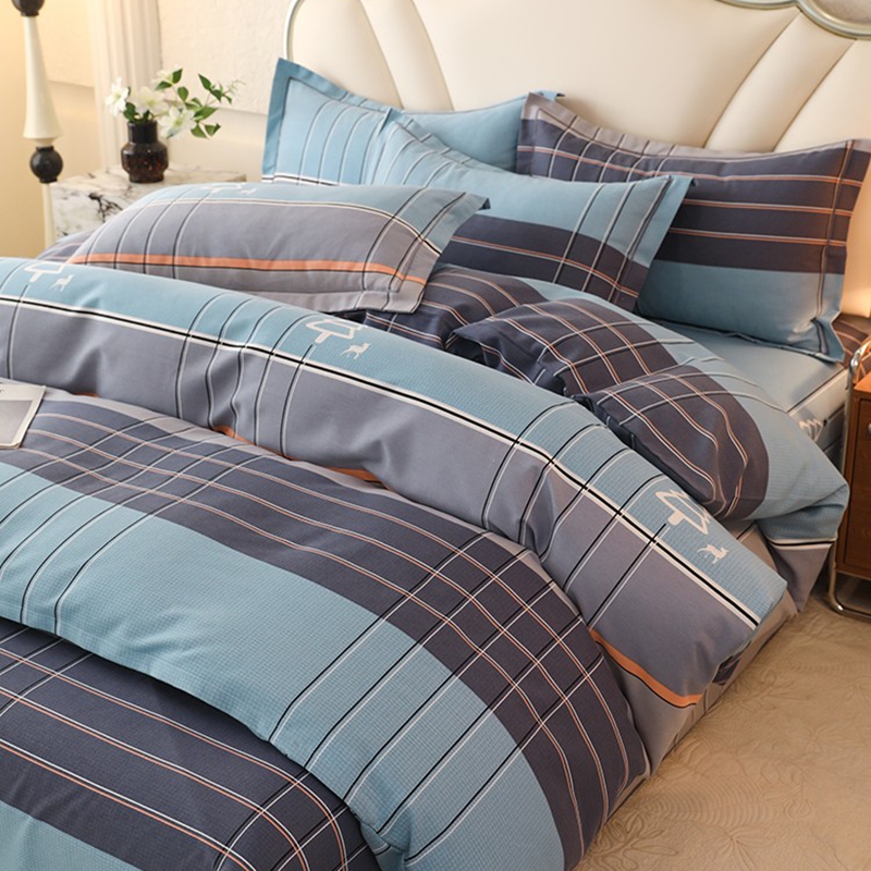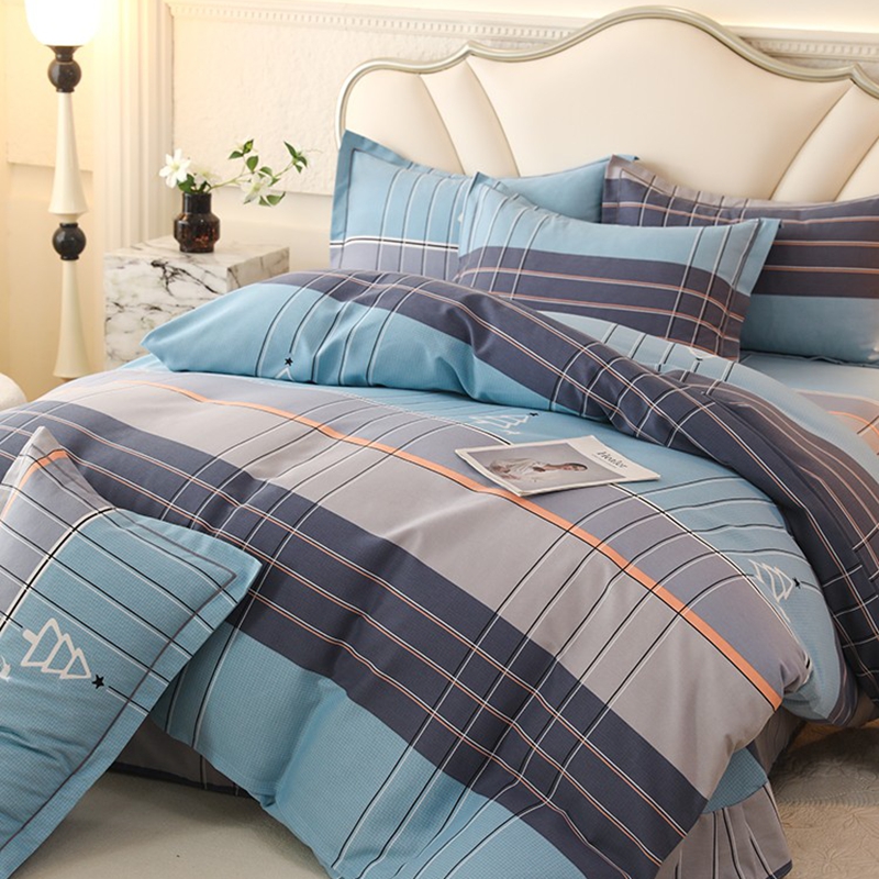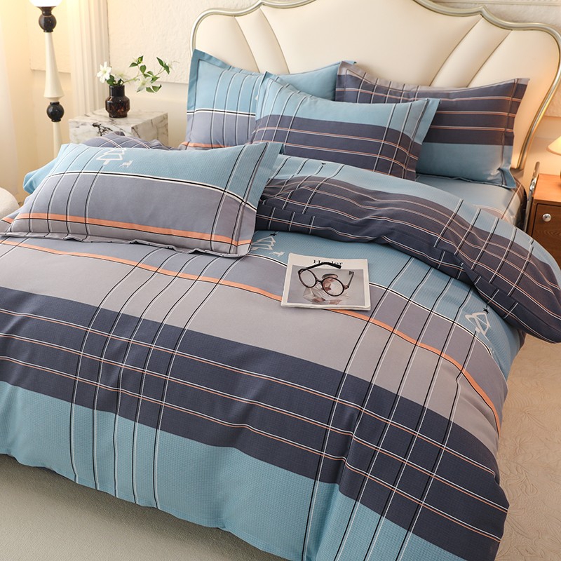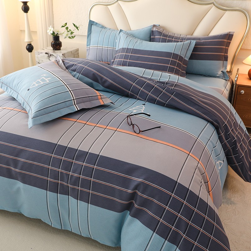 木易家居 2025新款全棉色织水洗棉四件套海伦-蓝,海伦-蓝