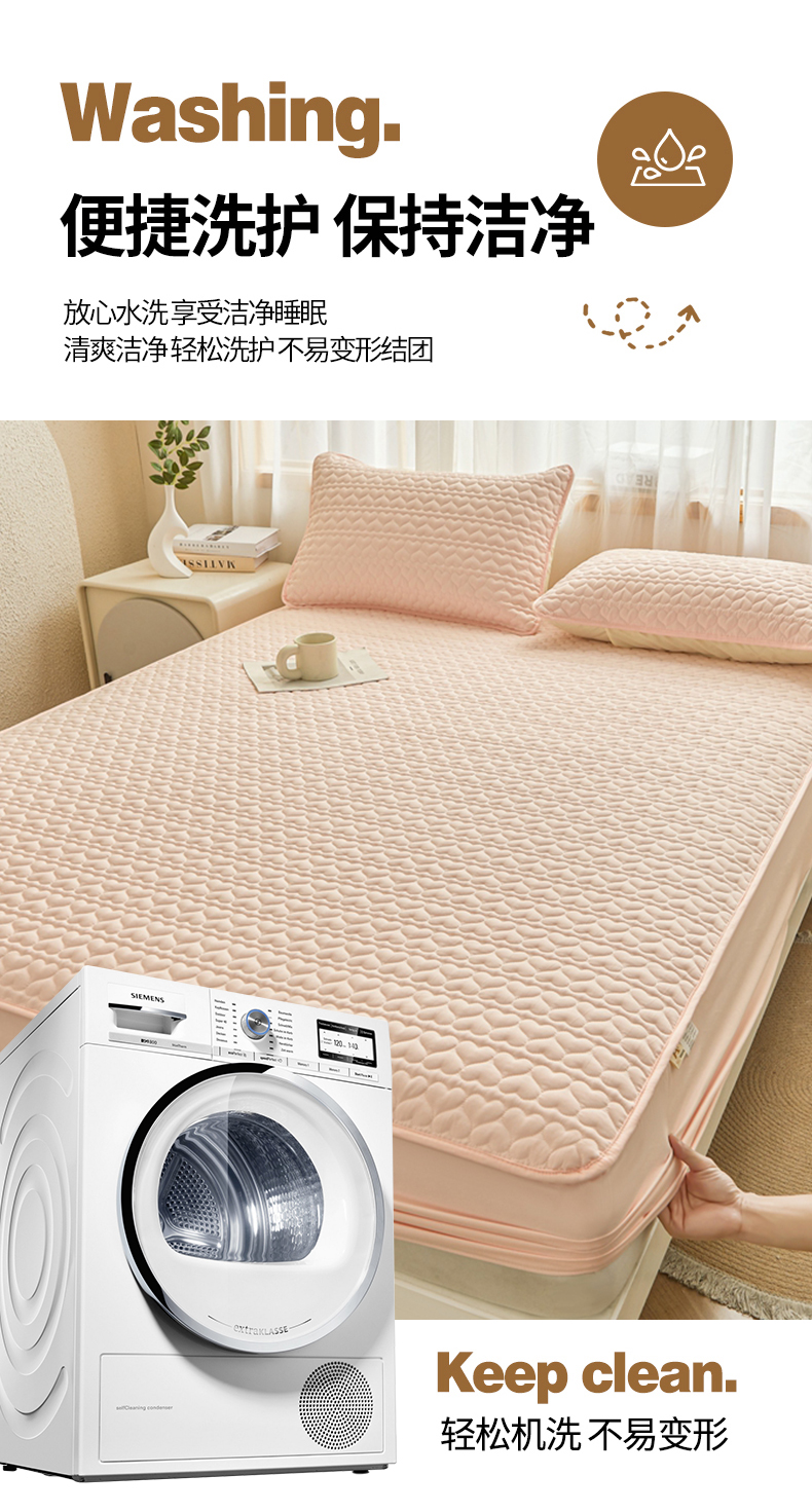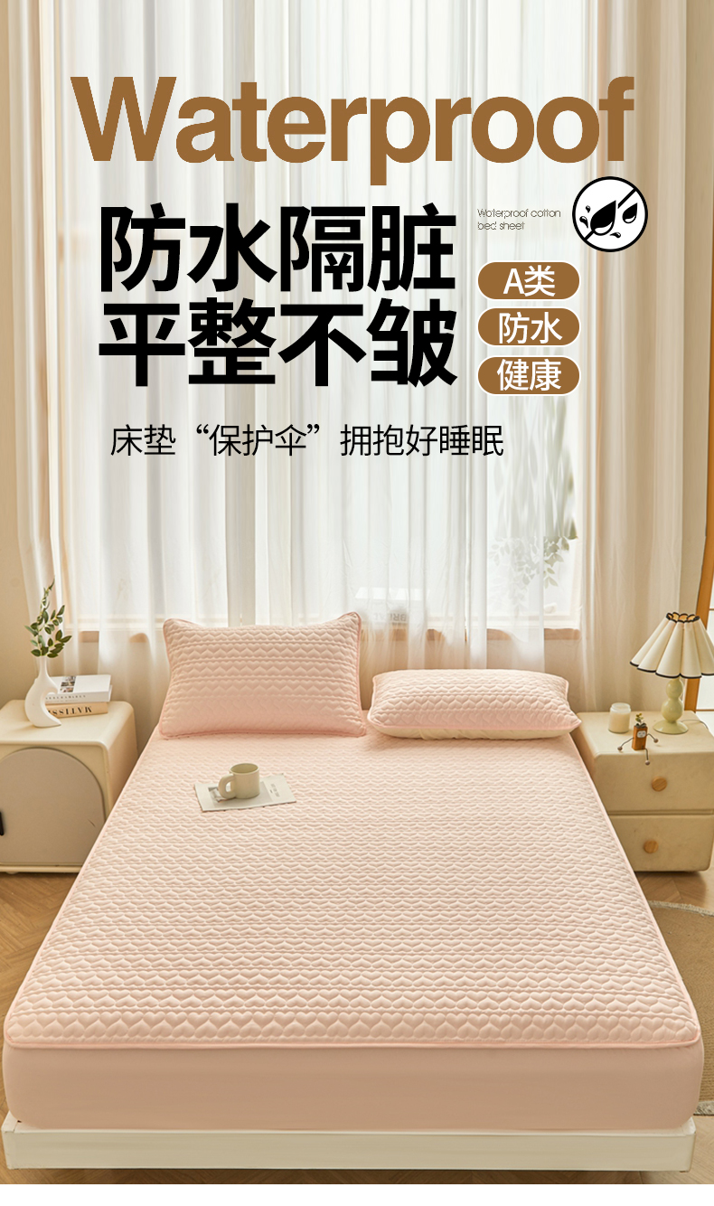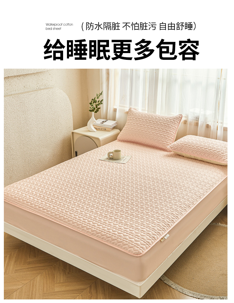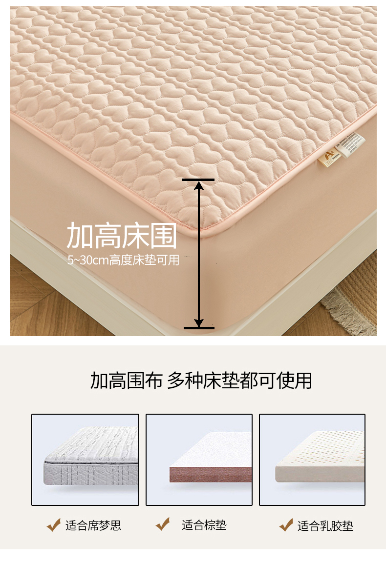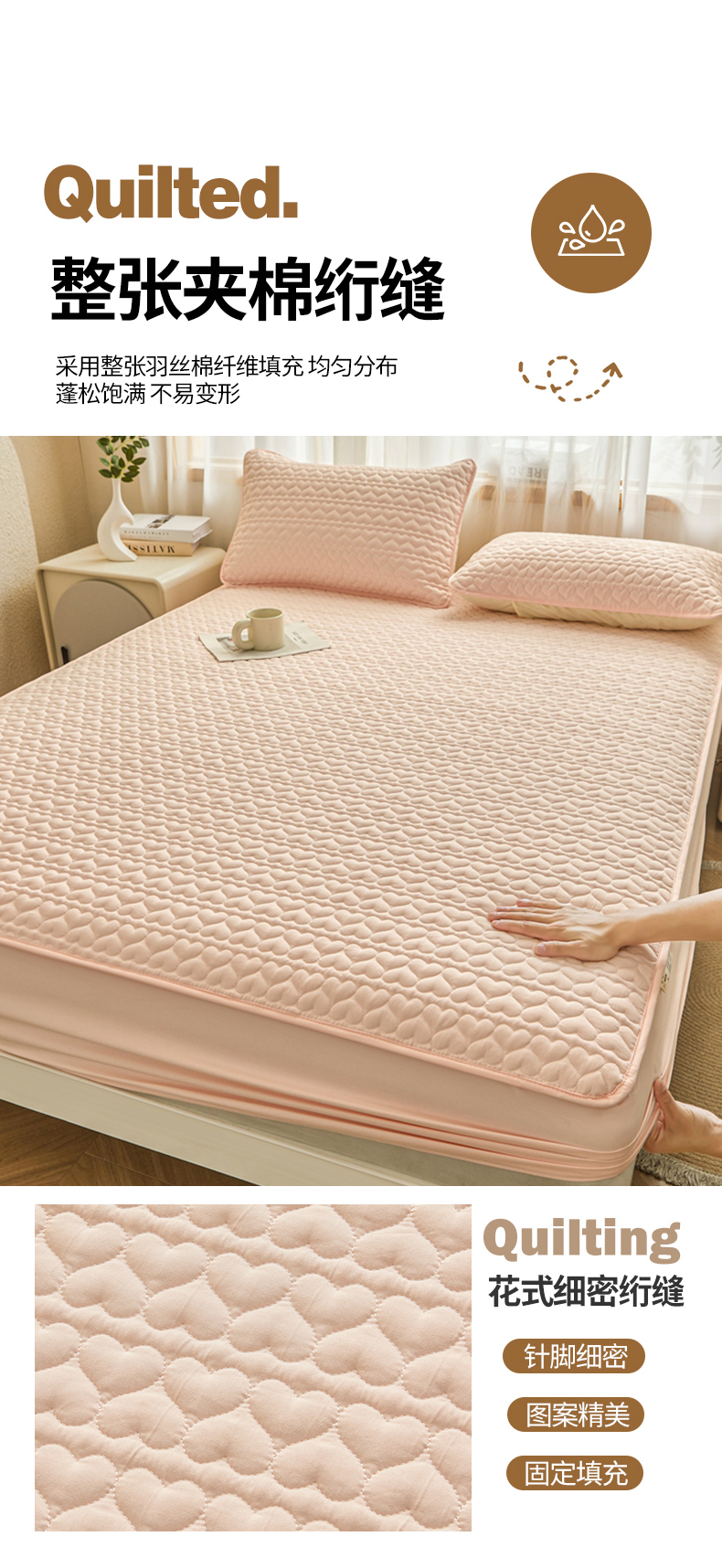 • 91家纺网 家纺一手货源 找家纺 邵依家纺 2025新款A类大豆夹棉爱心款原棉防水床笠 爱心浅粉