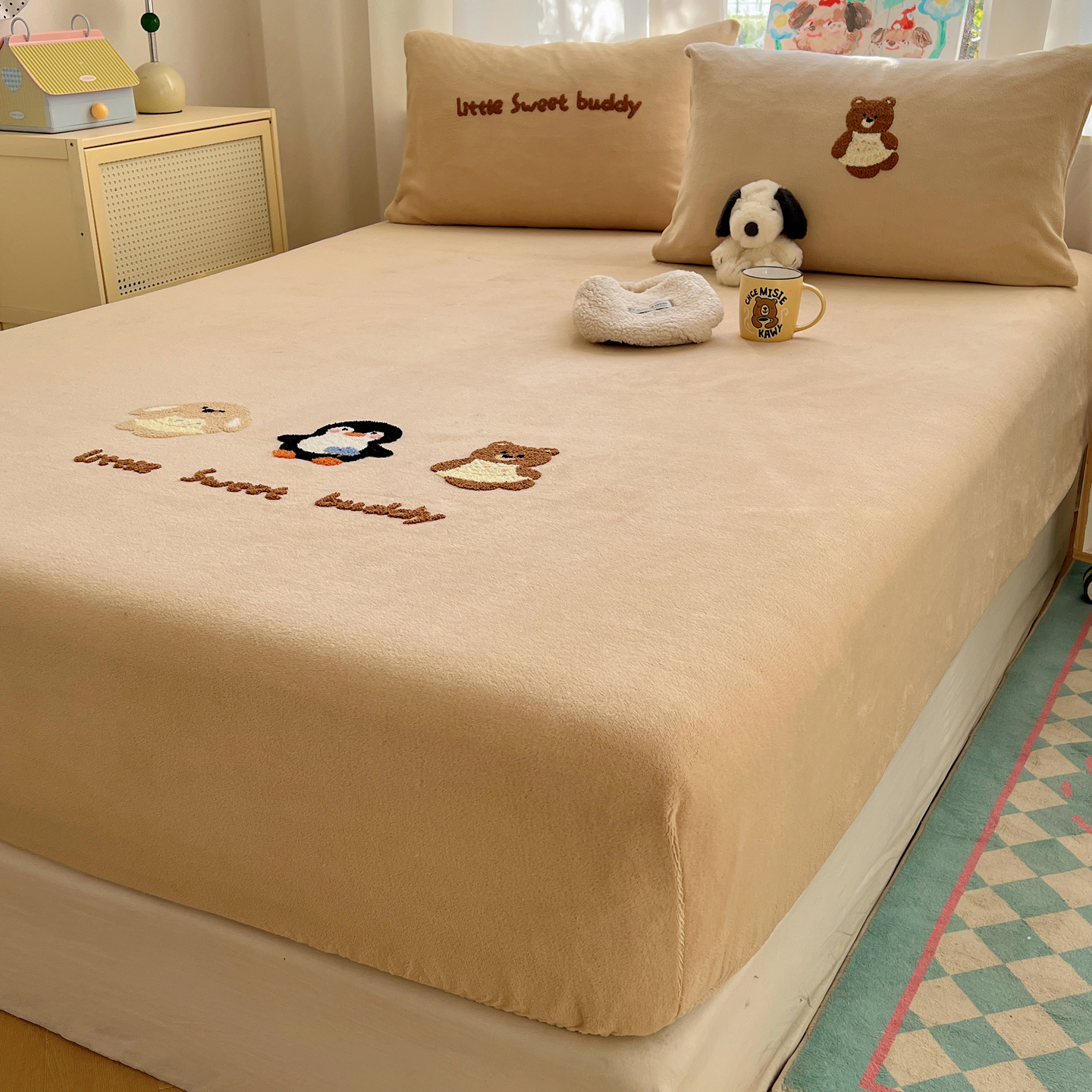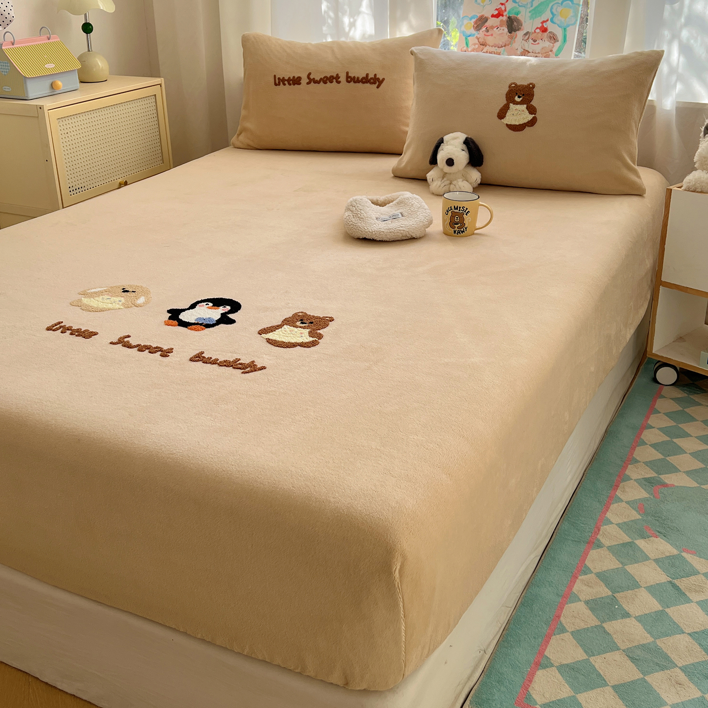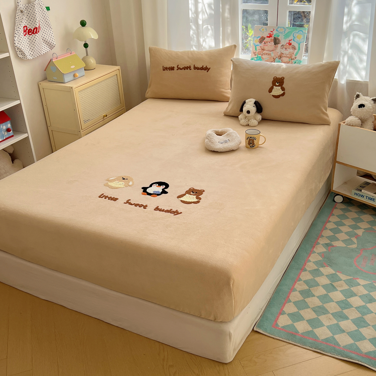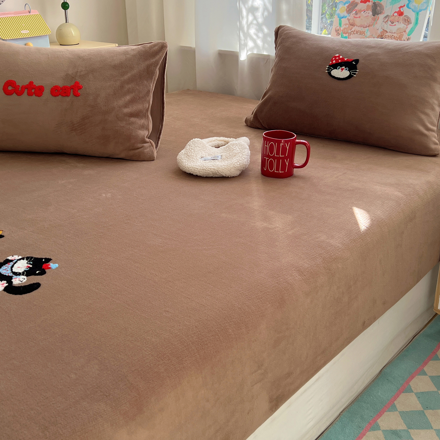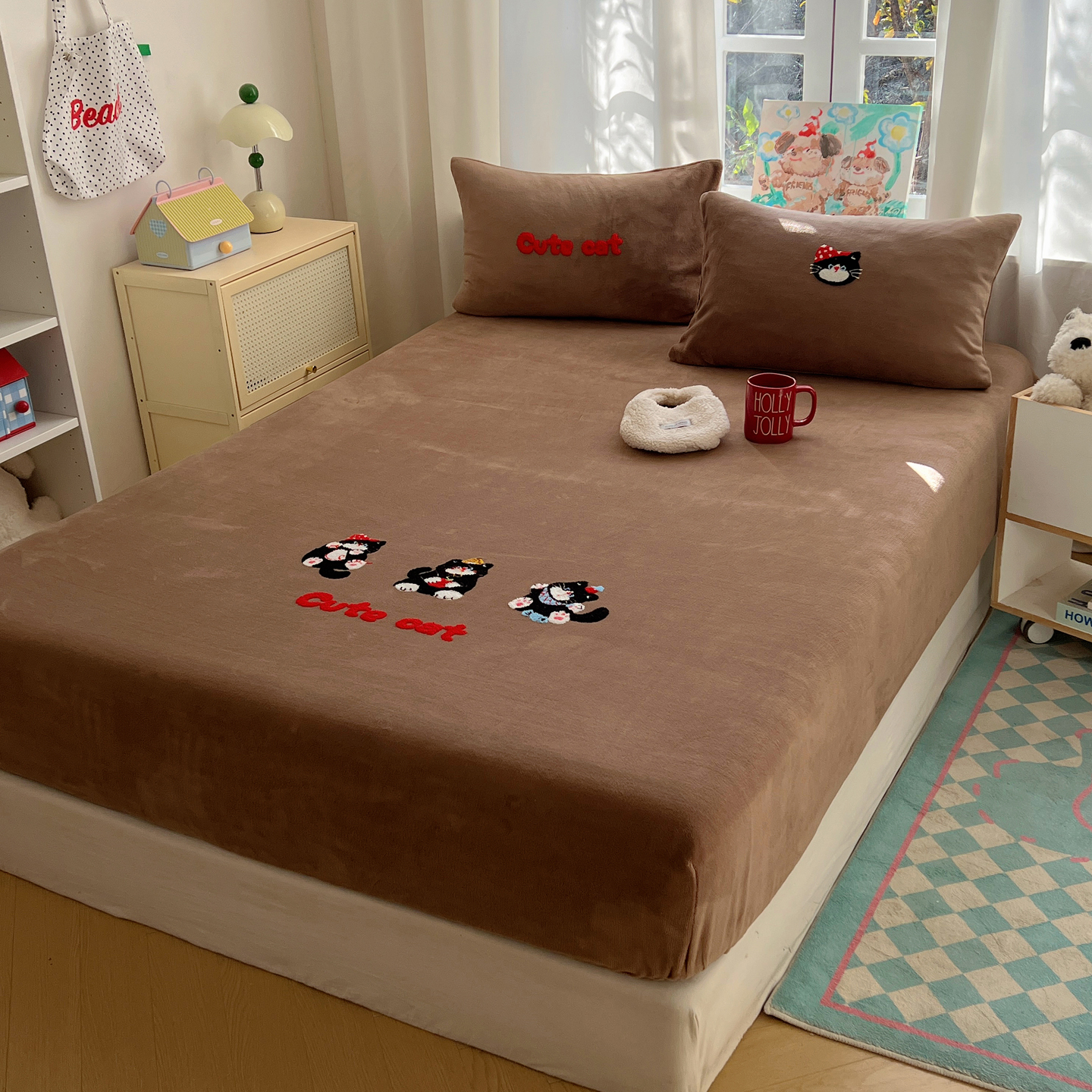 桃喜 2025新款秋冬牛奶绒床笠三件套(会员-3) 三只小猫