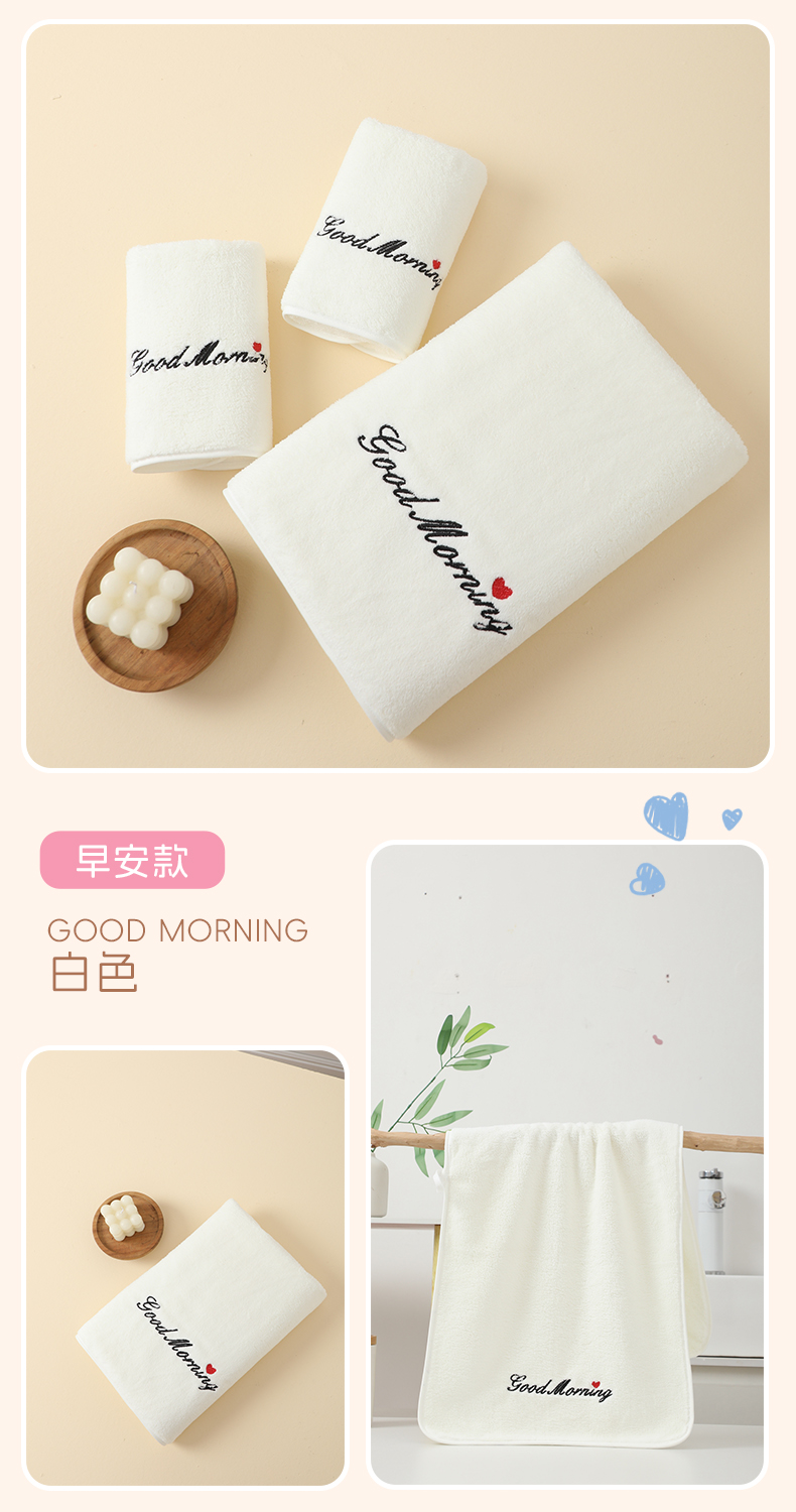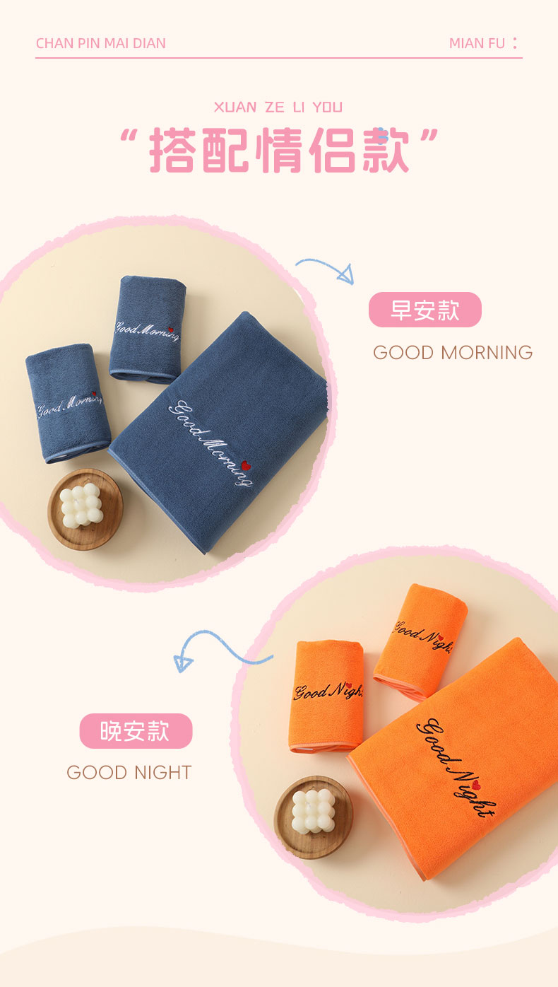 当前位置: 91家纺网 > 商品网购 > 居家日用 > 毛巾/浴巾/浴袍 > 毛巾 > 彩虹毛巾 2025早安晚安情侣款毛巾浴巾两件套加厚款珊瑚绒毛巾浴巾套装 good night橙色浴巾 浴巾70*140cm