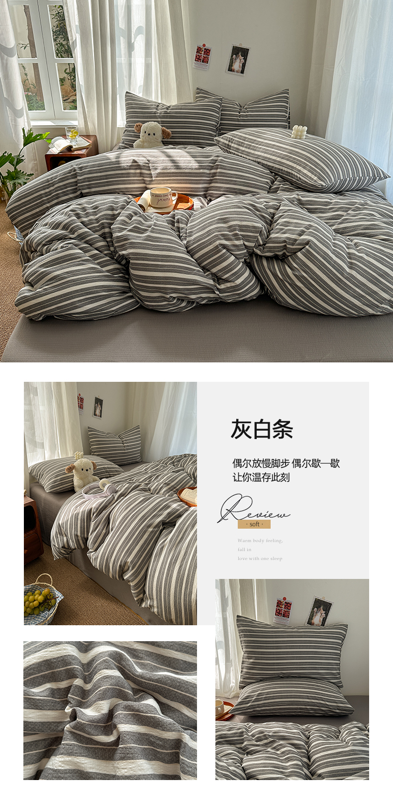 当前位置: 91家纺网 > 商品网购 > 床品套件 > 四件套 > 双层纱四件套 > 思诺羽床笠 2026新款亲肤云朵双层纱无印风水洗棉三件套四件套 米兰格