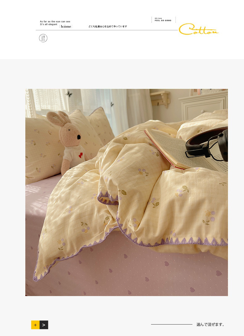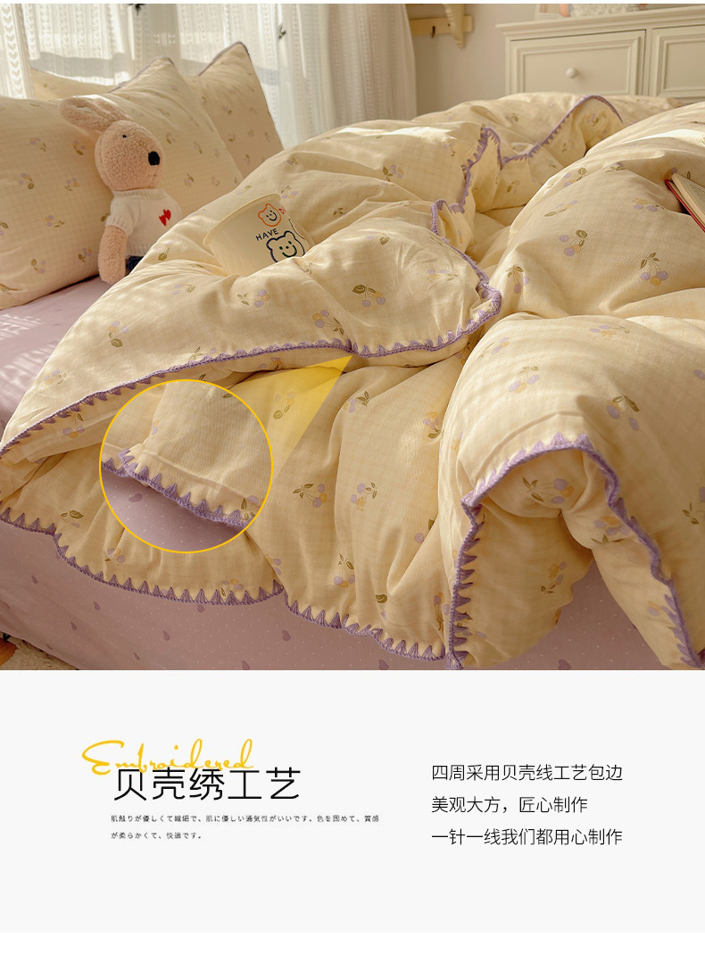(总)瑞莱 2026新款A类全棉纯棉有氧双层纱四件套,白熊小姐,彩色木马,淡彩花笺,费尔岛小熊,焦糖奶汪-桔,焦糖奶汪-绿,萌星,苹果星星人,小樱桃,樱桃画报