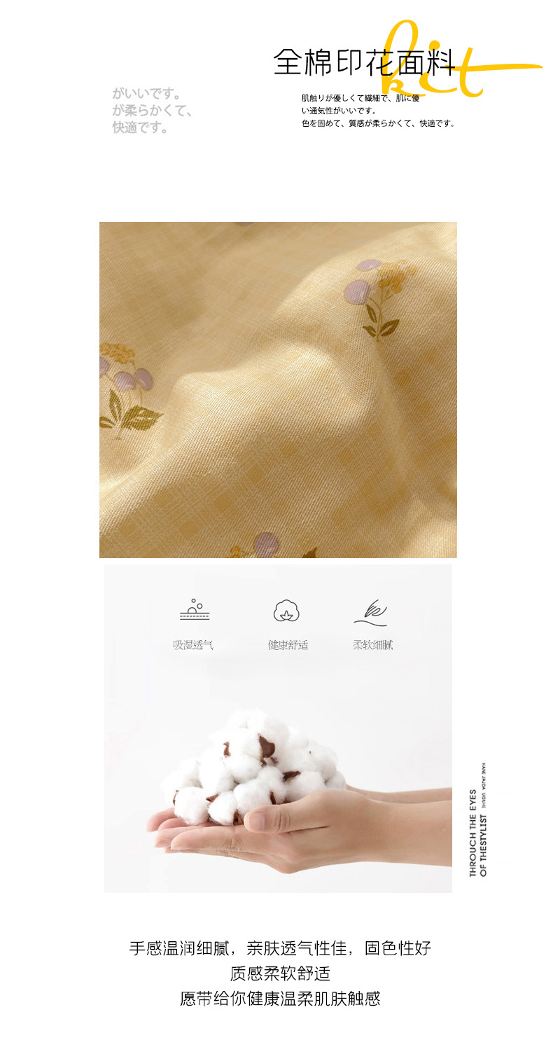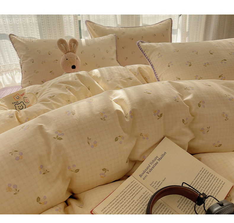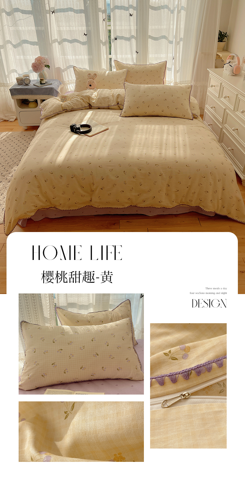 商品名称:瑞莱 2026新款全棉印花贝壳边四件套 樱桃甜趣-黄