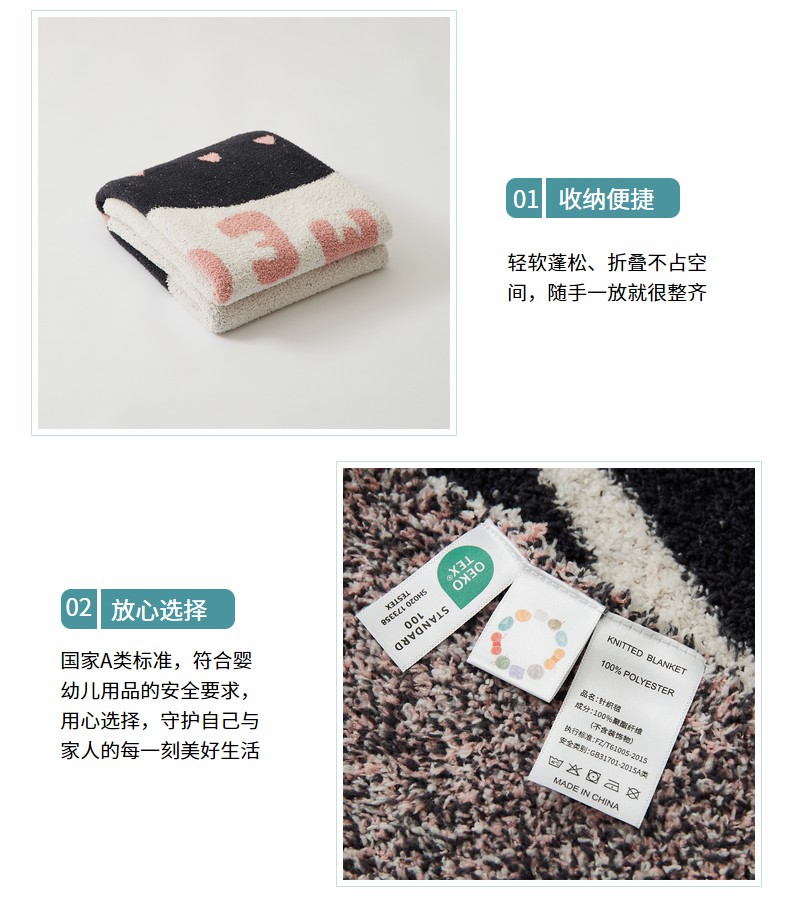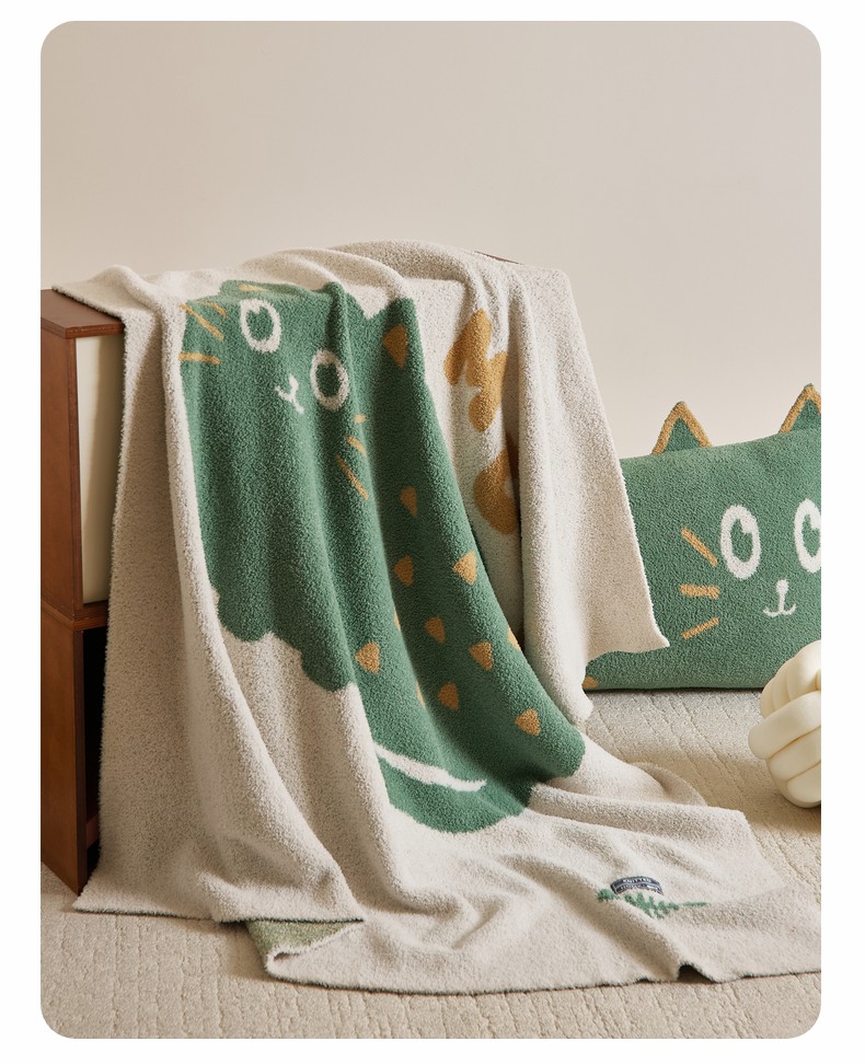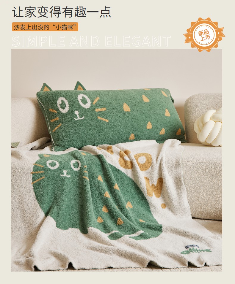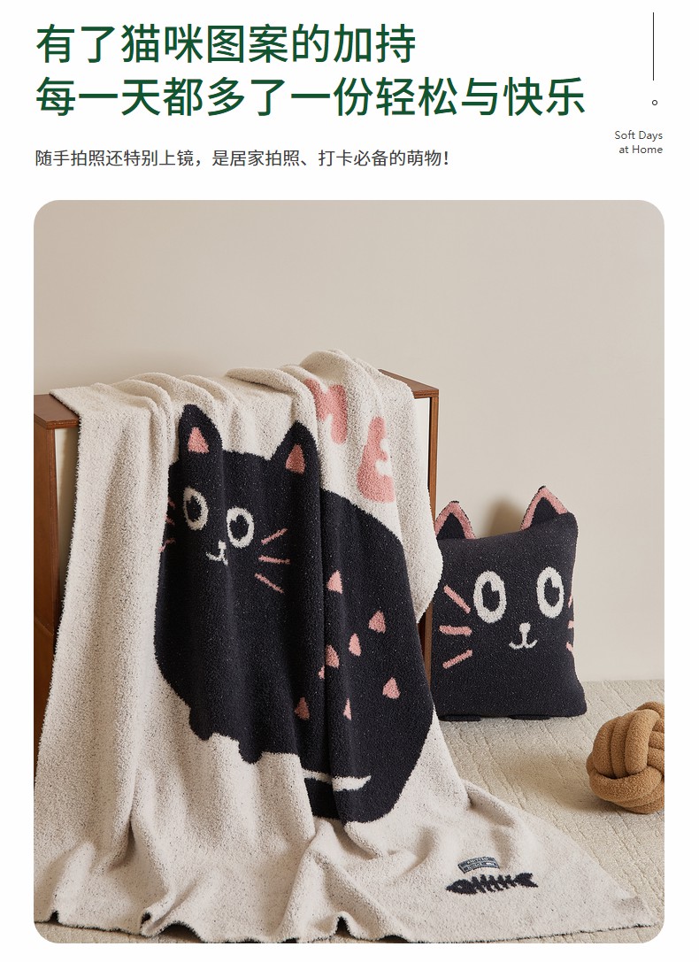 暖绵绵家纺 2025新款毛茸茸小猫毯子毛毯抱枕含芯-黑糖【券后最低零售价:毯子173元、抱枕(含芯)153元】 组合图