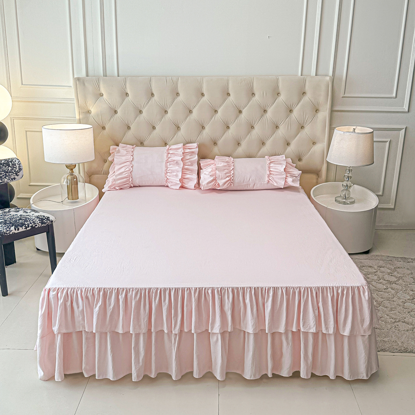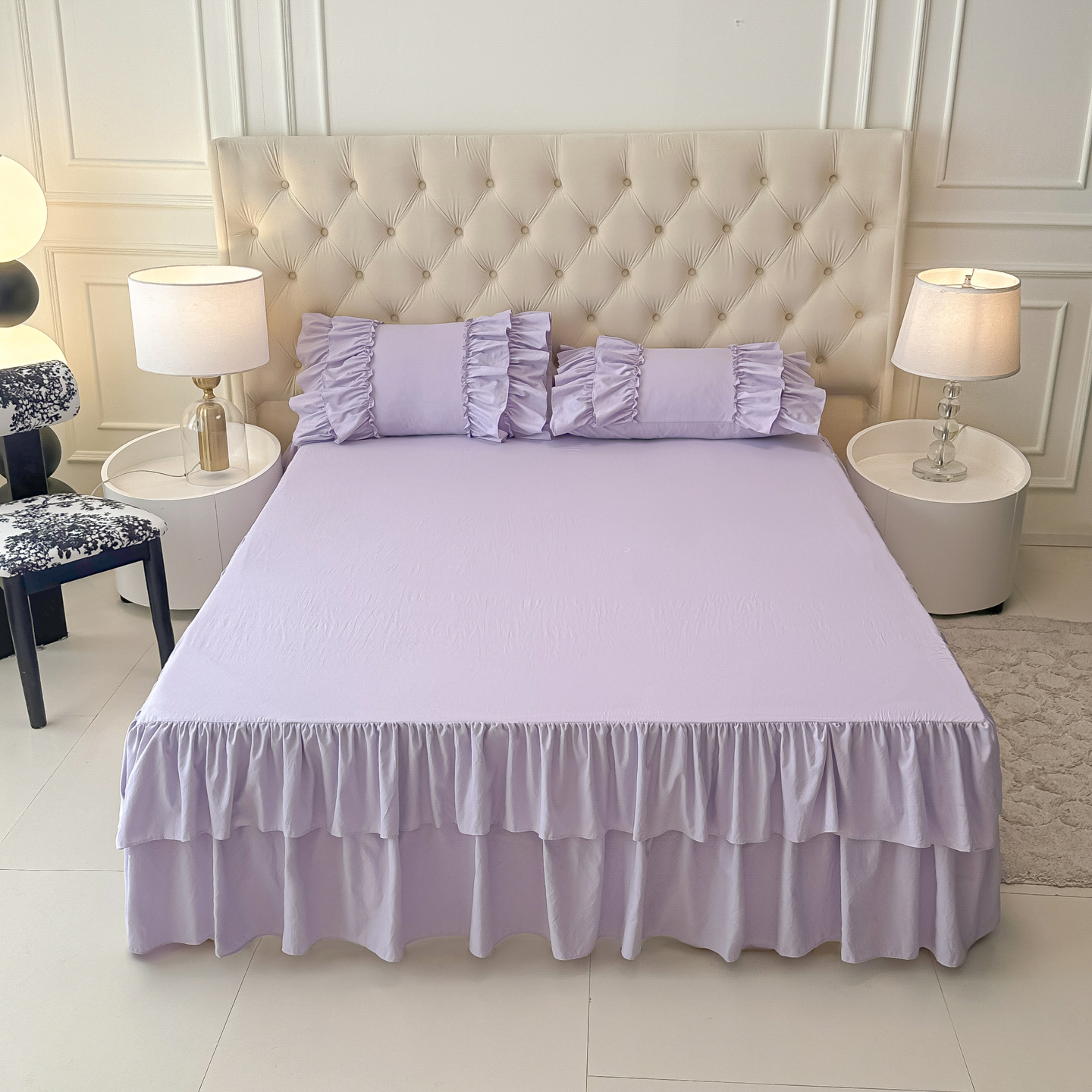 乐卧家居 2026新款韩系公主风柔软多层荷叶边床裙单品系列 咖