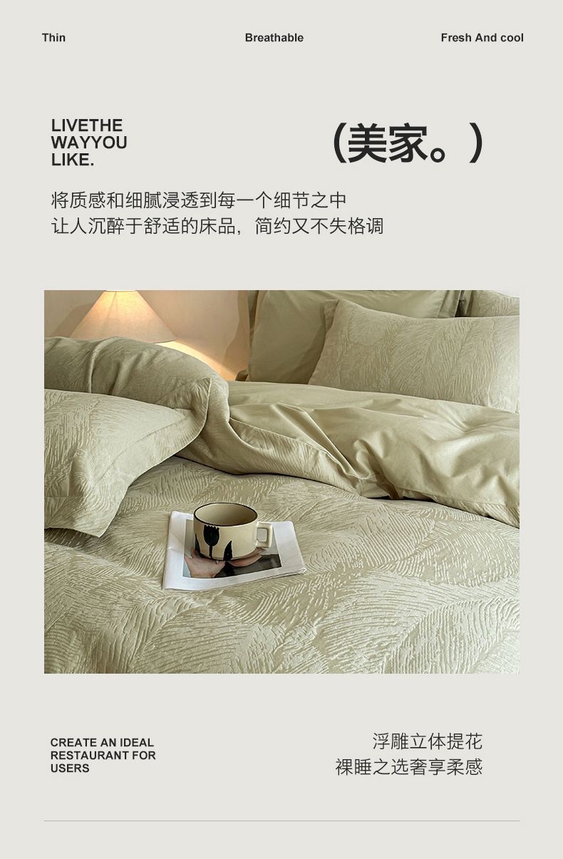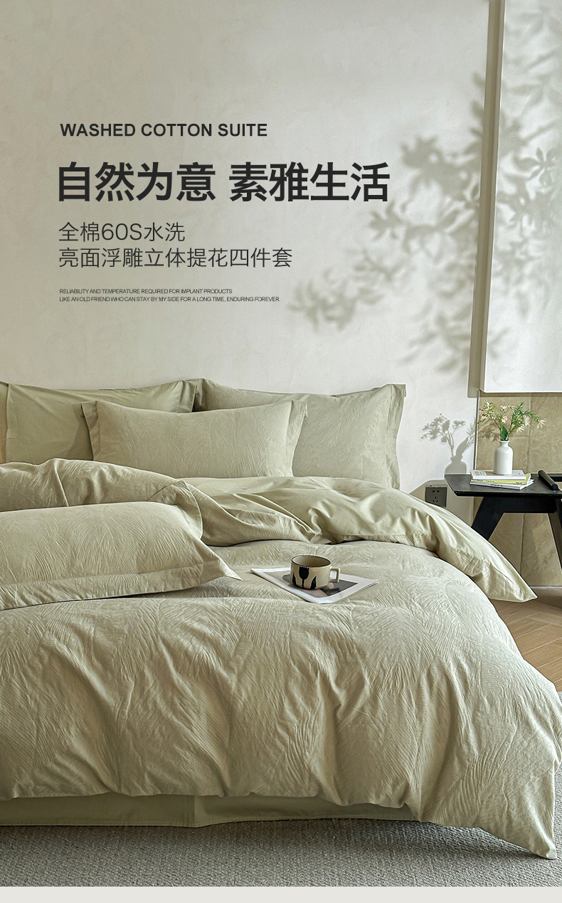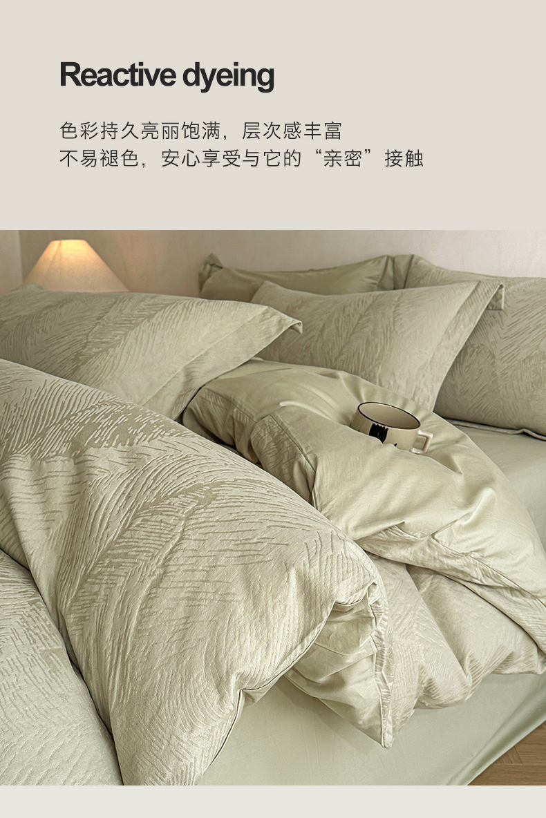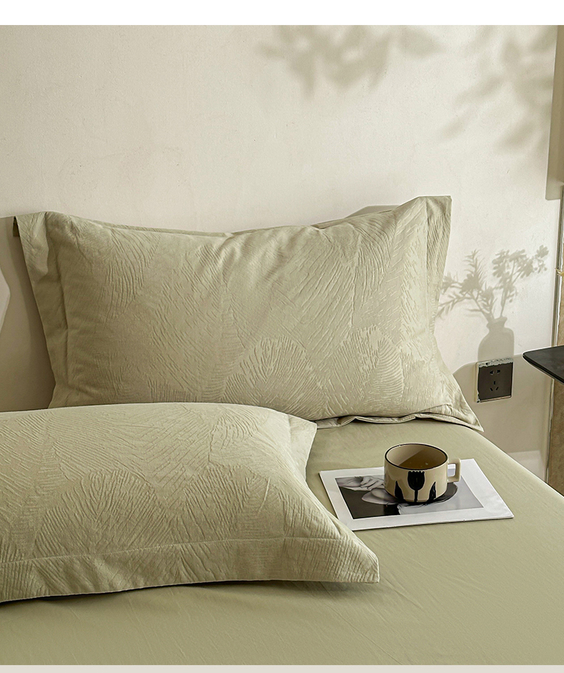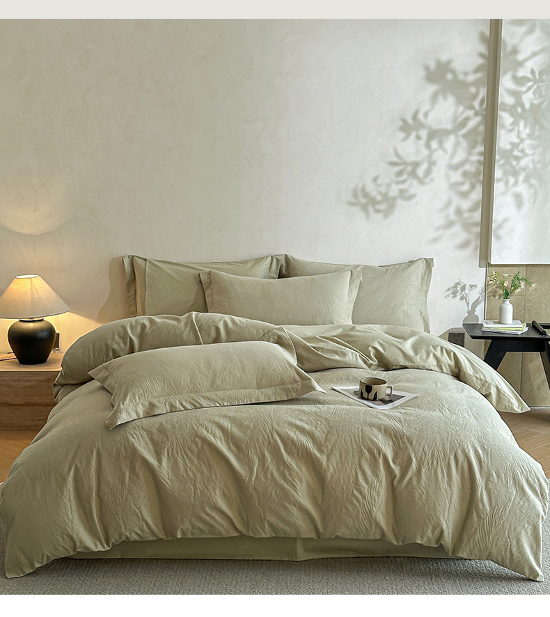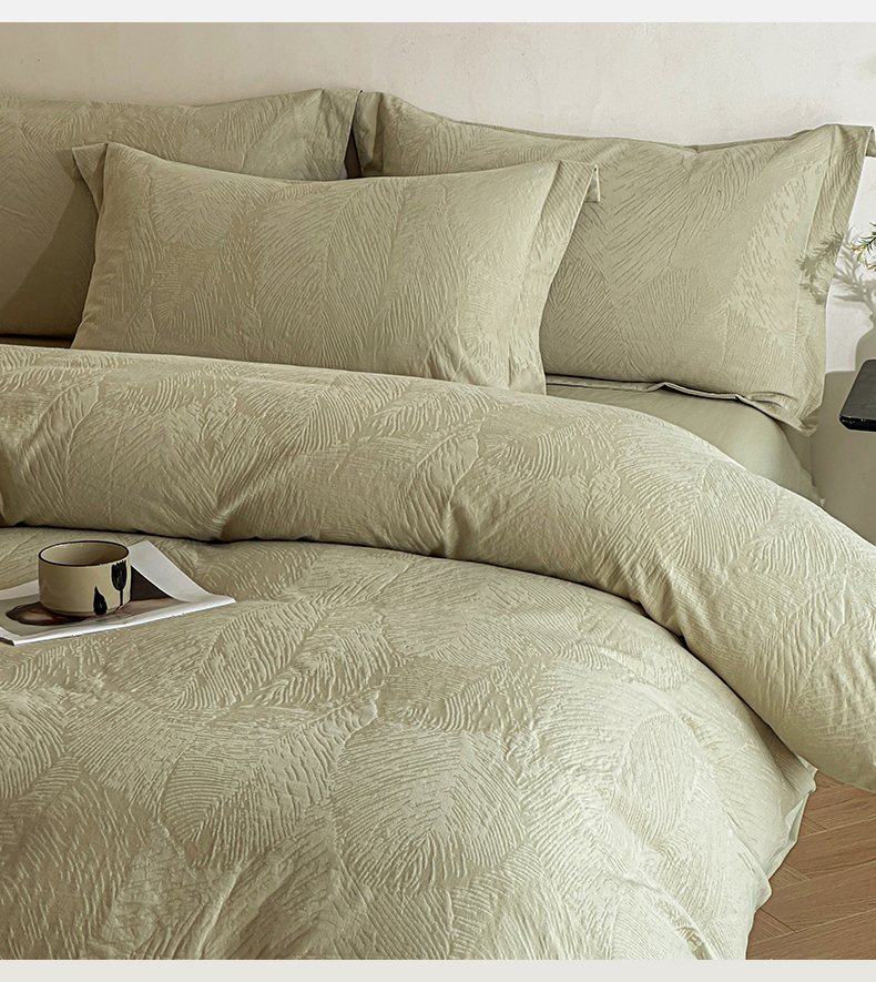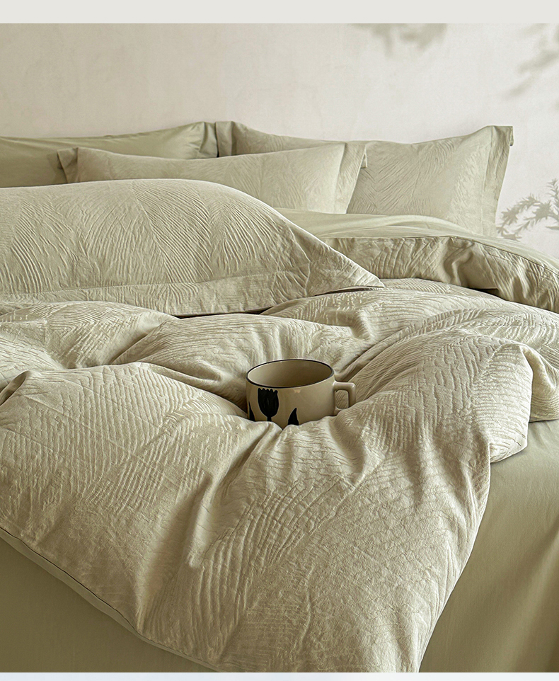 当前位置: 91家纺网 > 商品网购 > 床品套件 > 四件套 > 全棉普通四件套 > 笙意家纺 2025新款全棉纯棉60水洗亮面浮雕立体提花四件套 暗影羽织-奶绿
