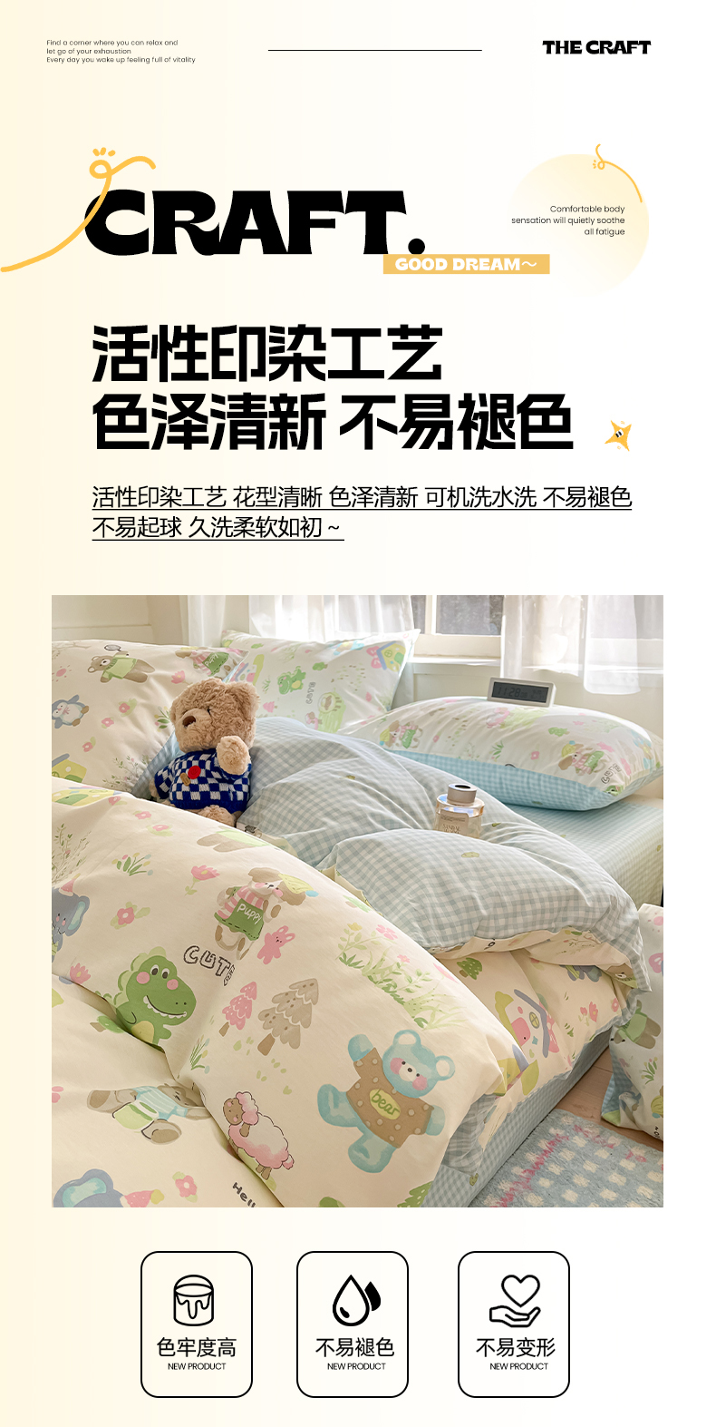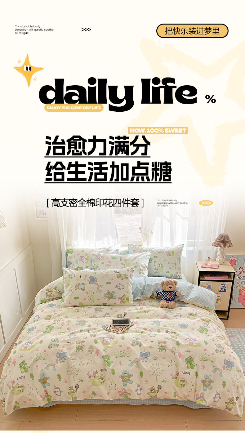 (总)吉象家纺 2026新款高支密全棉印花四件套,睡梦熊,布偶假期,彩虹木马,春游手记,点点小熊,度假恐龙,快乐小马,妙趣乐园,奶酪小可爱,秋日乐园,三小只,甜梦小精灵,童话花町,童年小事,温柔花朵熊,小小宇航员,星际仔仔,星星漫游记