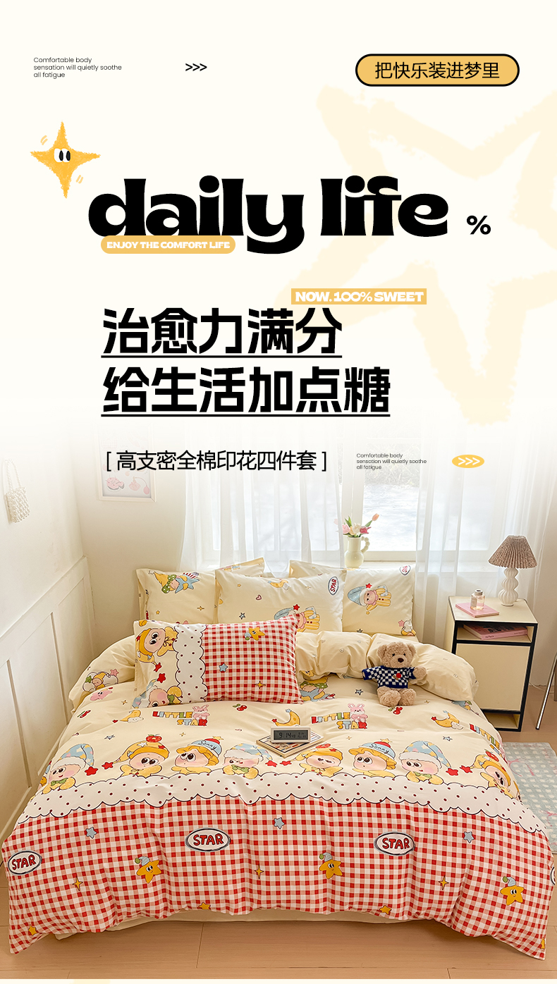 (总)吉象家纺 2026新款高支密全棉印花四件套,睡梦熊,布偶假期,彩虹木马,春游手记,点点小熊,度假恐龙,快乐小马,妙趣乐园,奶酪小可爱,秋日乐园,三小只,甜梦小精灵,童话花町,童年小事,温柔花朵熊,小小宇航员,星际仔仔,星星漫游记
