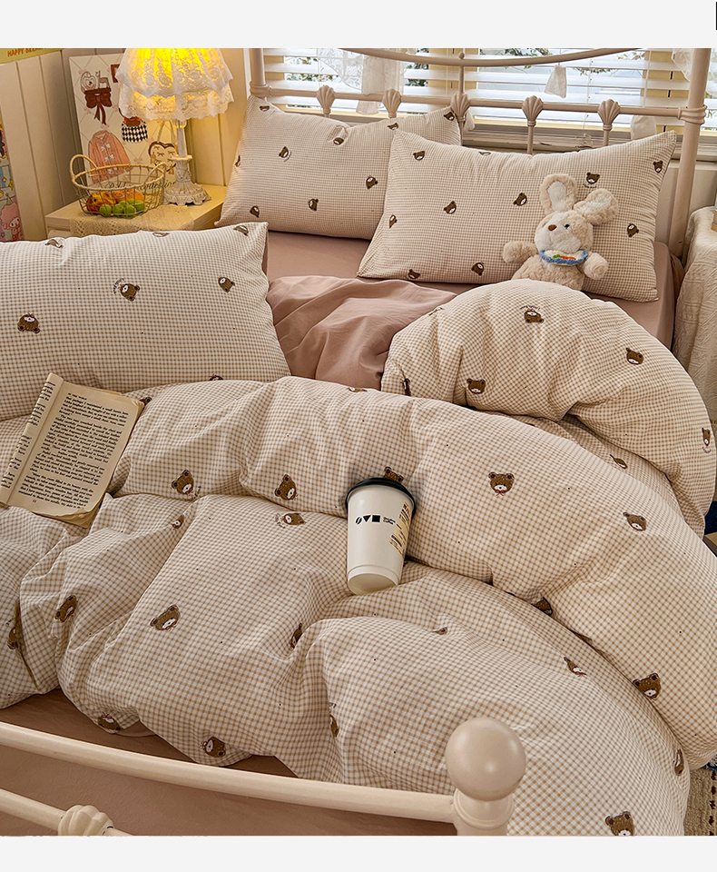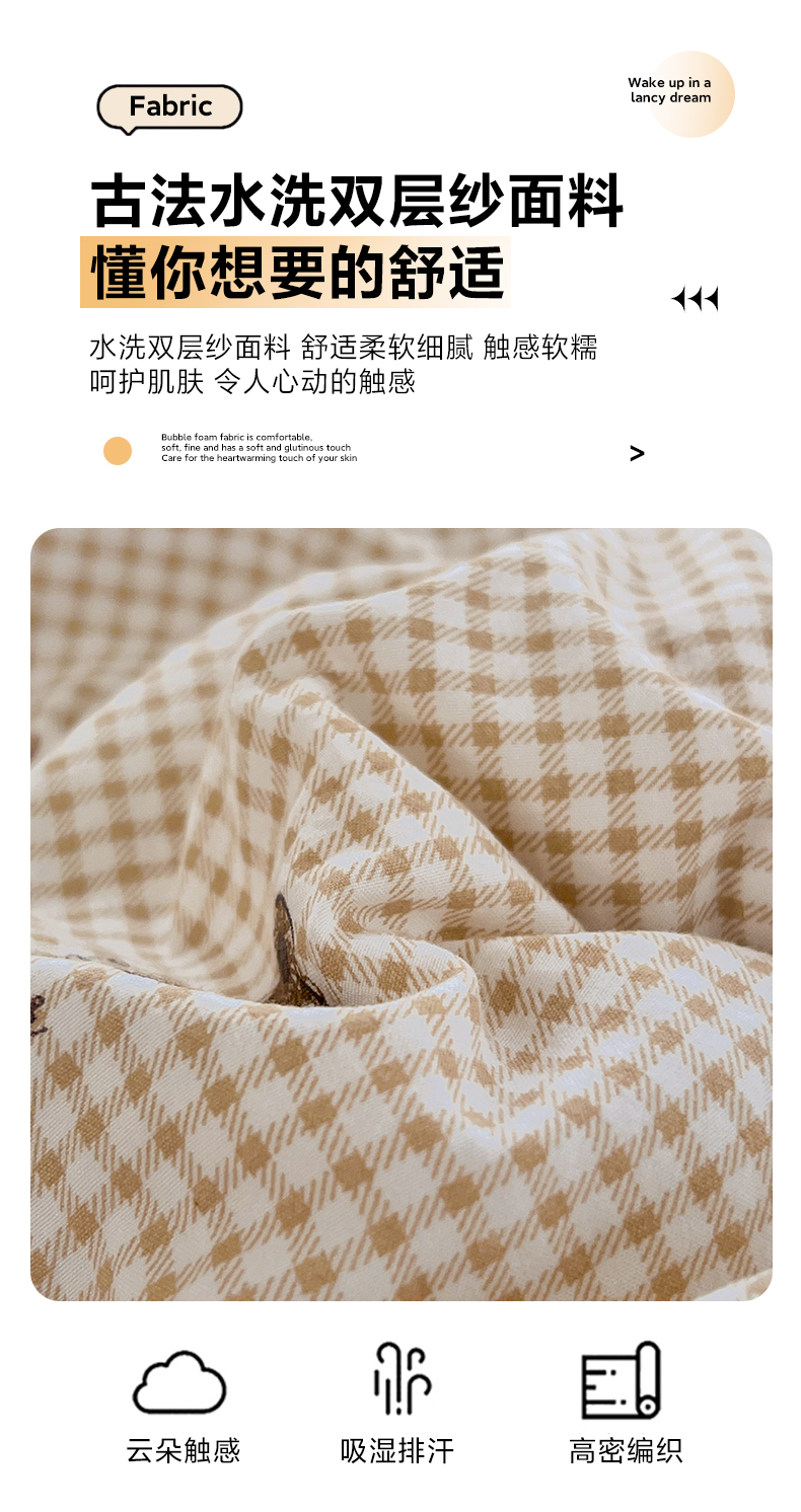 当前位置: 91家纺网 > 商品网购 > 床品套件 > 四件套 > 水洗棉四件套 > 玉海棠家纺 2026新款古法水洗仿棉云感纱四件套 粉格KT猫