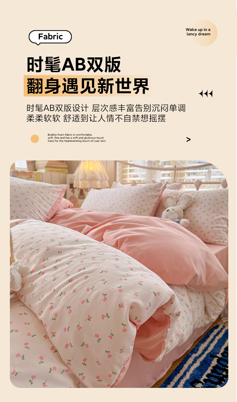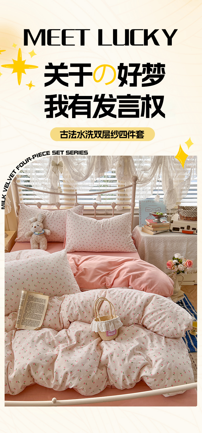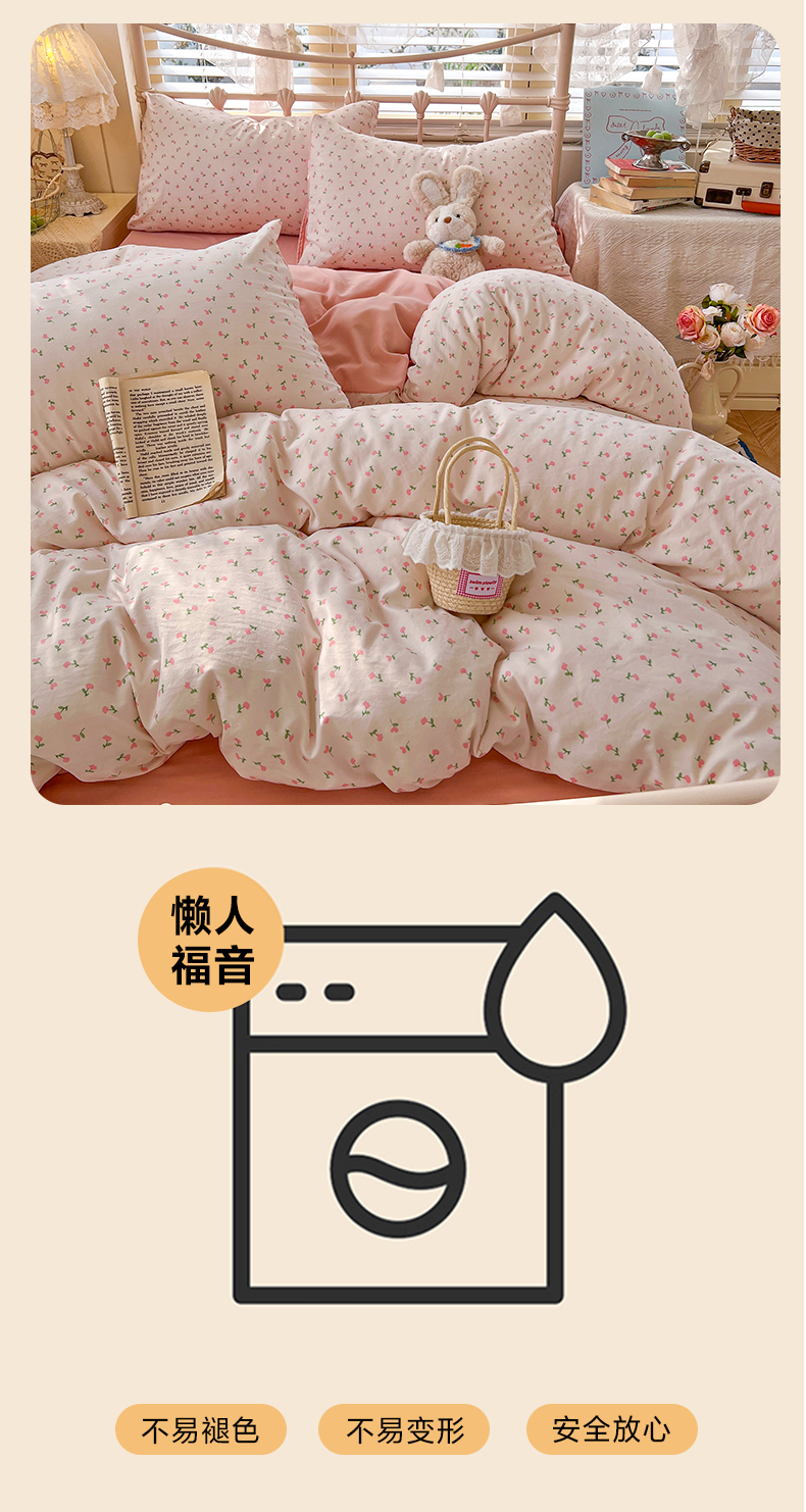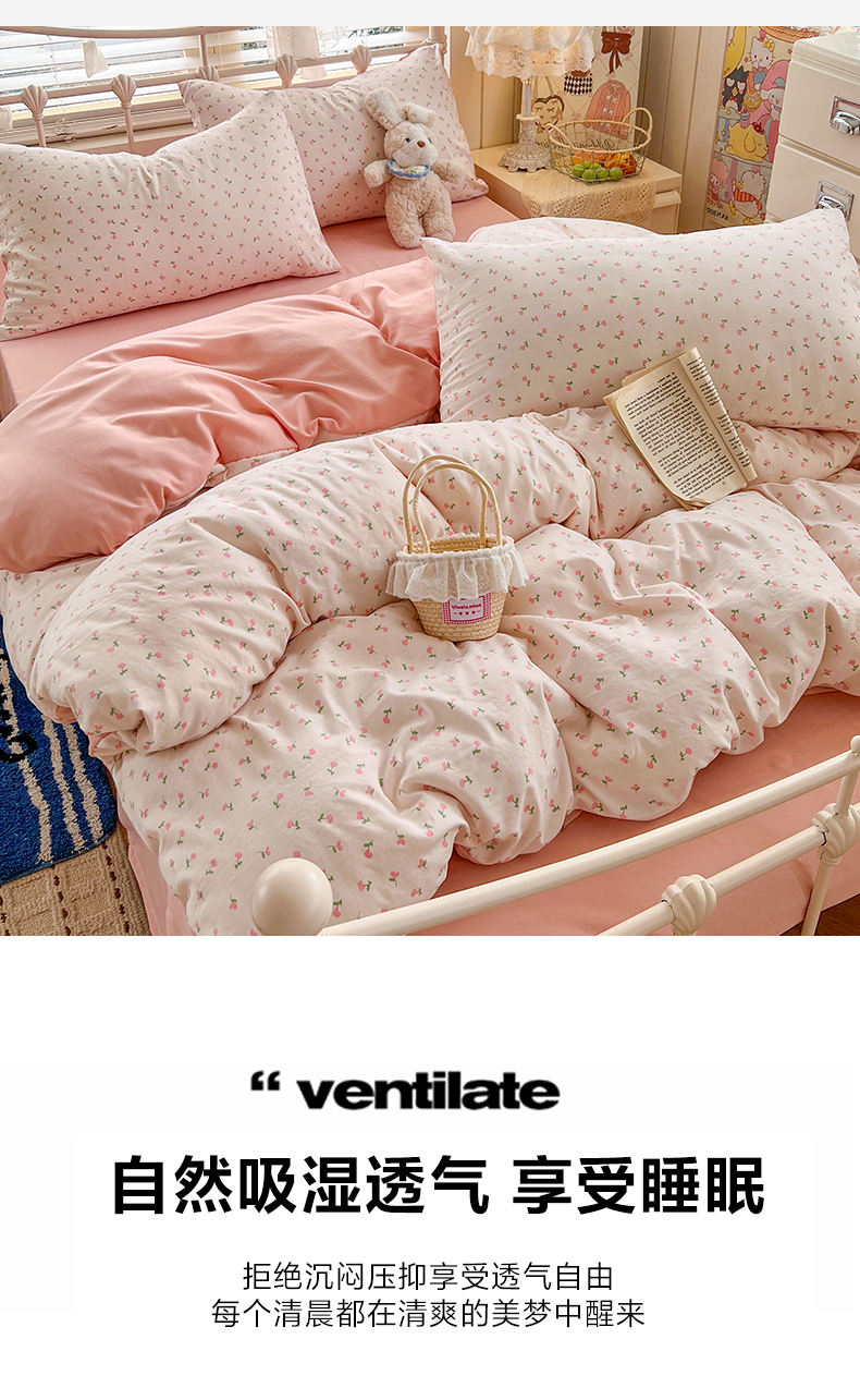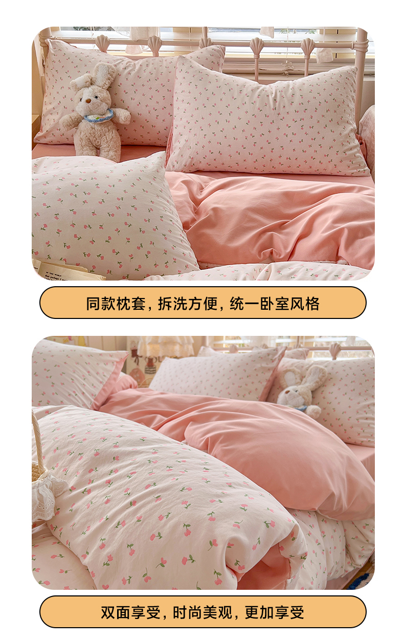 当前位置: 91家纺网 > 商品网购 > 床品套件 > 四件套 > 水洗棉四件套 > 玉海棠家纺 2026新款古法水洗仿棉云感纱四件套 甜心花园