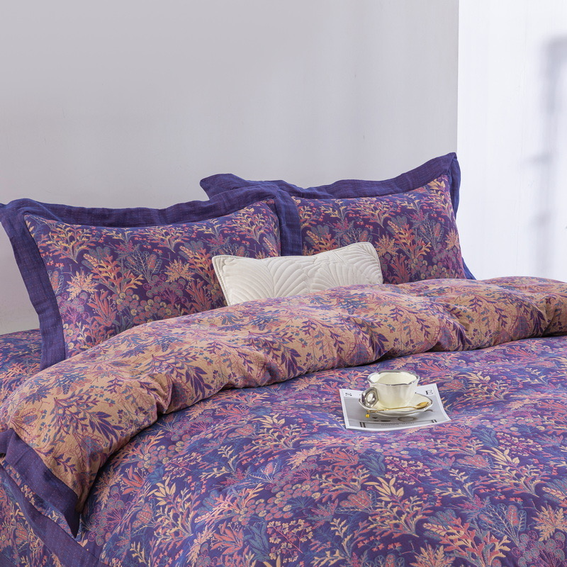 (总)仰望棉麻双层纱供应链 2026新款三层纱床盖飞边款四件套-薰衣草