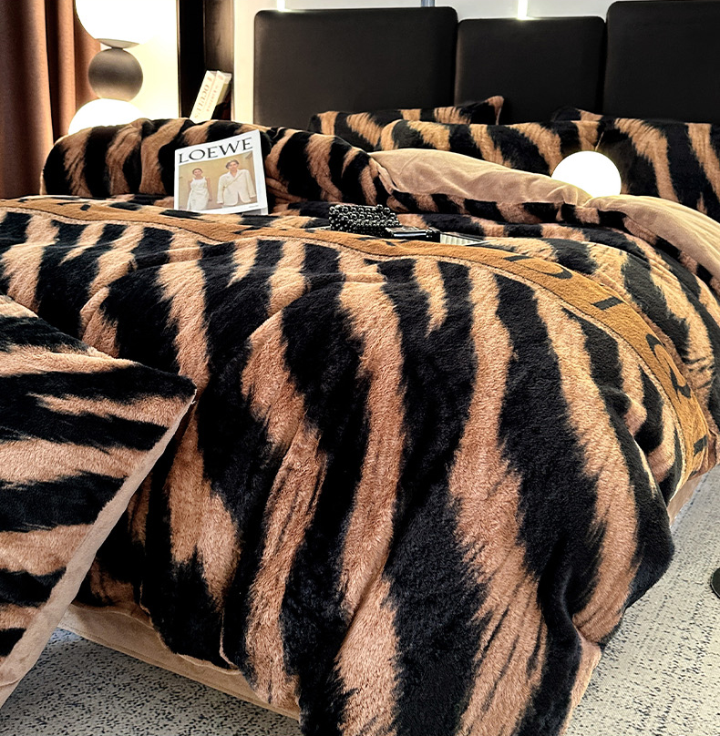(总)栩裕纺织 2025新款高克重210克牛奶绒床盖四件套,豹纹猫咪,富贵南瓜,简约格调,山野豹纹,山野莓莓