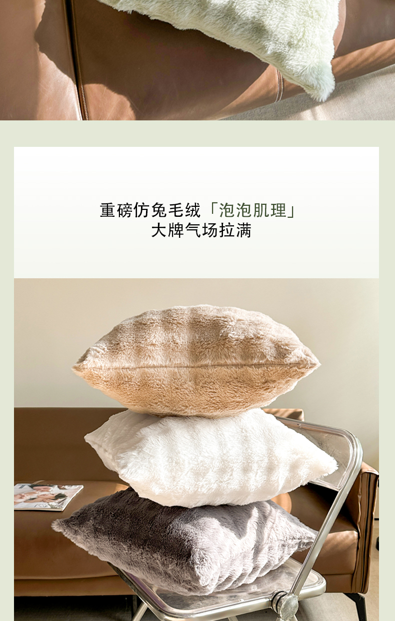 (总)囍莱家纺 2026新款兔毛绒暖冬抱枕,馥芮白,灰黑巧,抹茶绿,拿铁棕,组合图仅供展示