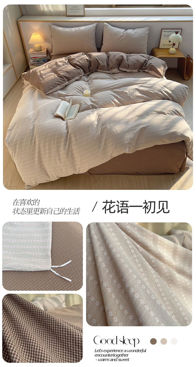 当前位置: 91家纺网 > 商品网购 > 床品套件 > 四件套 > 全棉普通四件套 > 炫拼家纺 2026新款A类全棉色织提花40支水洗棉四件套-花语系列 花语一夏日
