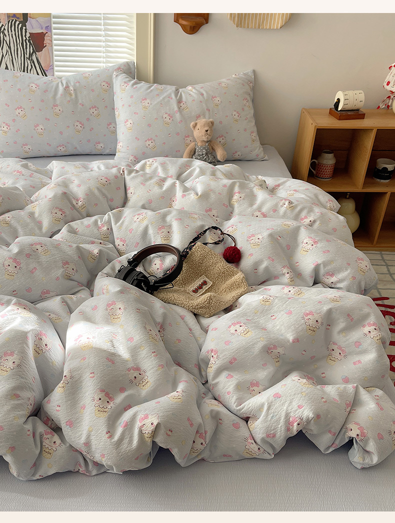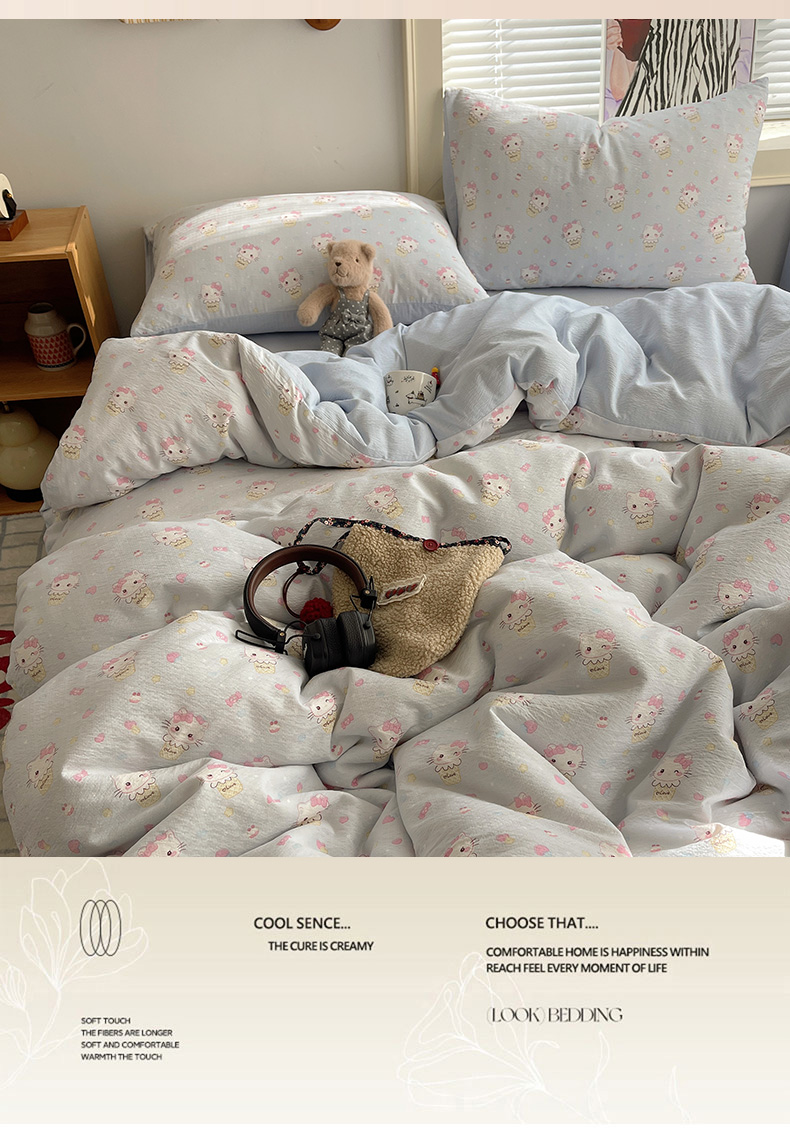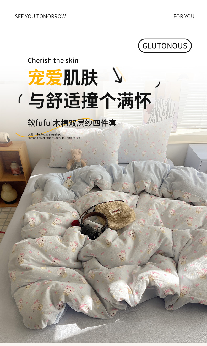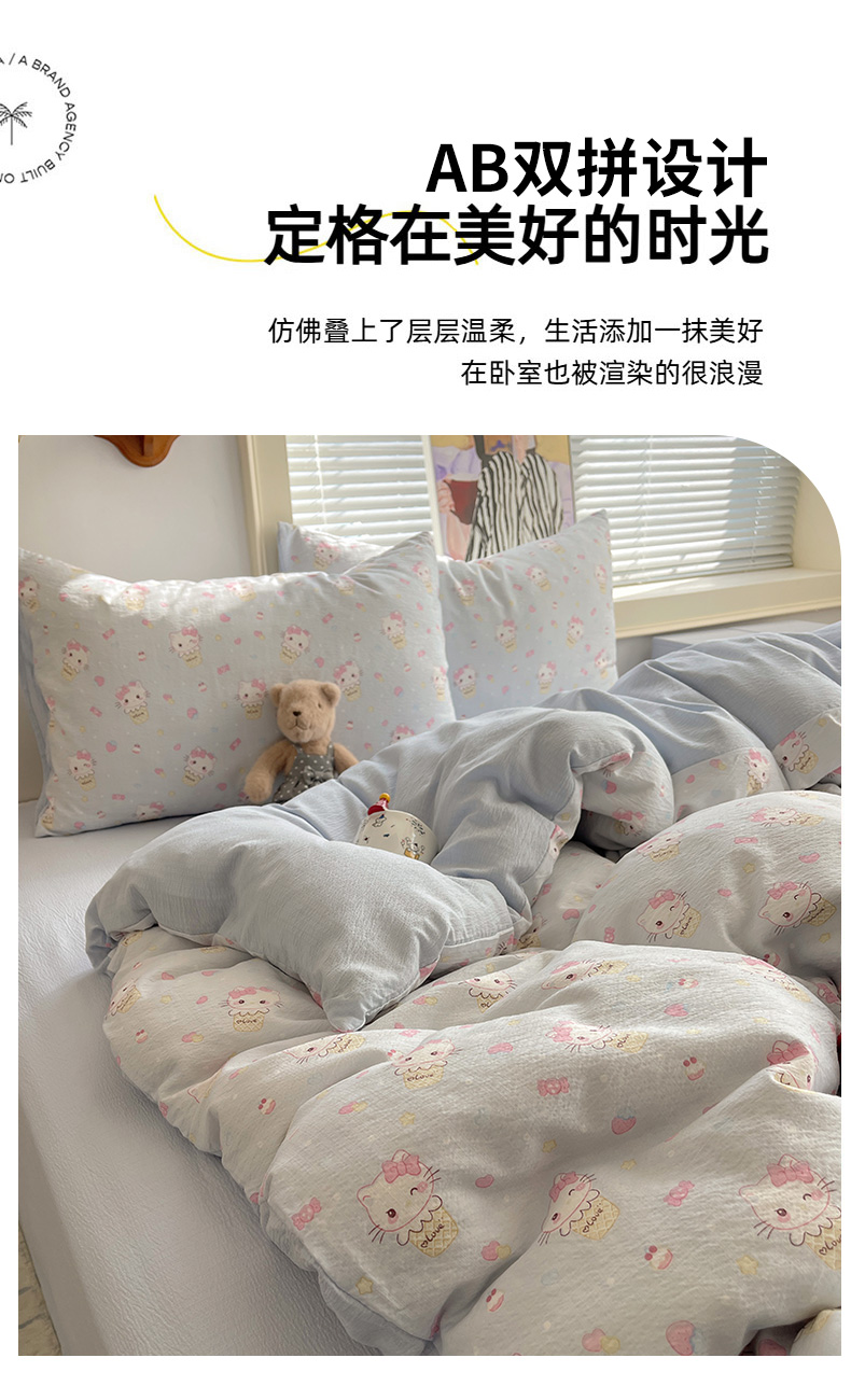 当前位置: 91家纺网 > 商品网购 > 床品套件 > 四件套 > 双层纱四件套 > 繁花家居 2026新款木棉双层纱四件套 甜筒小猫-蓝