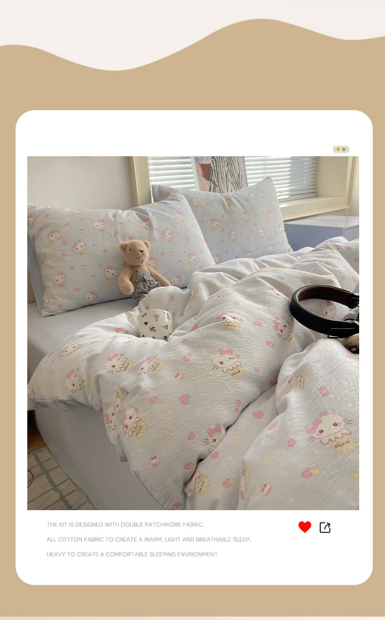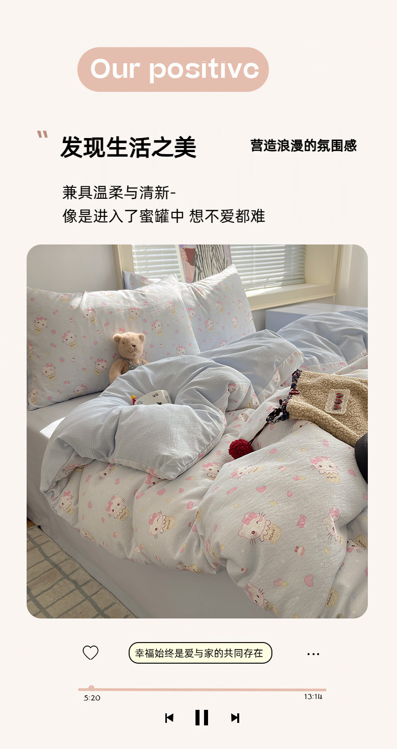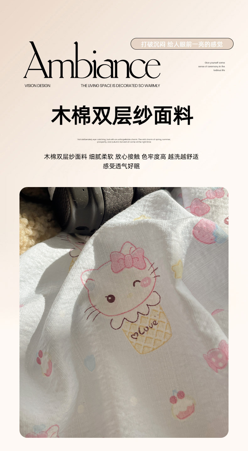 当前位置: 91家纺网 > 商品网购 > 床品套件 > 四件套 > 双层纱四件套 > 繁花家居 2026新款木棉双层纱四件套 甜筒小猫-蓝