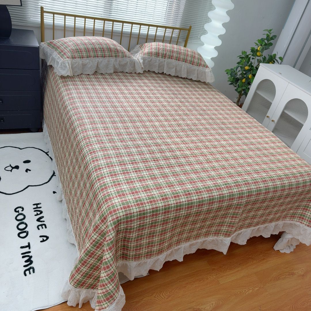 (总)暖居 2026新款大尺寸全棉色织花边款榻榻米农村大炕盖,圣诞格,格语绿,简溪,松野,英式格纹,云曲