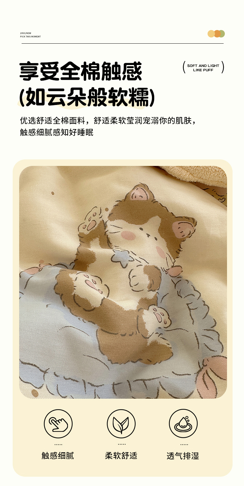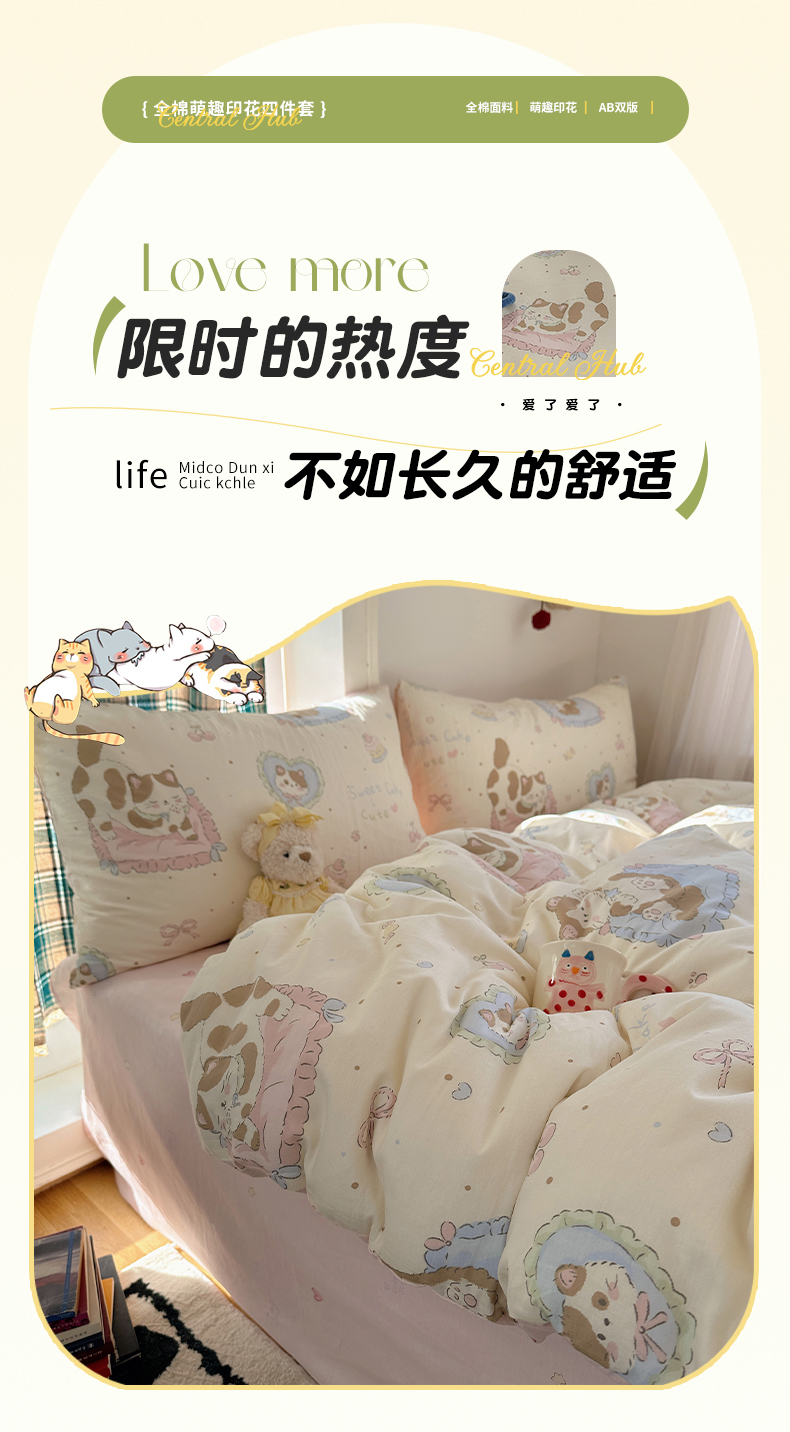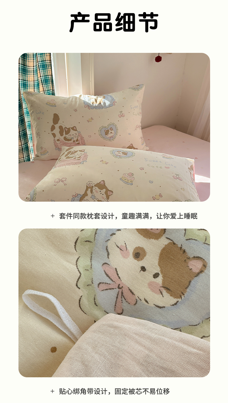 • 91家纺网 家纺一手货源 找家纺 瑞莱 2026新款全棉印花单被套系列 可爱猫咪