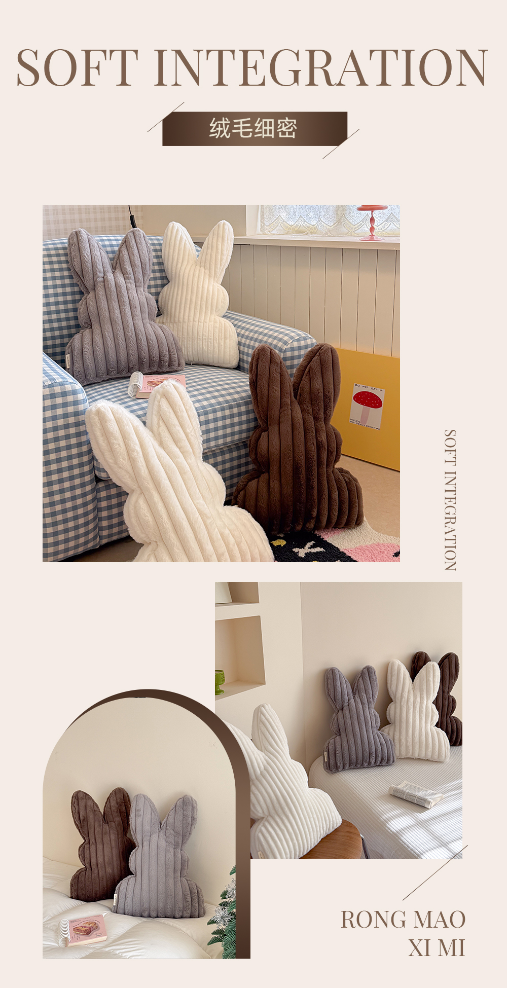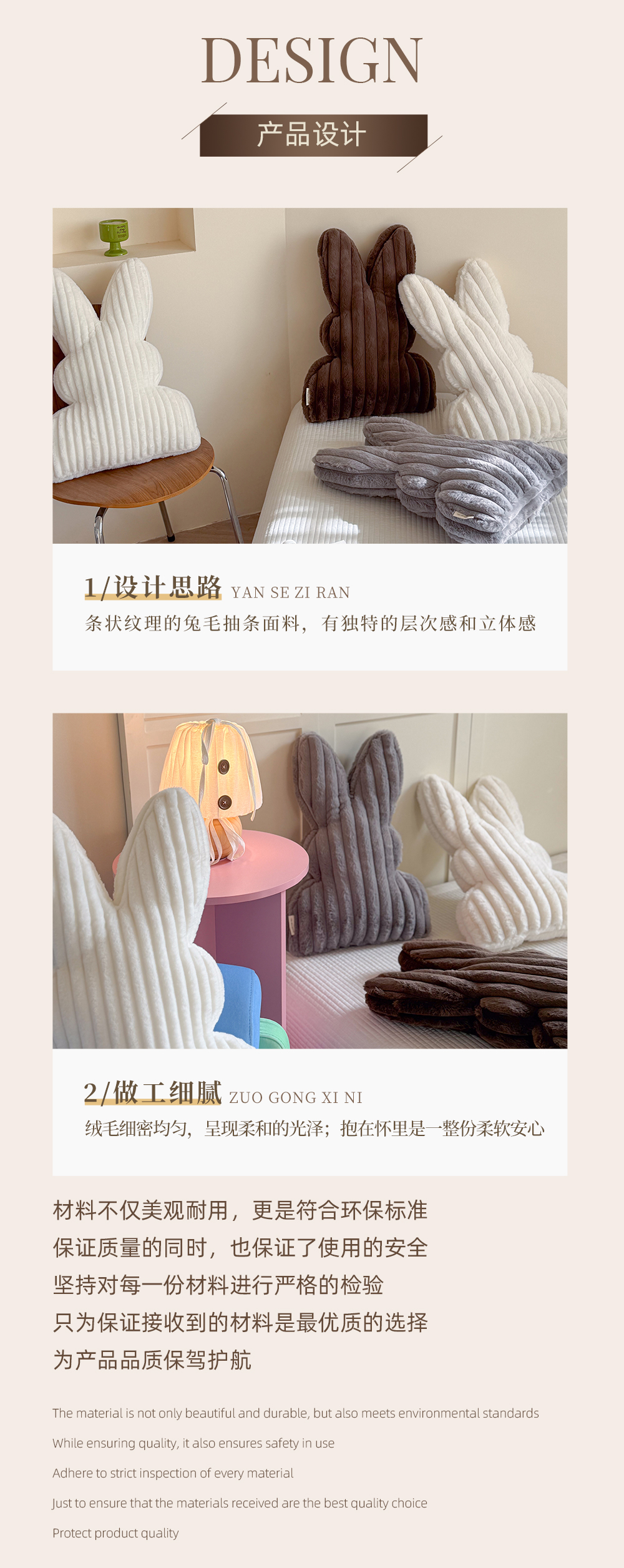 (总)美茉家居 2026新款兔毛抽条条纹兔子抱枕,灰色宽条,米白宽条,米白窄条,深咖宽条