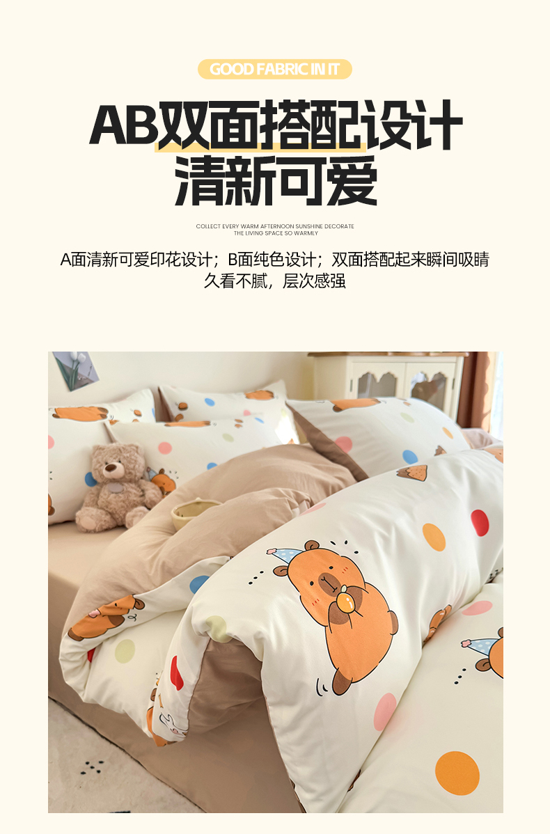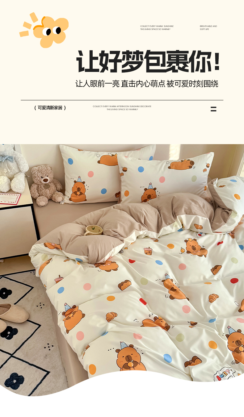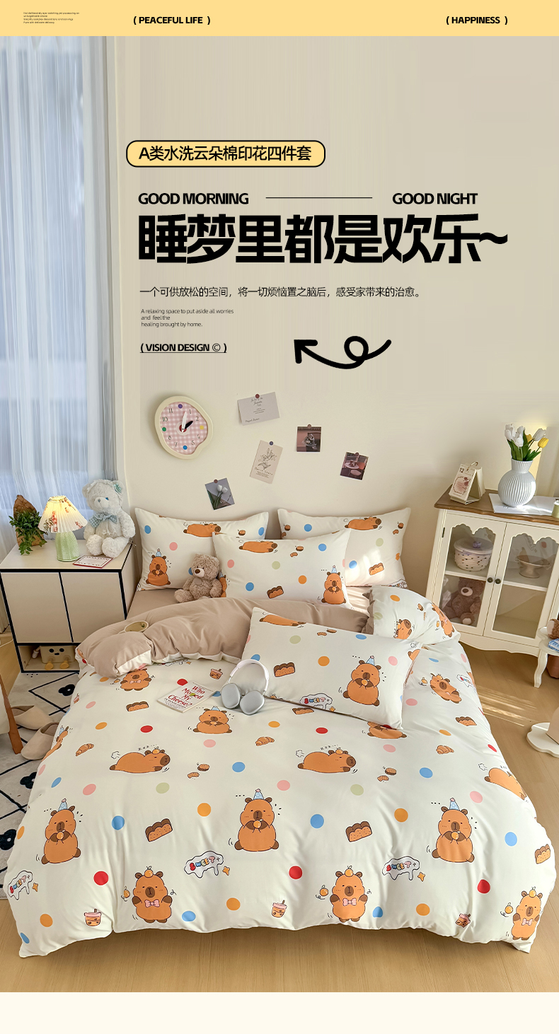 当前位置: 91家纺网 > 商品网购 > 床品套件 > 四件套 > 水洗棉四件套 > 卡斯诺家纺馆 2026新款卡通水洗云朵棉四件套下载文件包含买家秀 卡皮巴拉