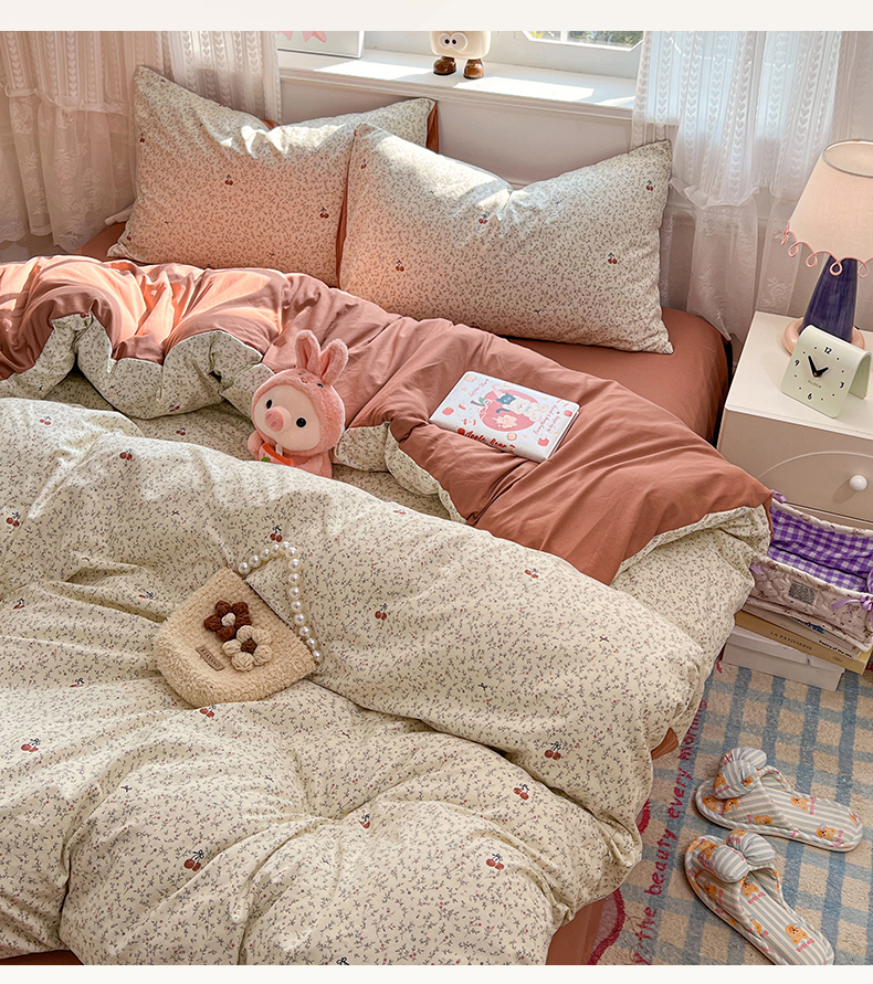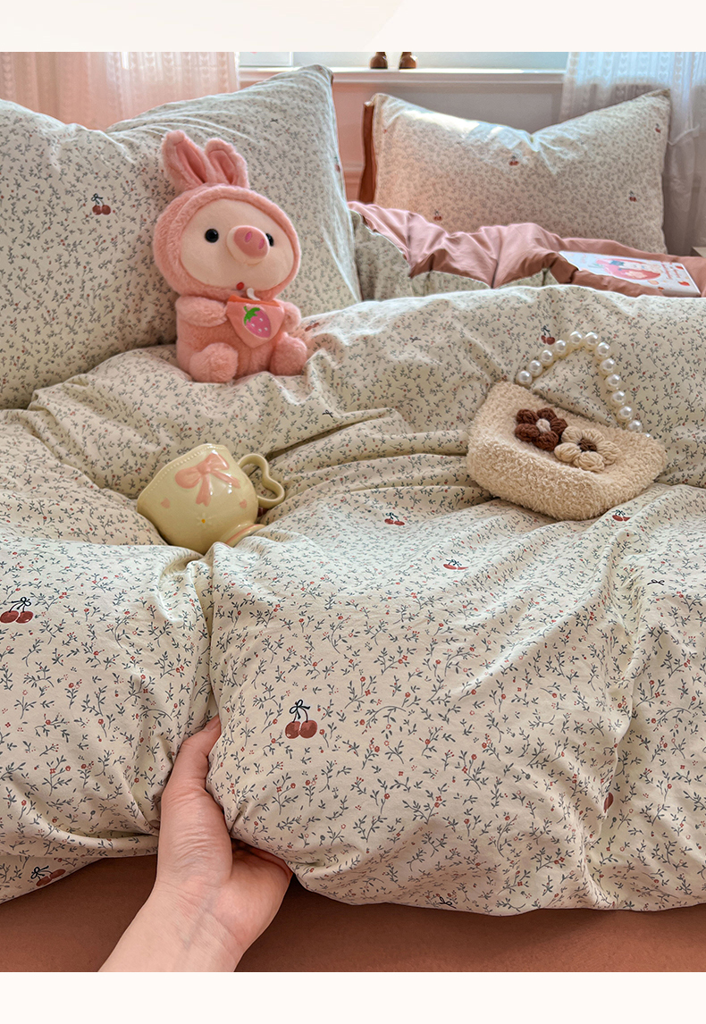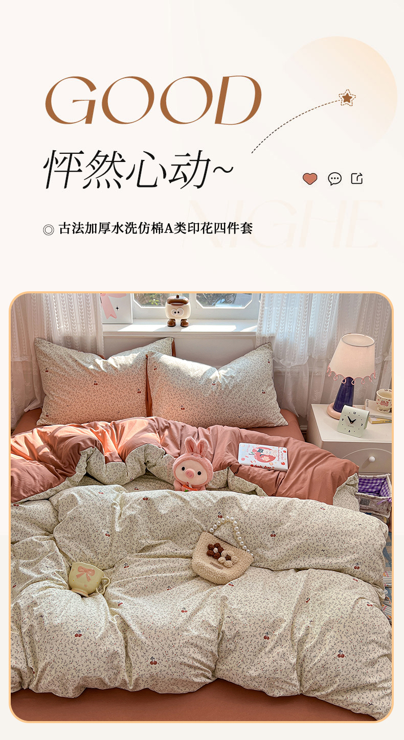 当前位置: 91家纺网 > 商品网购 > 床品套件 > 四件套 > 水洗棉四件套 > 优佳优品 【提供买家秀】2026新款加厚水洗仿棉A类印花四件套 浅枝甜樱