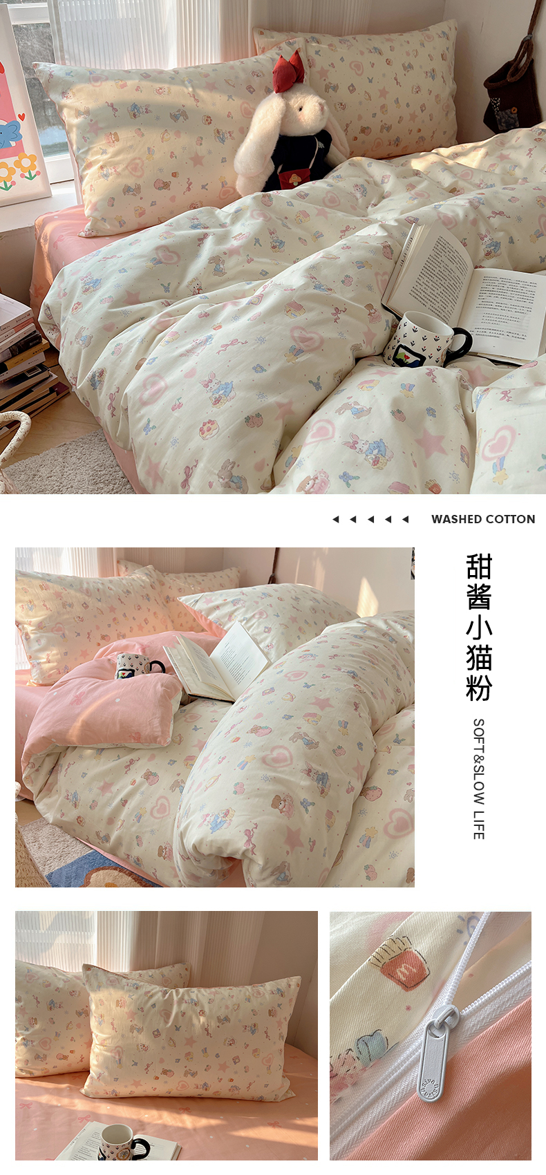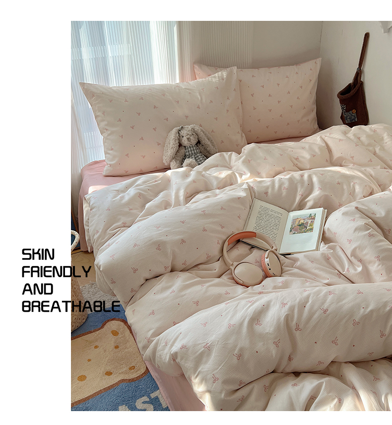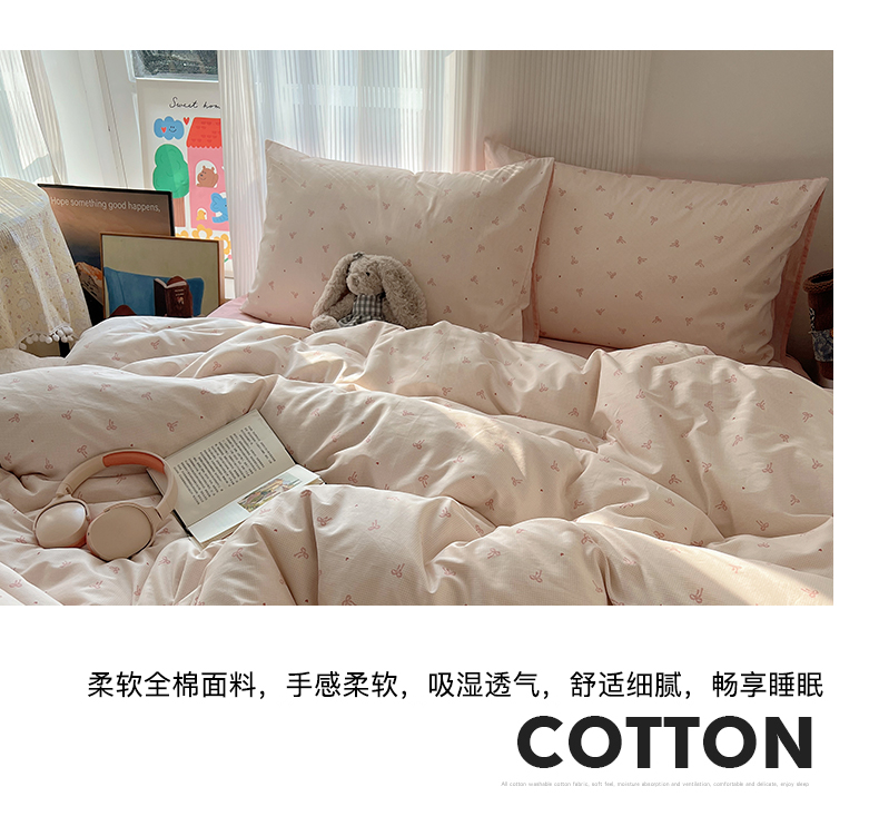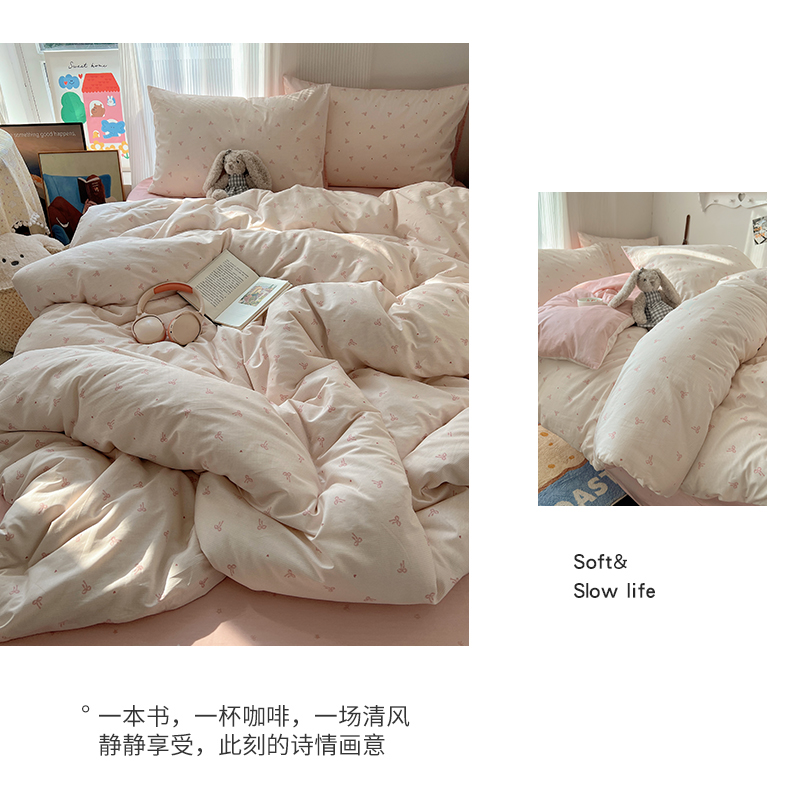当前位置: 91家纺网 > 商品网购 > 床品套件 > 四件套 > 全棉普通四件套 > XIWEN-希文家纺 2026春夏新款40支全棉13372卡通四件套 爱心蝴蝶结