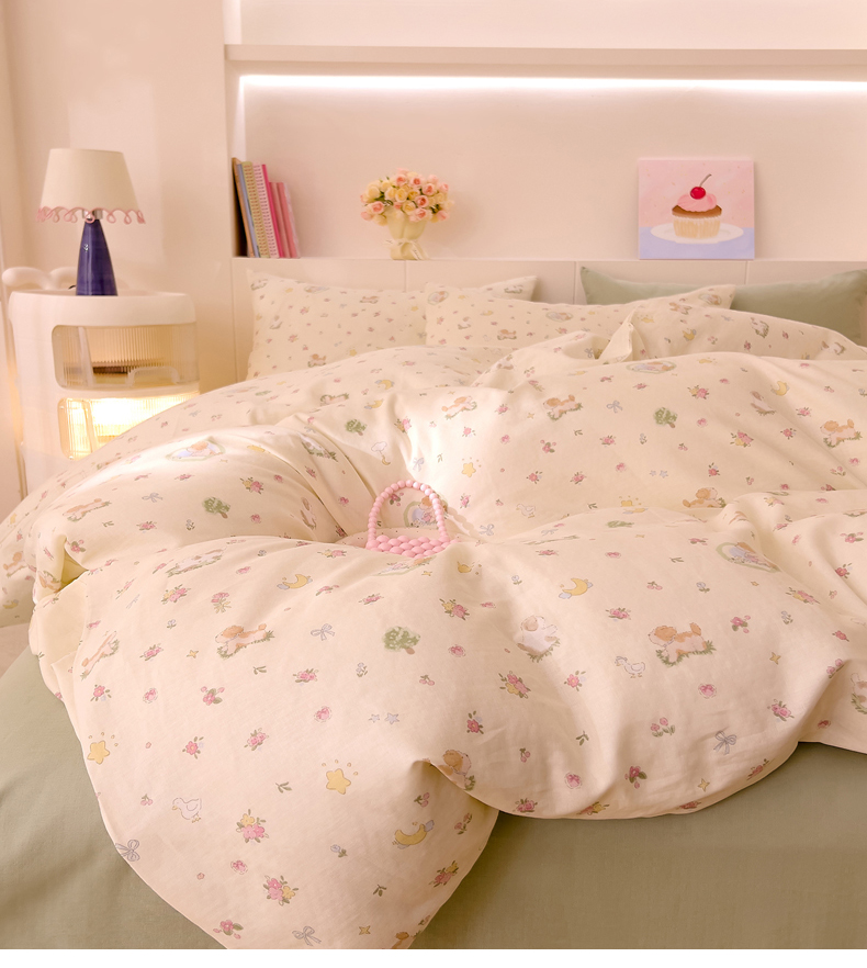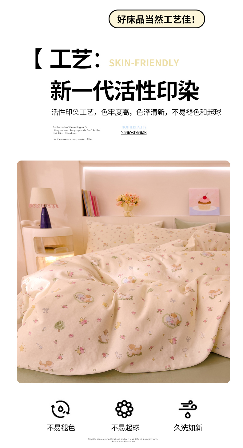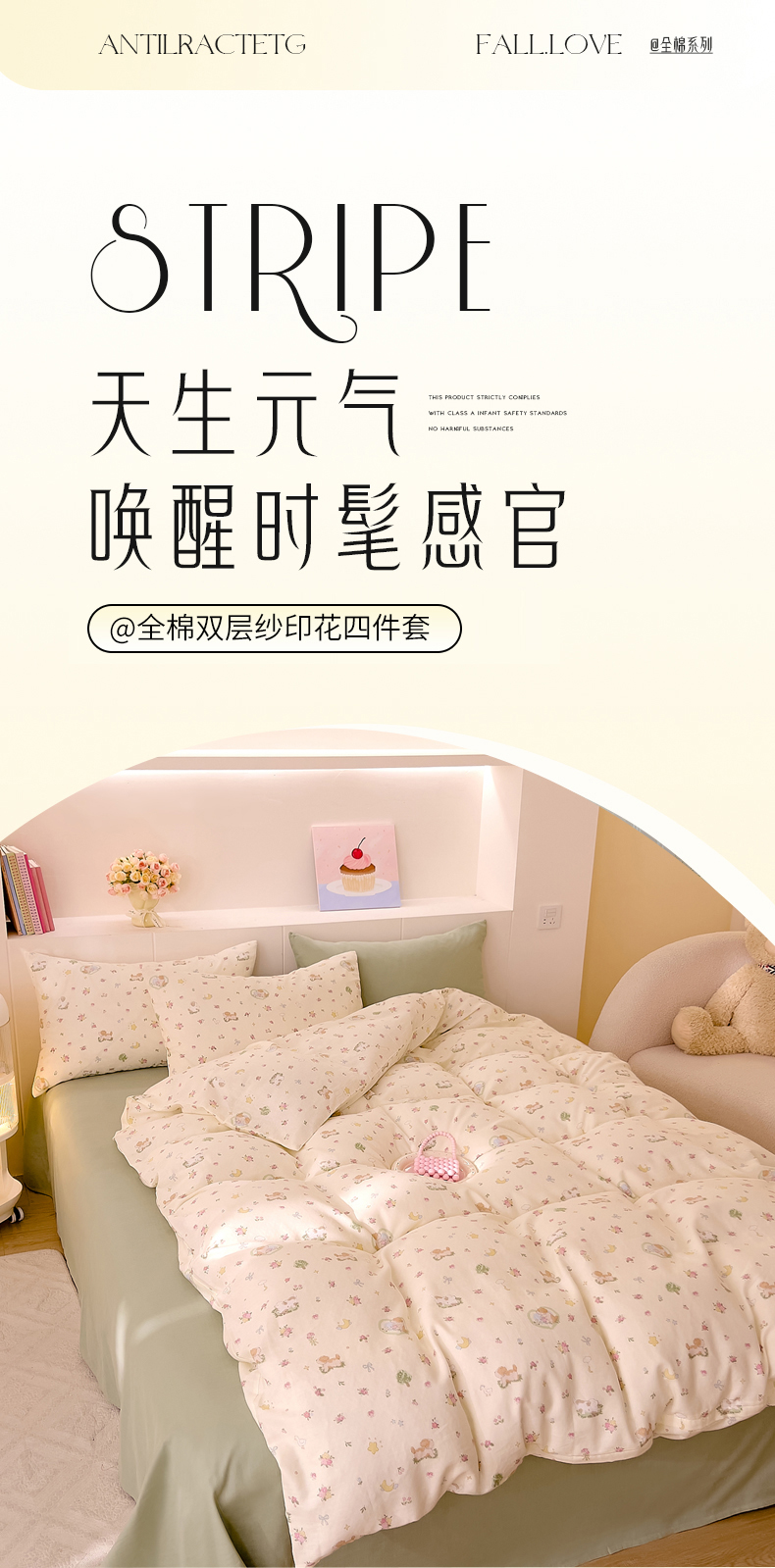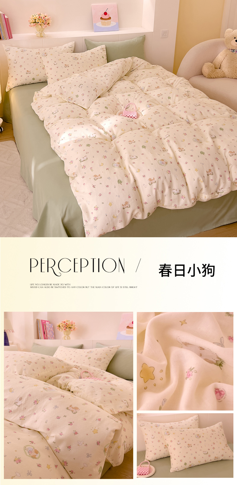 当前位置: 91家纺网 > 商品网购 > 床品套件 > 四件套 > 双层纱四件套 > DoDo 兜兜 2026新款全棉纯棉小温暖双层纱四件套【可定做尺寸】春日小狗