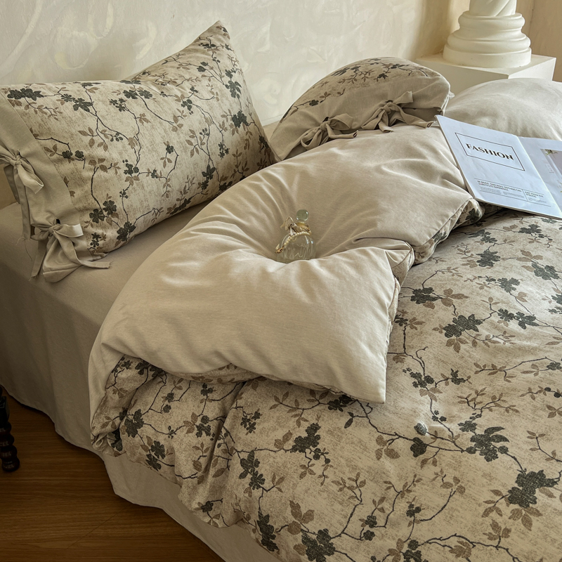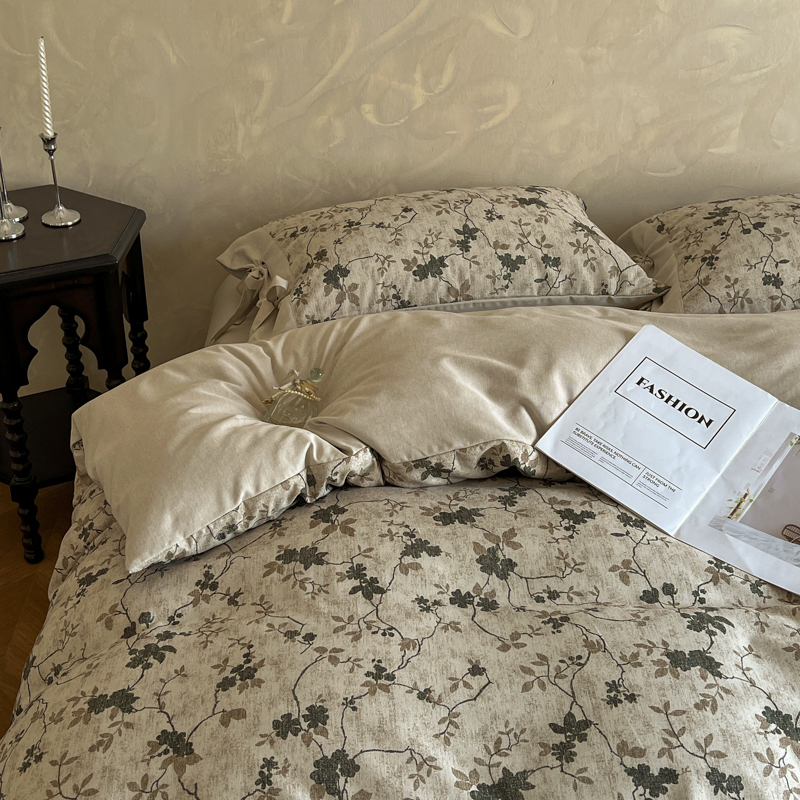 (总)漫仙阁家纺 2025新款加厚高克重原麻复古风印花四件套,布袋子,粉黛,花蕾-咖,花蕾-绿,金枝玉叶,锦簇,盛夏,素锦,向阳花开,一抹香,绽放