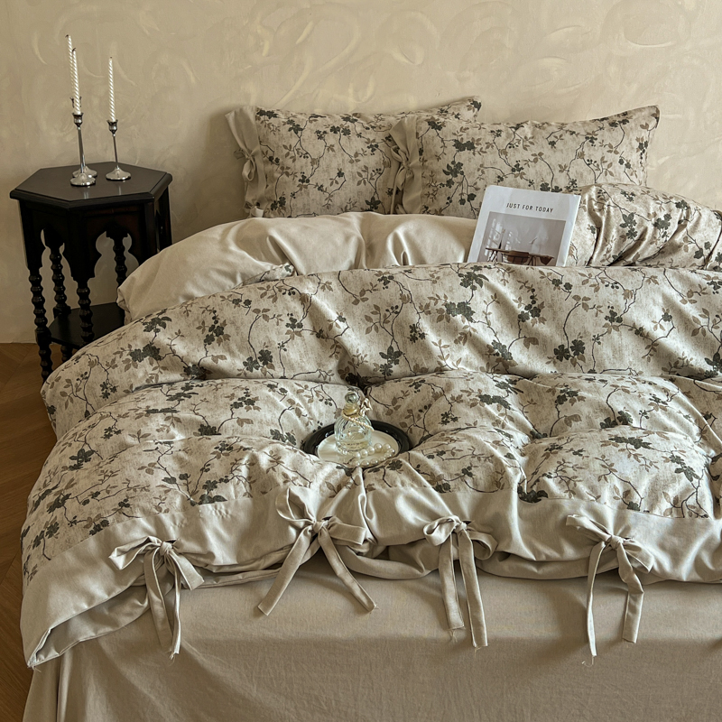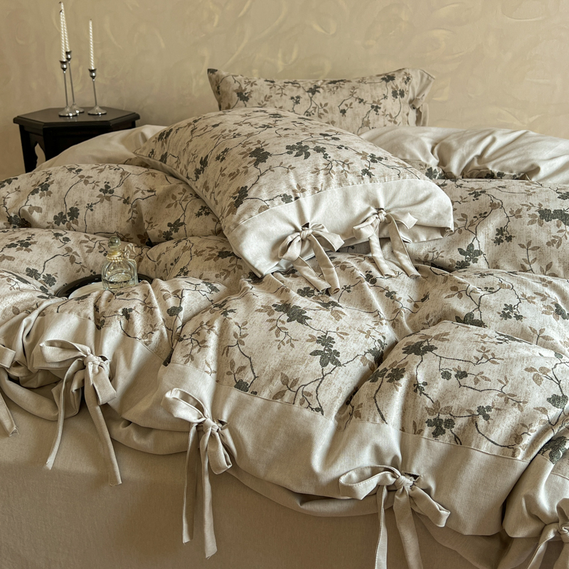 漫仙阁家纺 2026新款蝴蝶结汉麻四件套 蔓枝