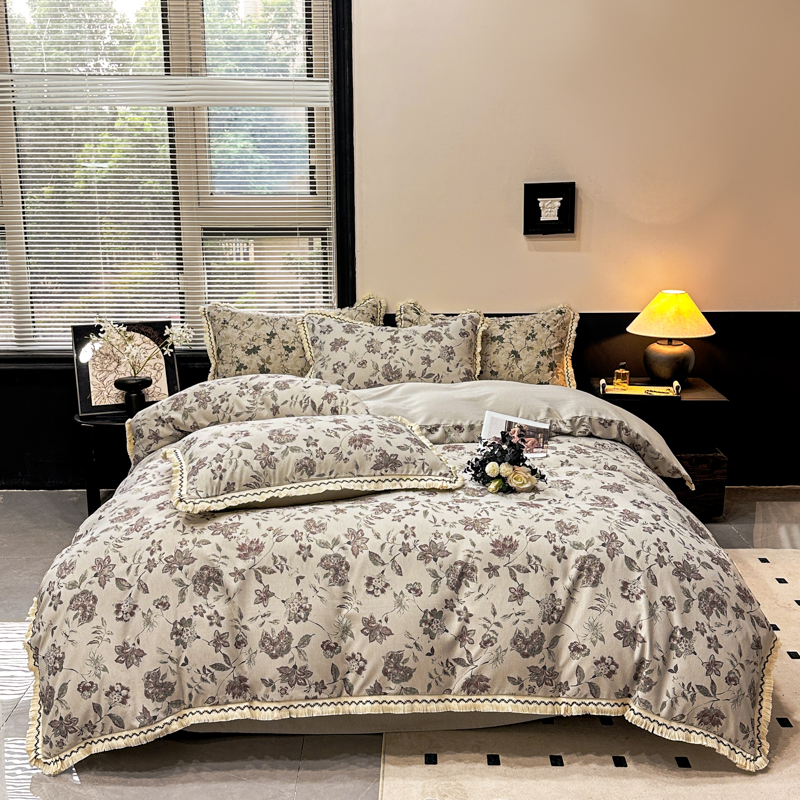 (总)漫仙阁家纺 2025秋冬新品加厚高克重复古风双层纱印花四件套,一叶,城堡花园,浮绘花影,格颂,花之舞,露娜,曼妙花园-灰,曼妙花园-紫,梅花颂,夕颜