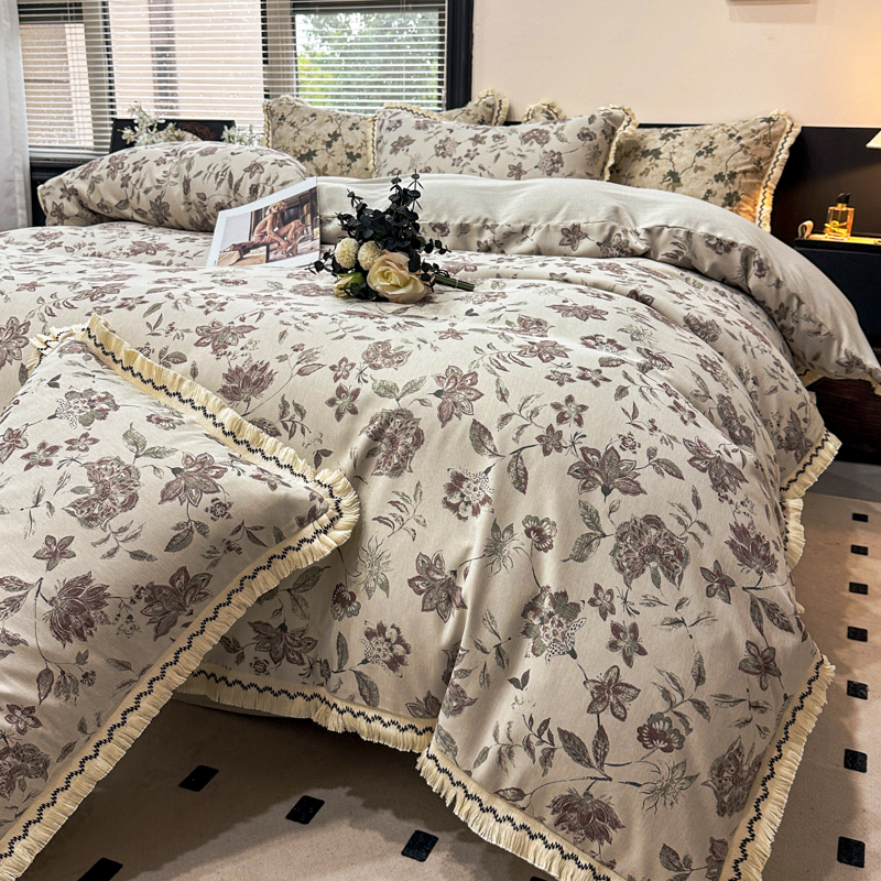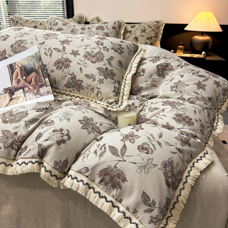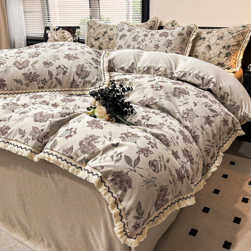 漫仙阁家纺 2026新款流苏亚麻四件套 花涧雨