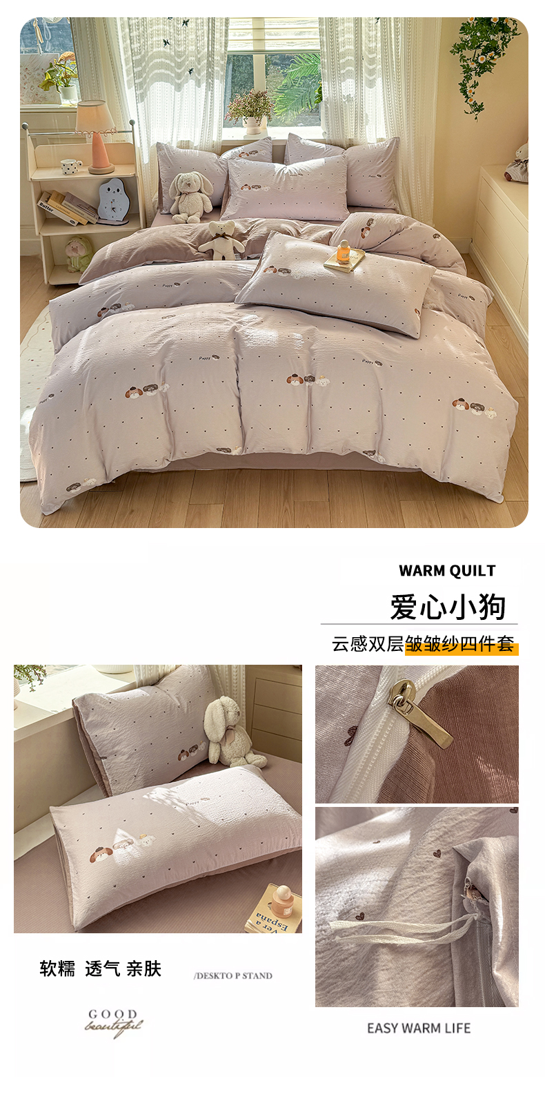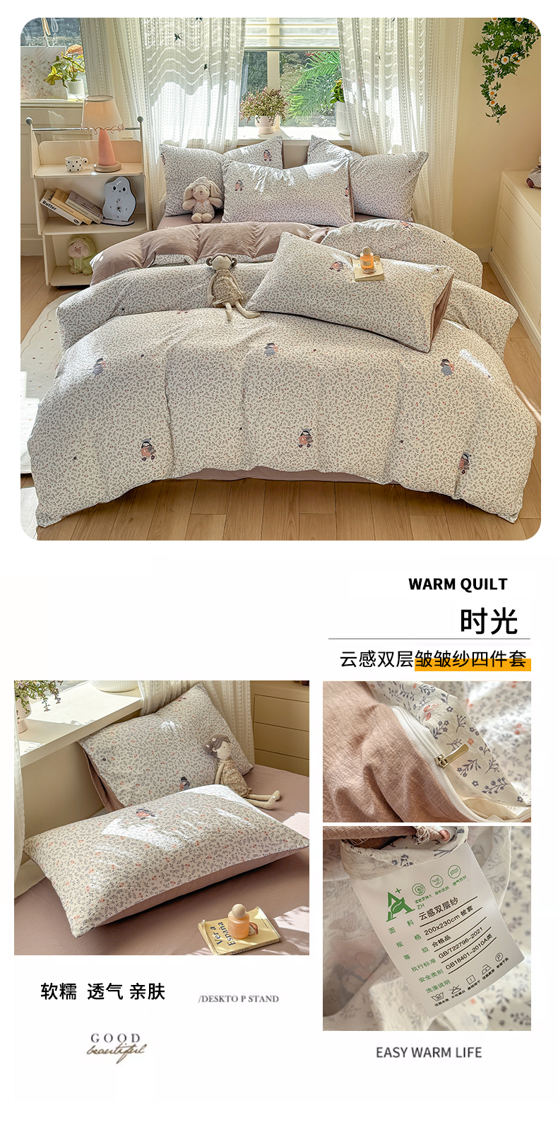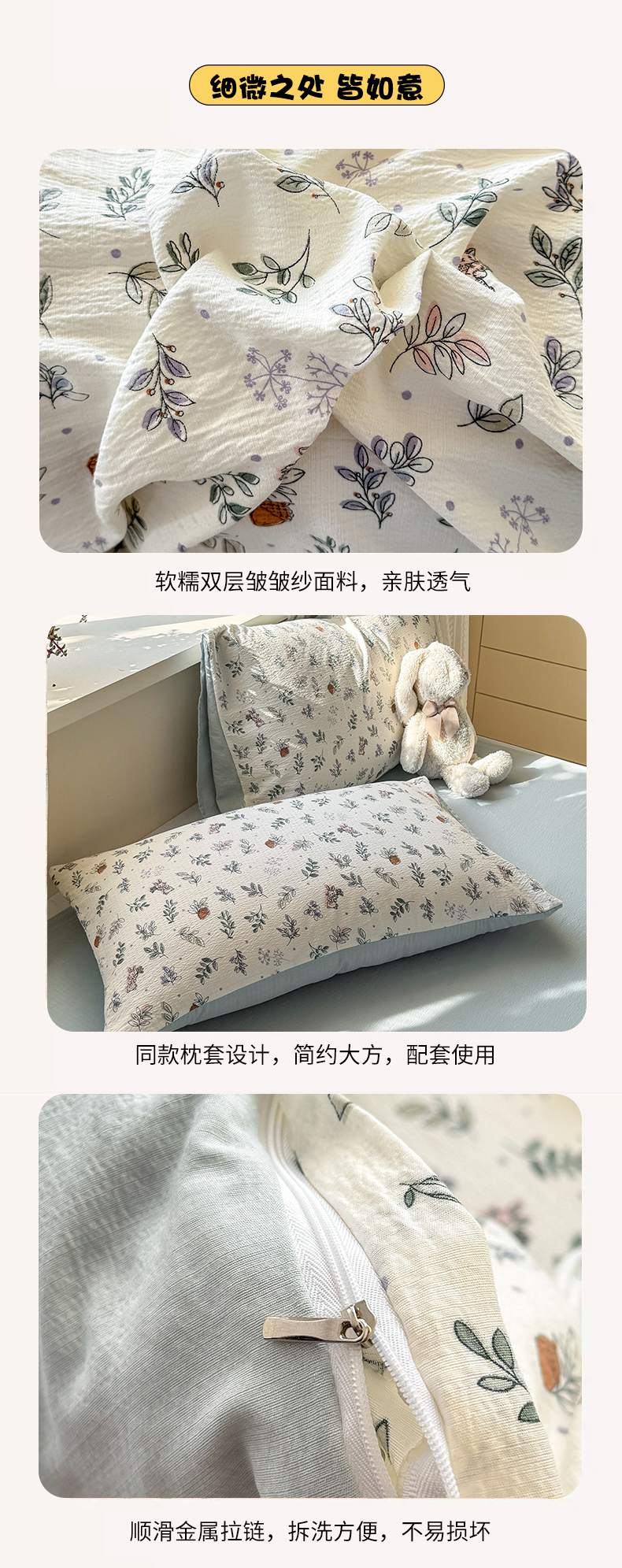 当前位置: 91家纺网 > 商品网购 > 床品套件 > 四件套 > 双层纱四件套 > 丽美人家纺 2026新款A类皱皱纱双层印花四件套 紫雾叶兔