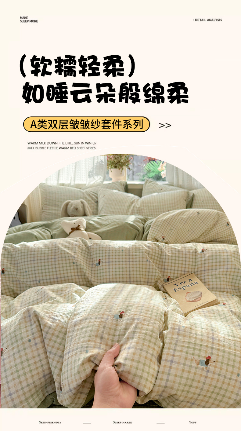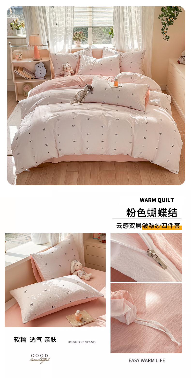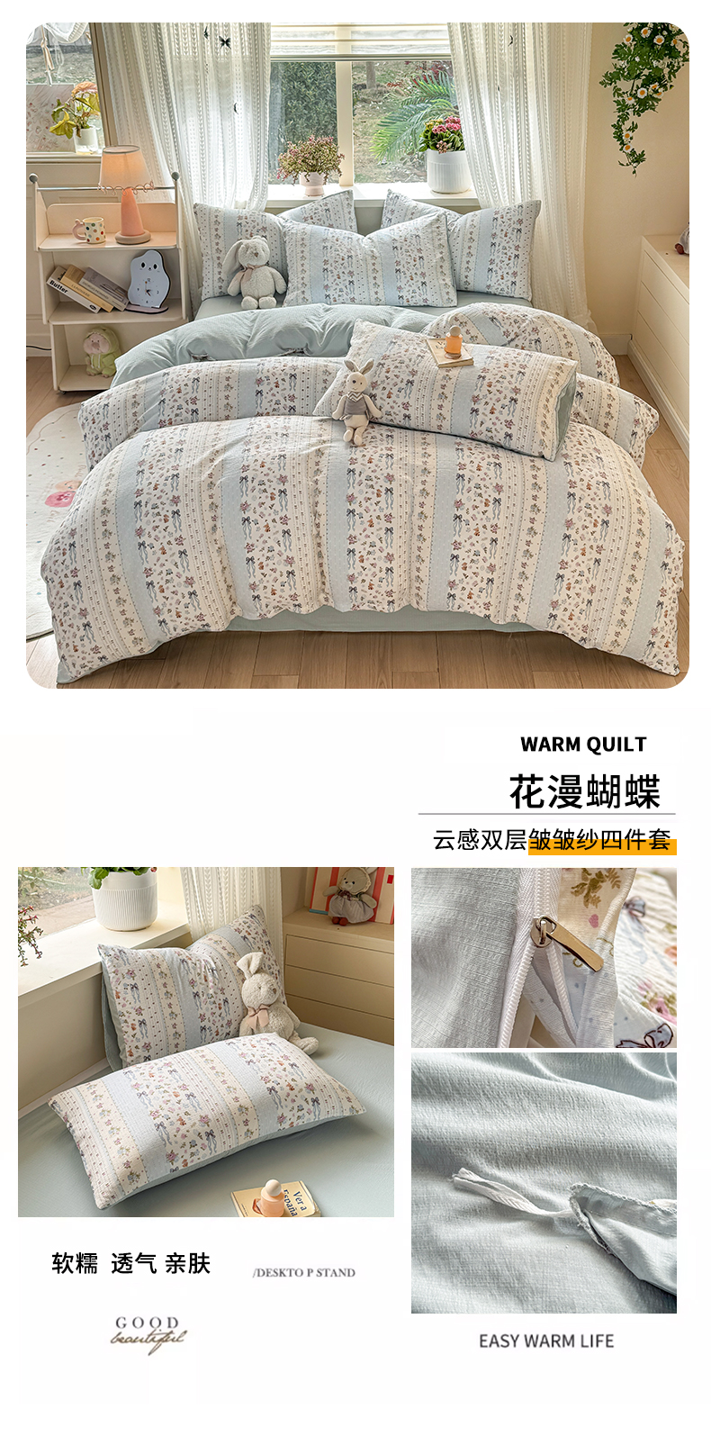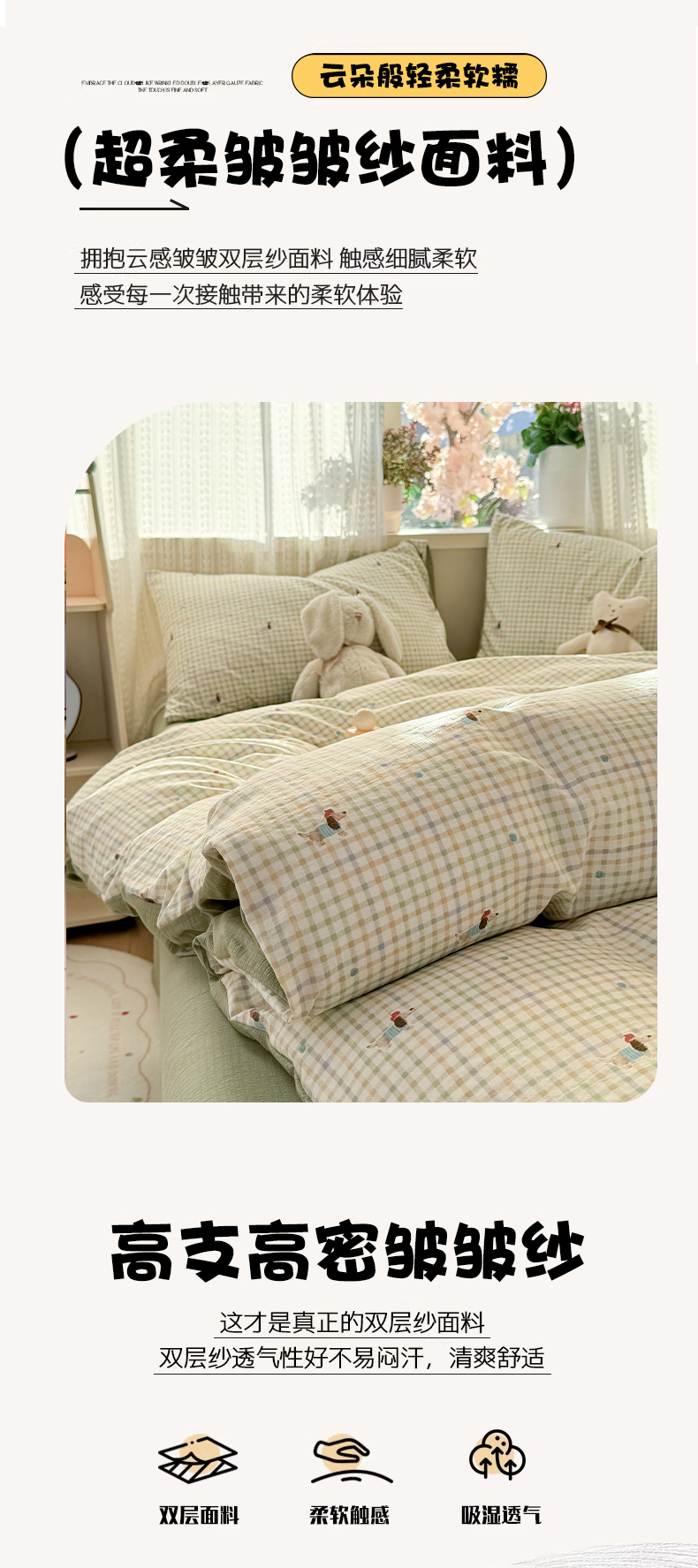 当前位置: 91家纺网 > 商品网购 > 床品套件 > 四件套 > 双层纱四件套 > 丽美人家纺 2026新款A类皱皱纱双层印花四件套 腊肠狗