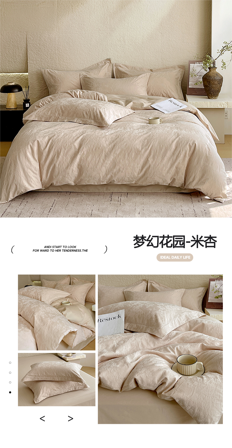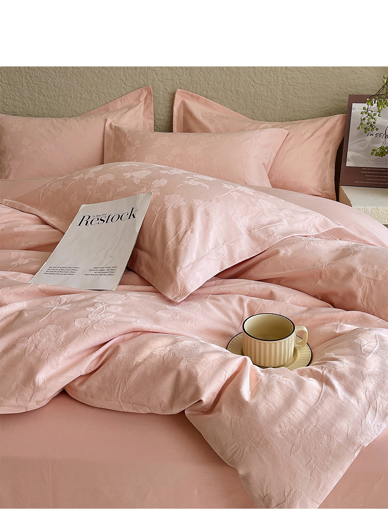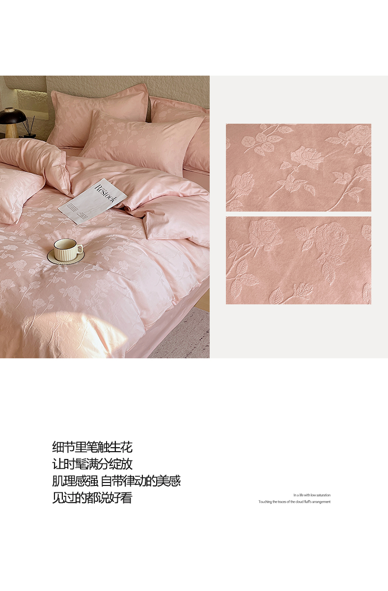 当前位置: 91家纺网 > 商品网购 > 床品套件 > 四件套 > 全棉普通四件套 > 帅露家纺 2026新款A类全棉纯棉亮面浮雕提花四件套 岁月留声-唯美粉