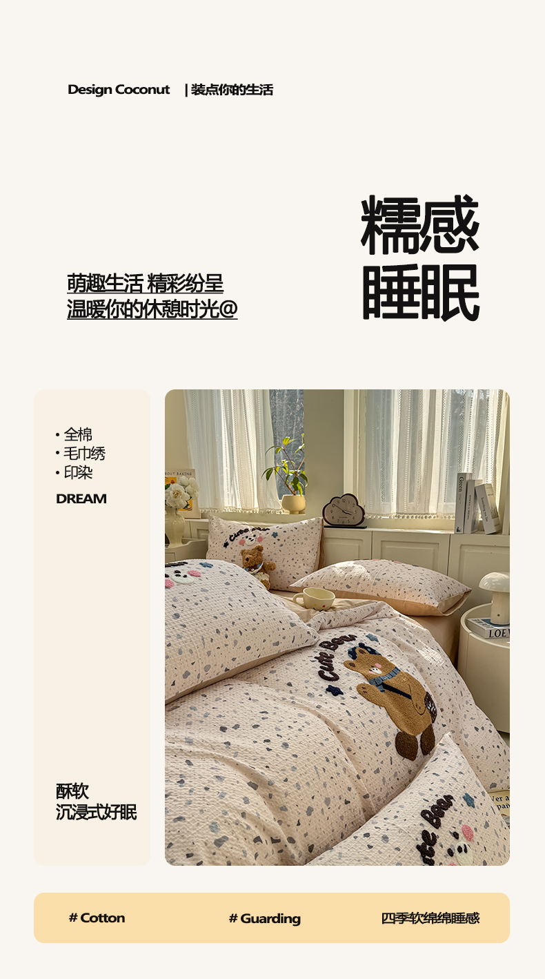 (总)帅露家纺 2026新款全棉纯棉华夫格毛巾绣四件套,爱心肥仔,波点熊,彩色日记,嘟嘟熊,绿色原野,文艺牛仔,雪崩崩,音乐派