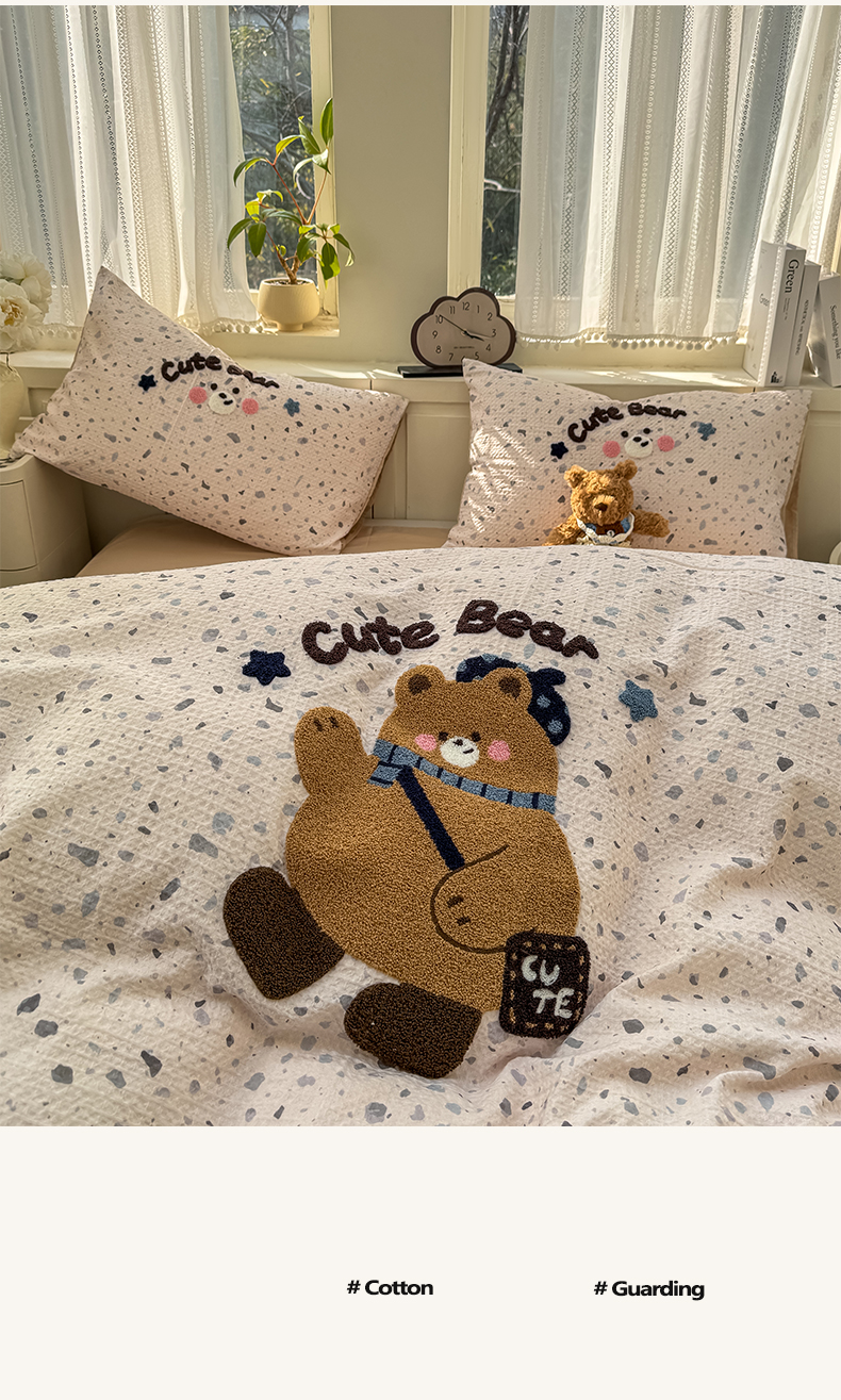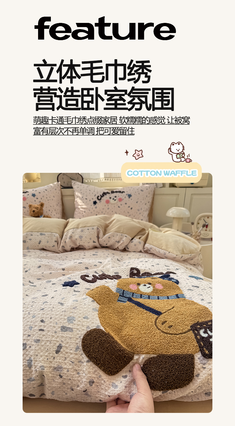 商品名称:帅露家纺 2026新款全棉纯棉华夫格毛巾绣四件套 嘟嘟熊