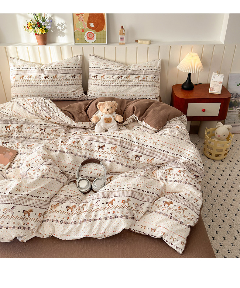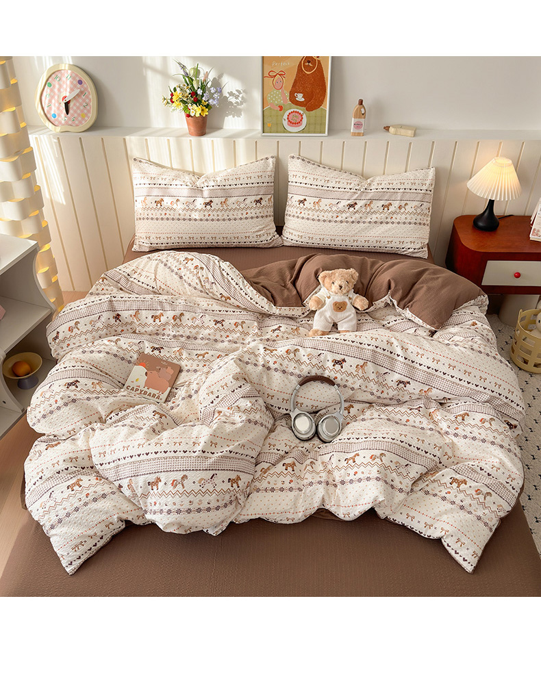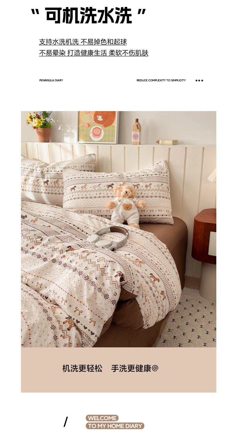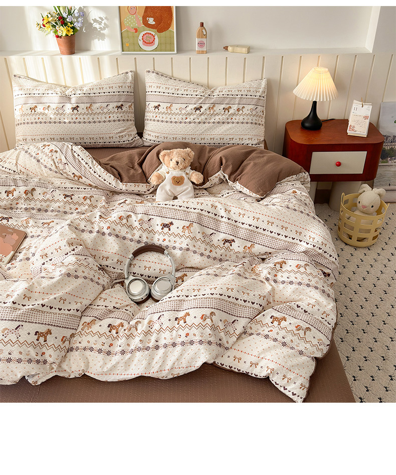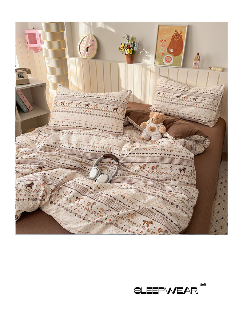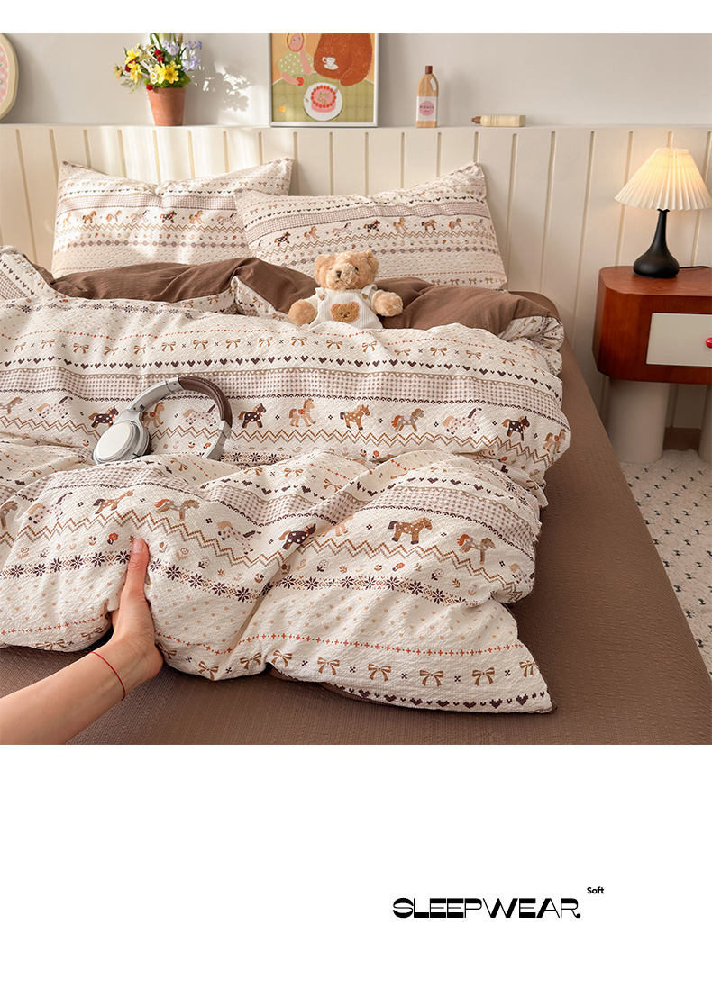 当前位置: 91家纺网 > 商品网购 > 床品套件 > 四件套 > 化纤普通四件套 > 奈颜 2026新款A类泡芙纱印花四件套学生宿舍三件套-费尔岛系列 费尔岛-三色木马