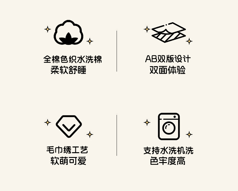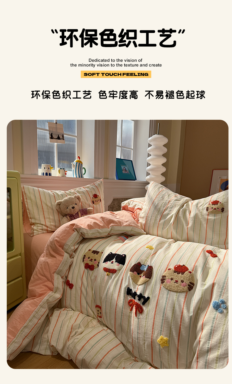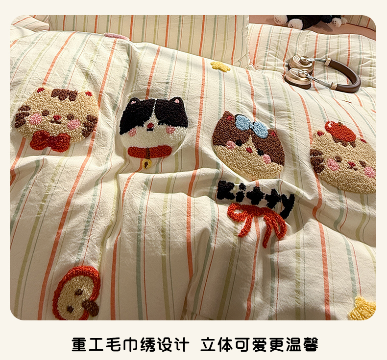 商品名称:曼町家居 2026春夏全棉纯棉水洗棉毛巾绣四件套 咪哈友