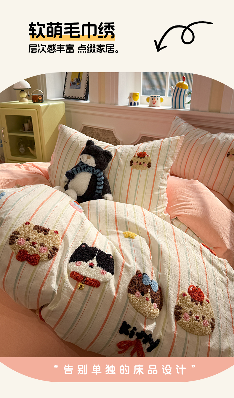 曼町家居 2026春夏全棉纯棉水洗棉毛巾绣四件套 咪哈友
