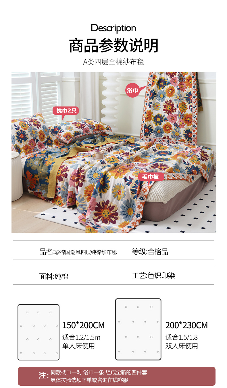 200x230cm四件套-毛巾被+浴巾+枕巾2只 | ¥180.00 |