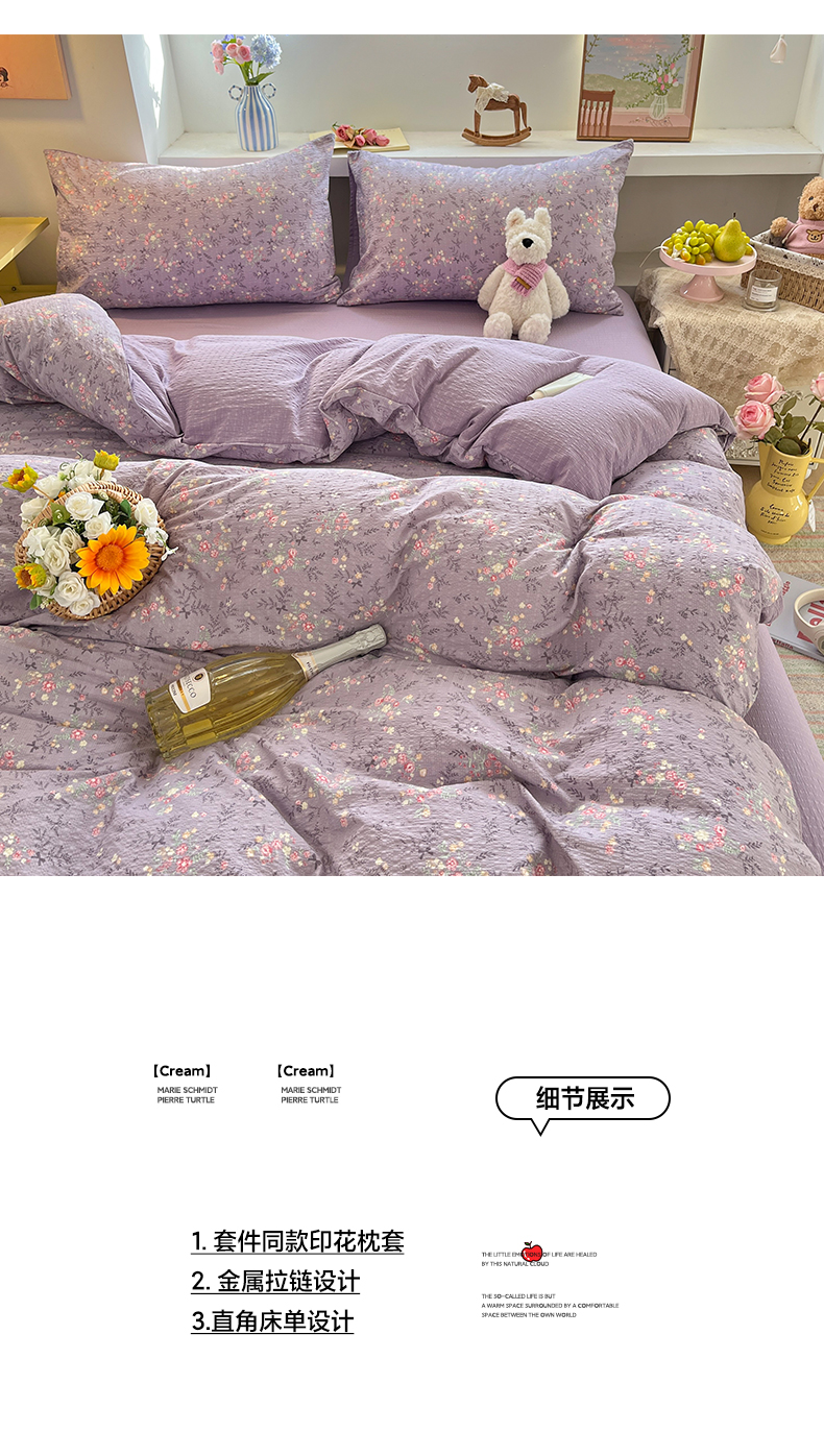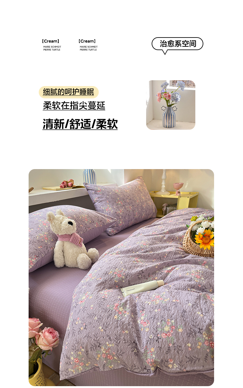 当前位置: 91家纺网 > 商品网购 > 床品套件 > 四件套 > 其它四件套 > 彩韵家纺 2026新款软糯泡芙纱印花四件套 花枝招展
