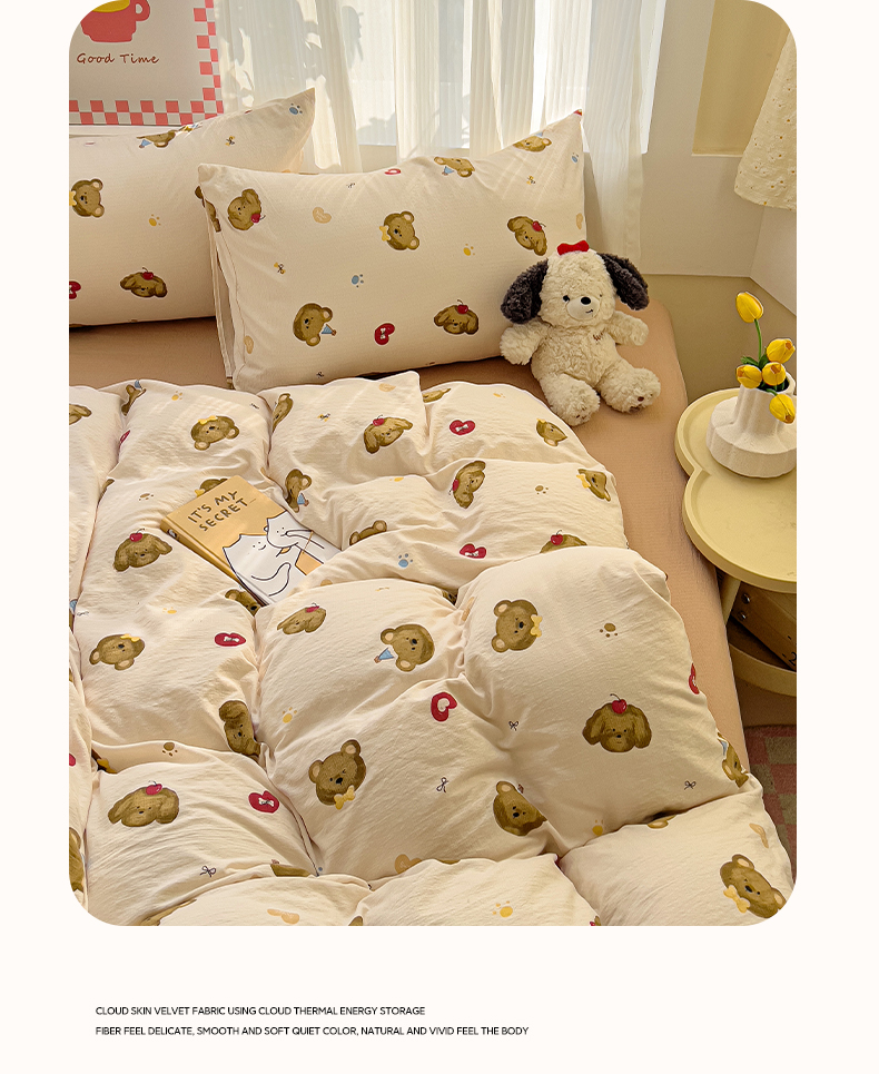 当前位置: 91家纺网 > 商品网购 > 床品套件 > 四件套 > 双层纱四件套 > 优选良品 2026新款加厚云感棉双层纱四件套小碎花被套床单床笠款学生三件套新款直播爆款 奇妙小熊-米