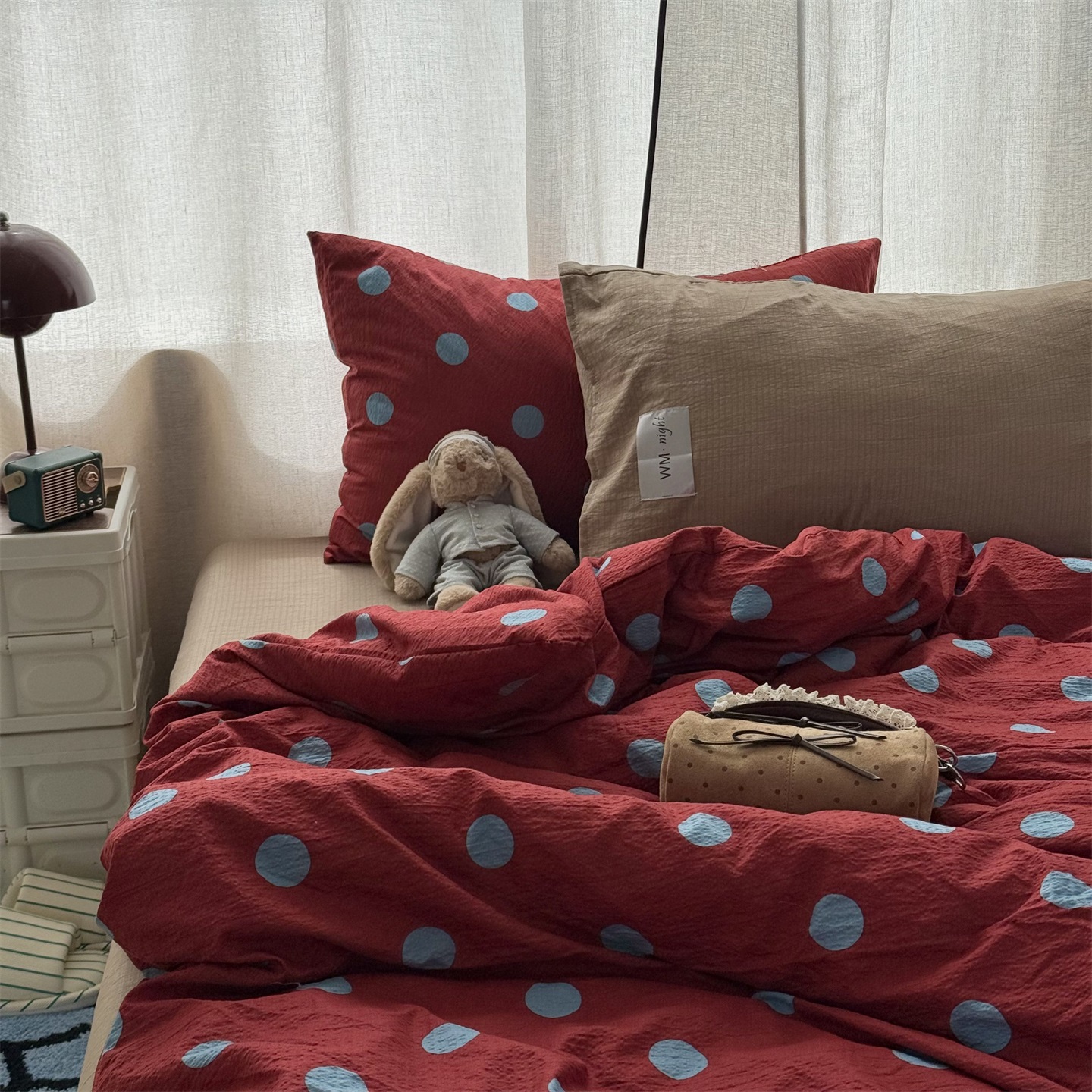 当前位置: 91家纺网 > 商品网购 > 床品套件 > 四件套 > 其它四件套 > 拾一 2026新款软糯木棉甜美波点系列四件套 甜美波点-篮咖