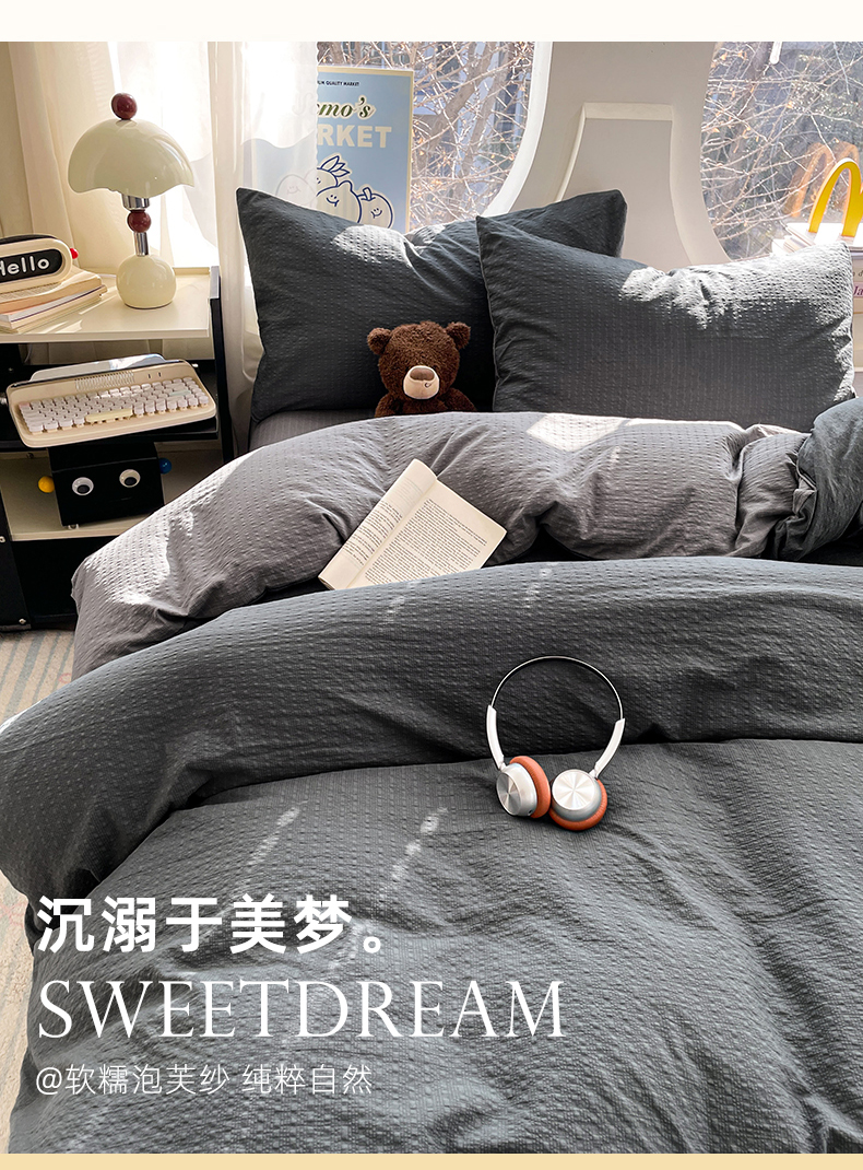 当前位置: 91家纺网 > 商品网购 > 床品套件 > 四件套 > 双层纱四件套 > 优承佳生活馆 2026新款软糯双拼泡芙纱四件套 暗夜灰+银优灰