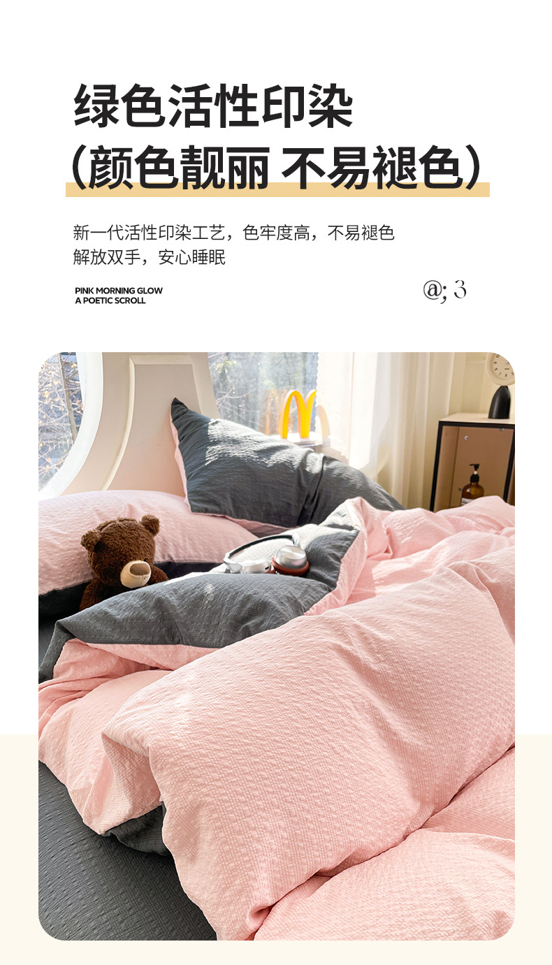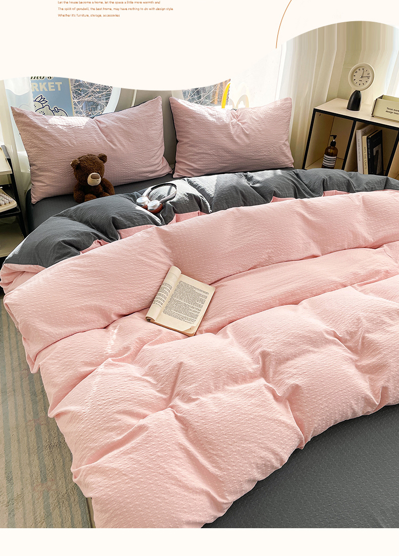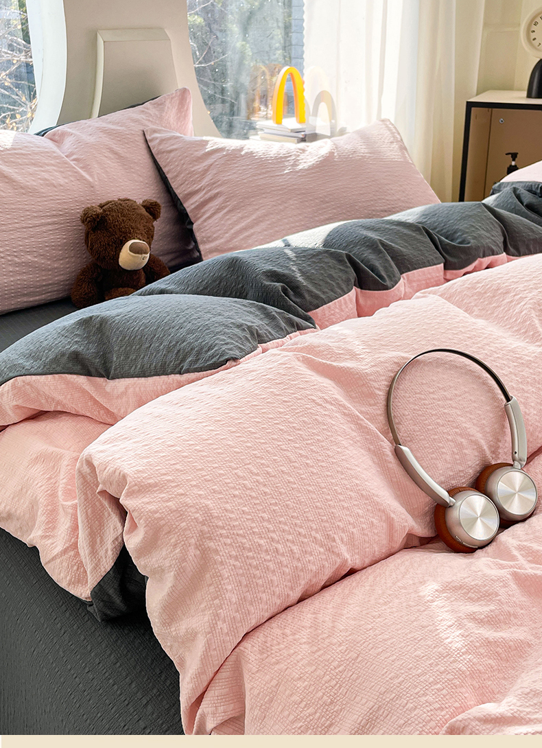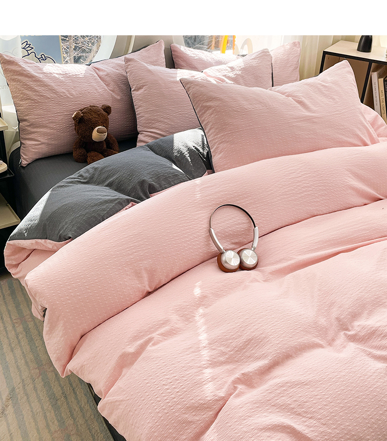 当前位置: 91家纺网 > 商品网购 > 床品套件 > 四件套 > 双层纱四件套 > 优承佳生活馆 2026新款软糯双拼泡芙纱四件套 樱花粉+暗夜灰