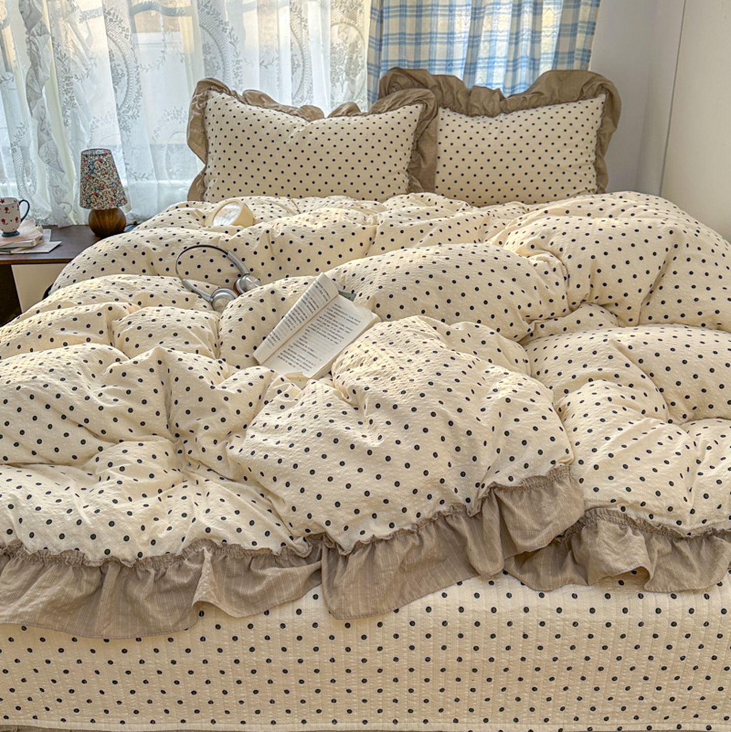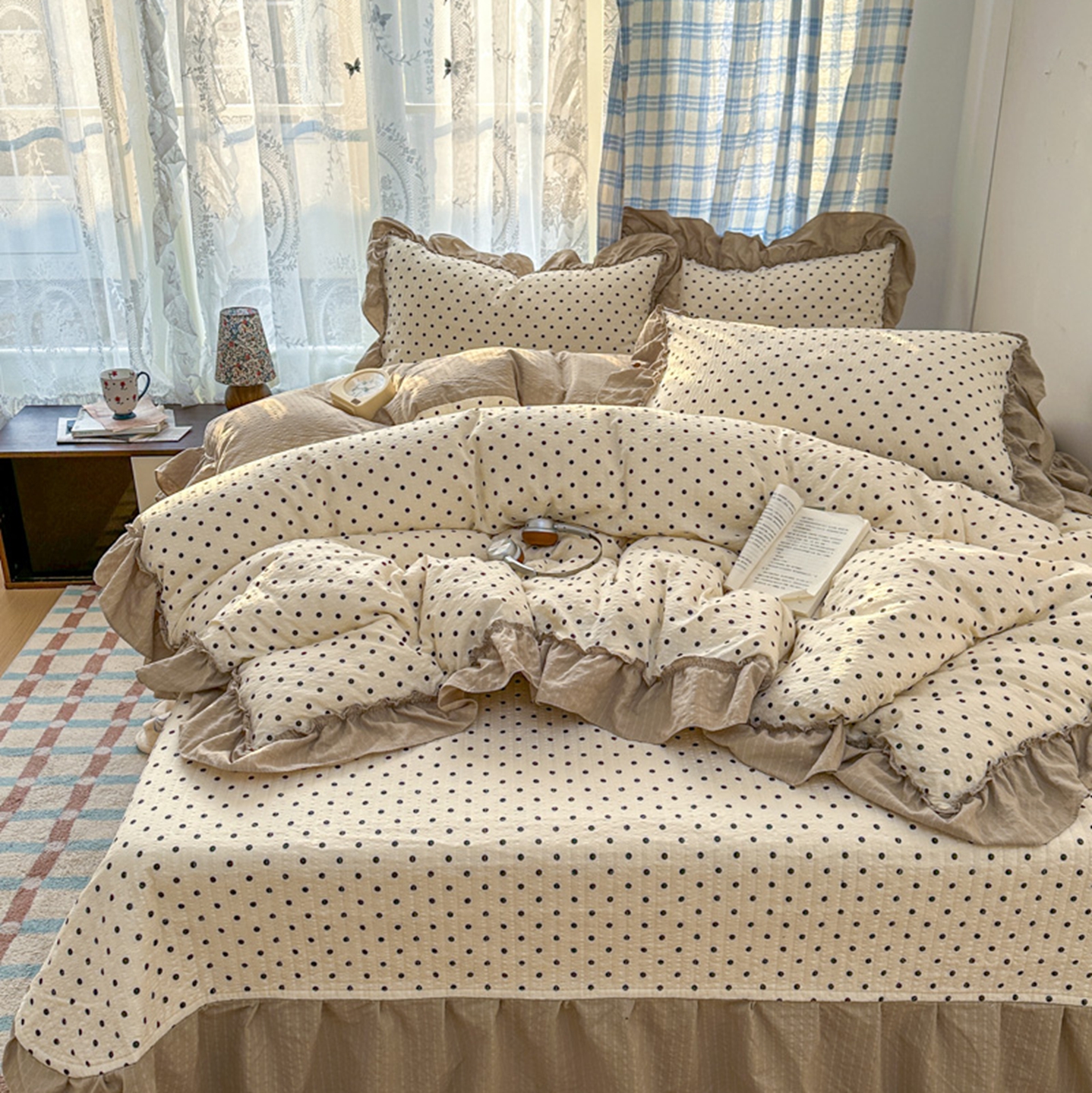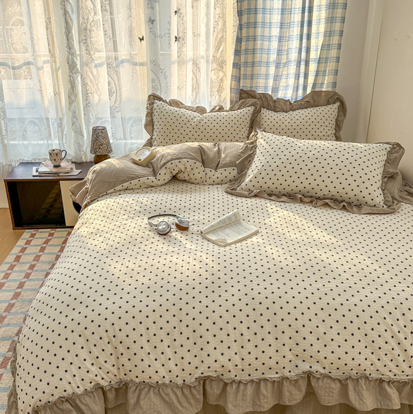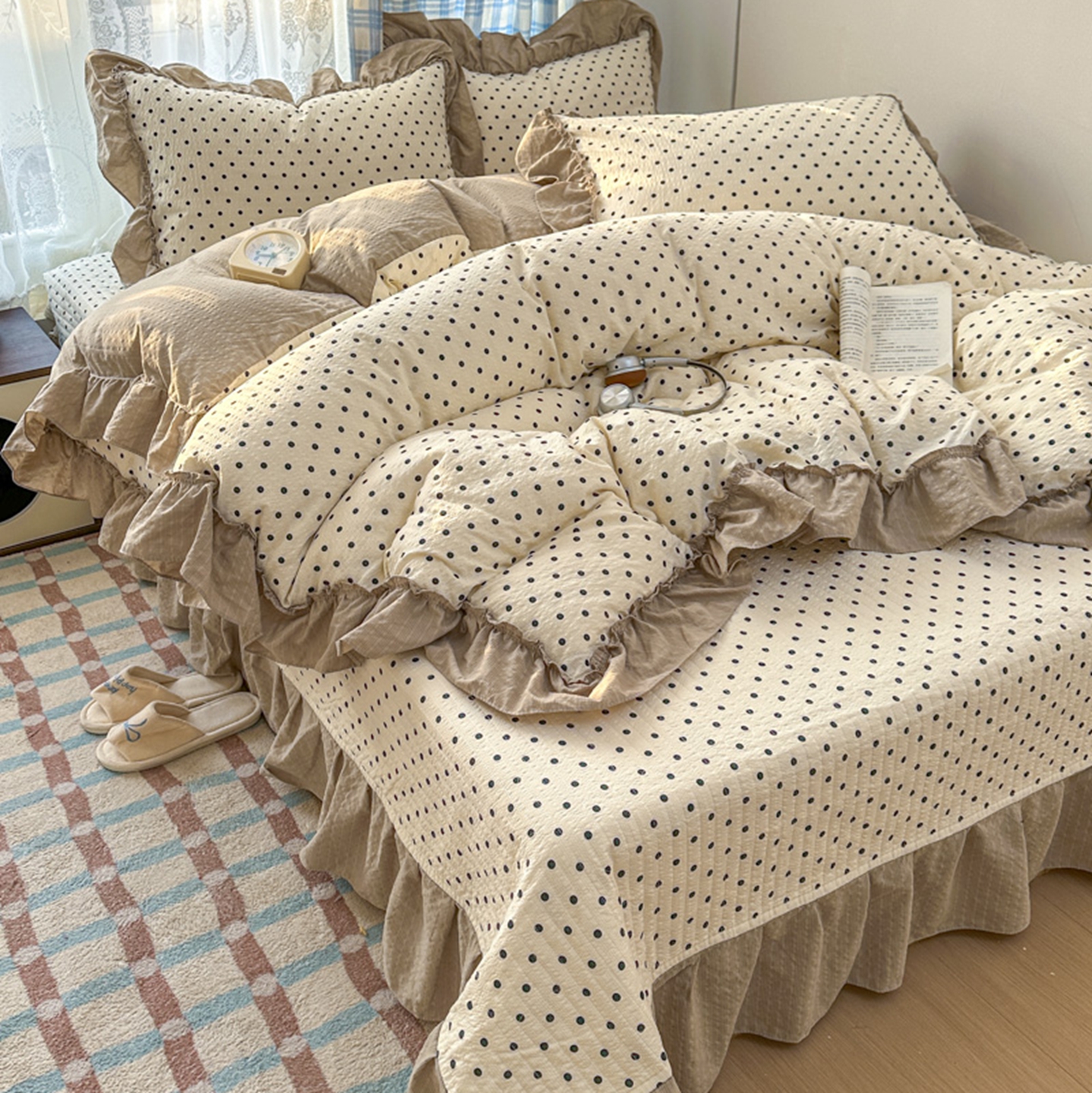 商品名称:欧尚 2026新款花边床盖四件套 奶油波点