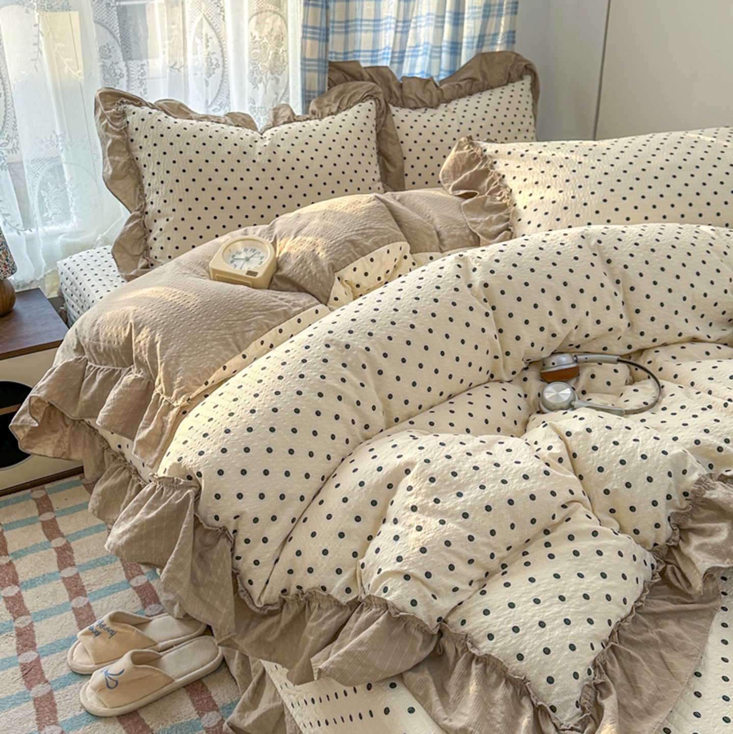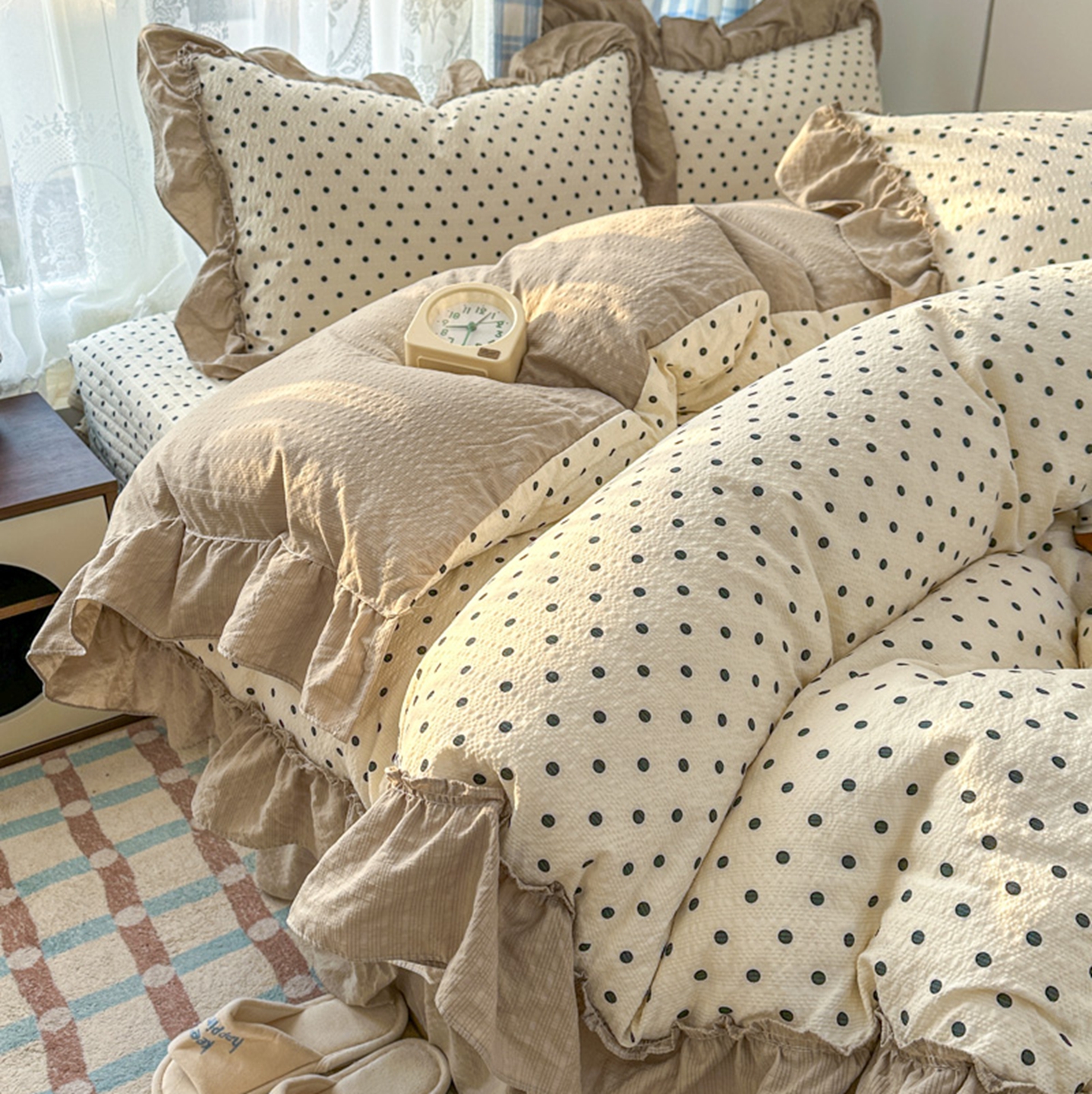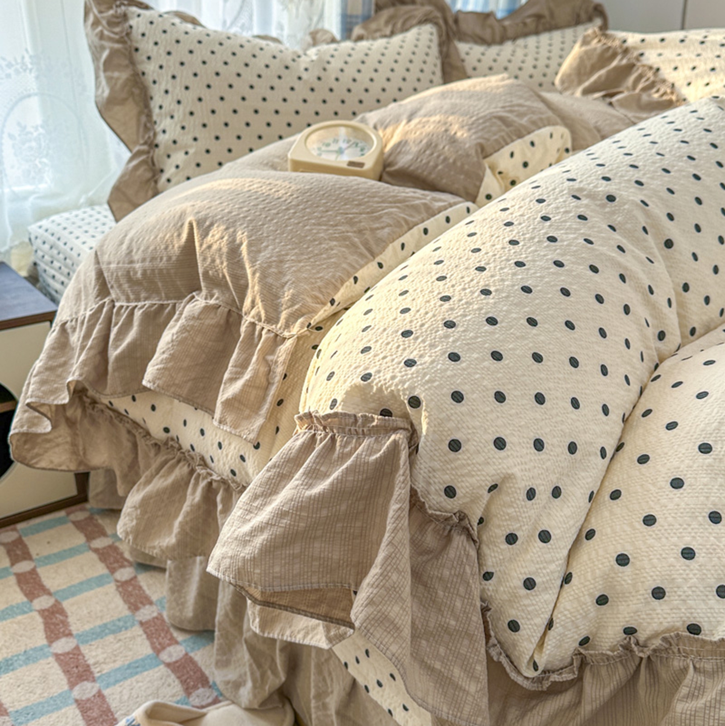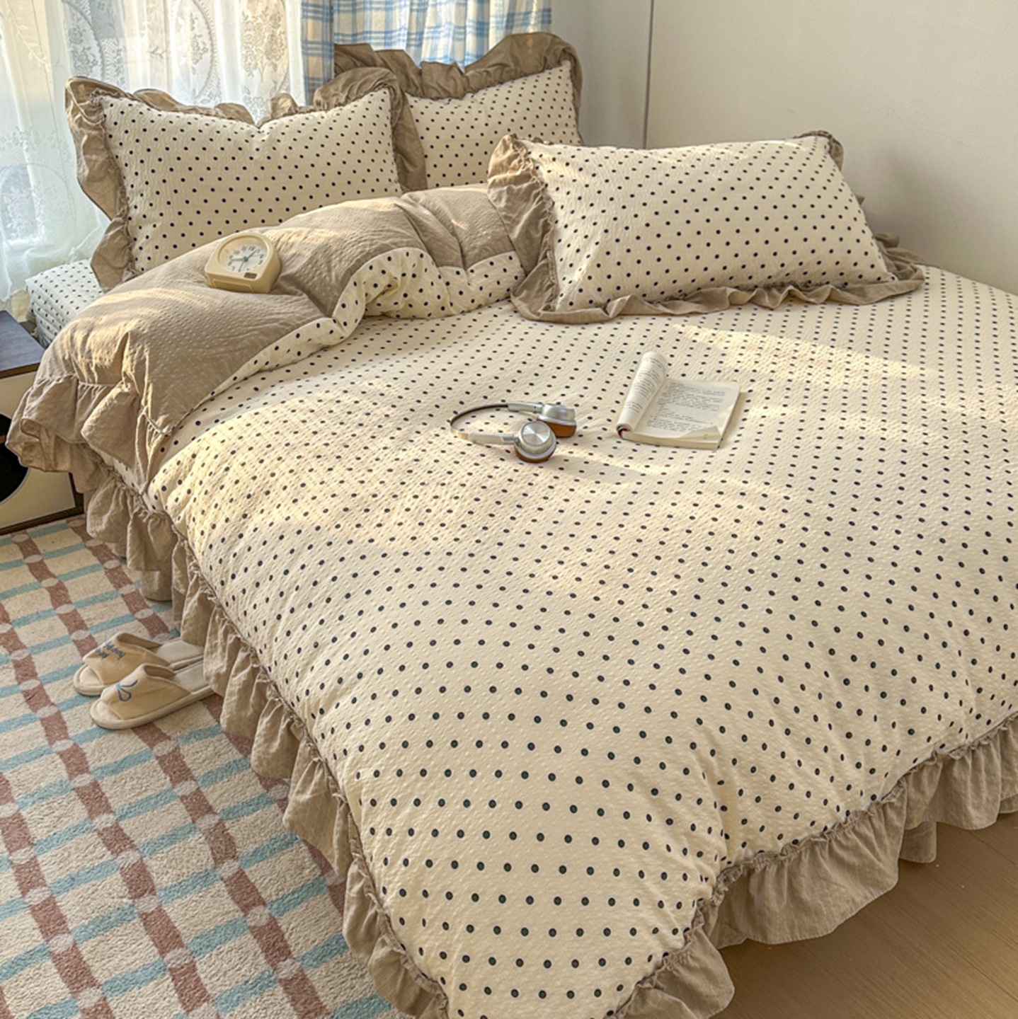 商品名称:欧尚 2026新款花边床盖四件套 奶油波点
