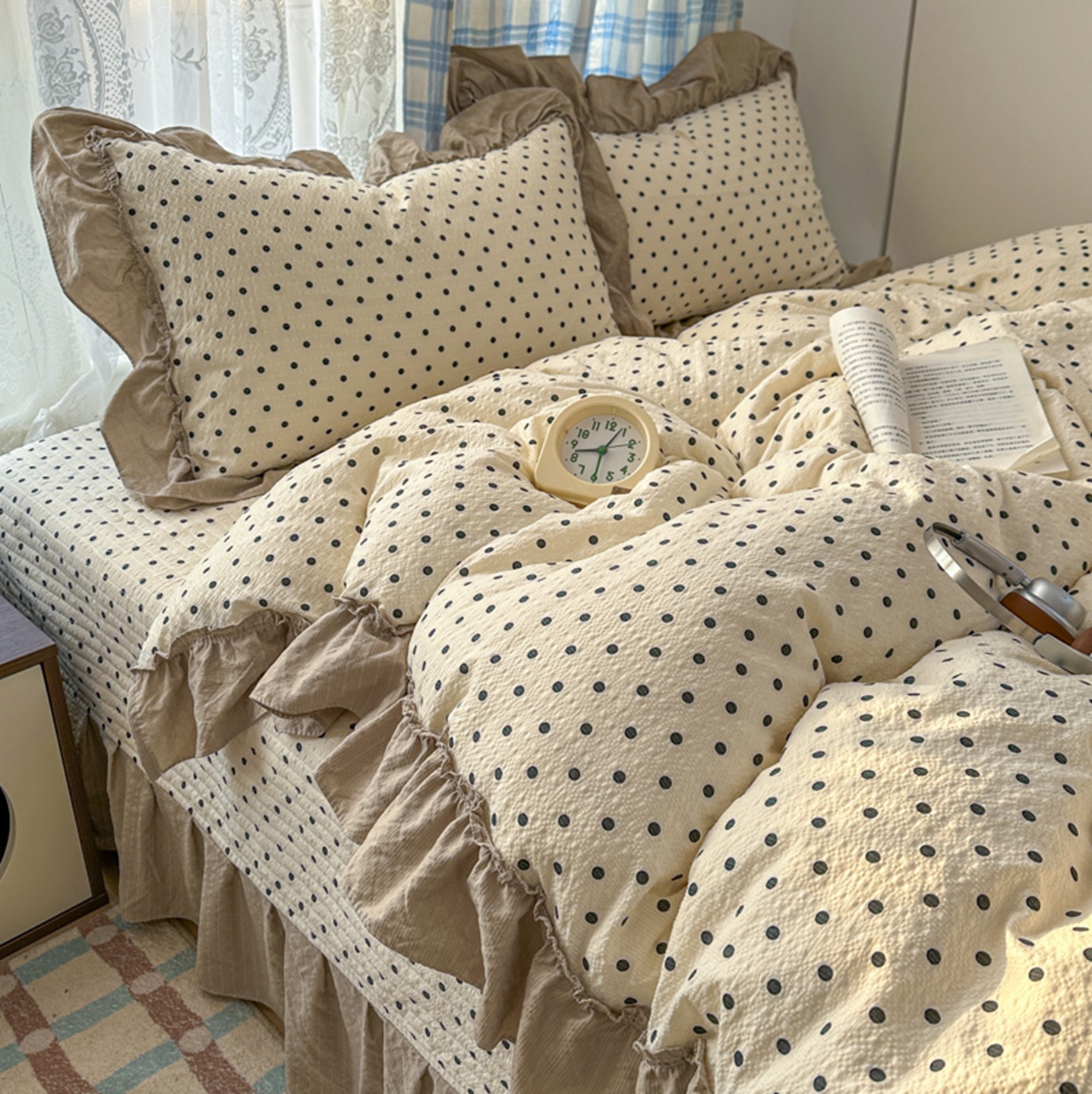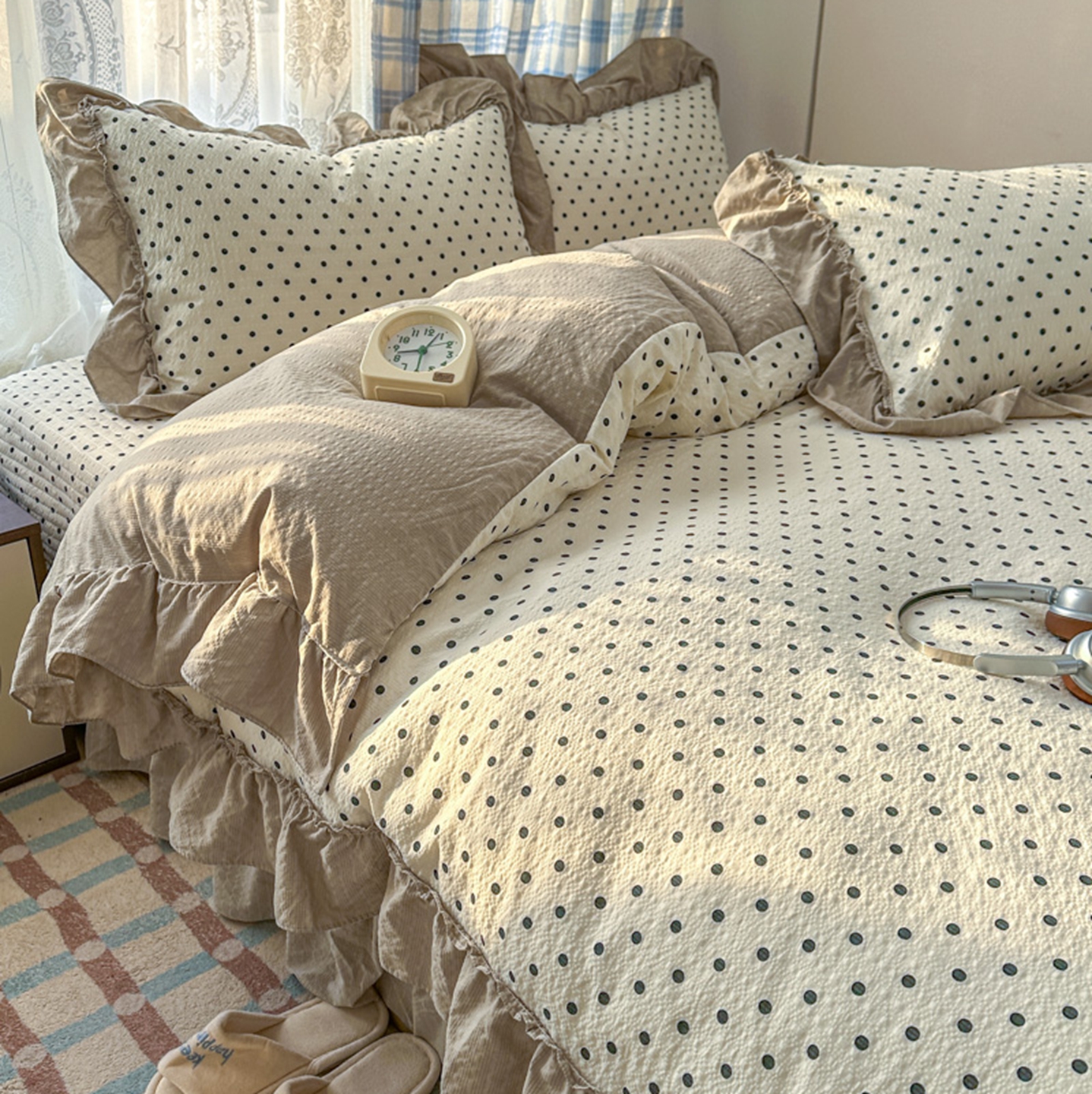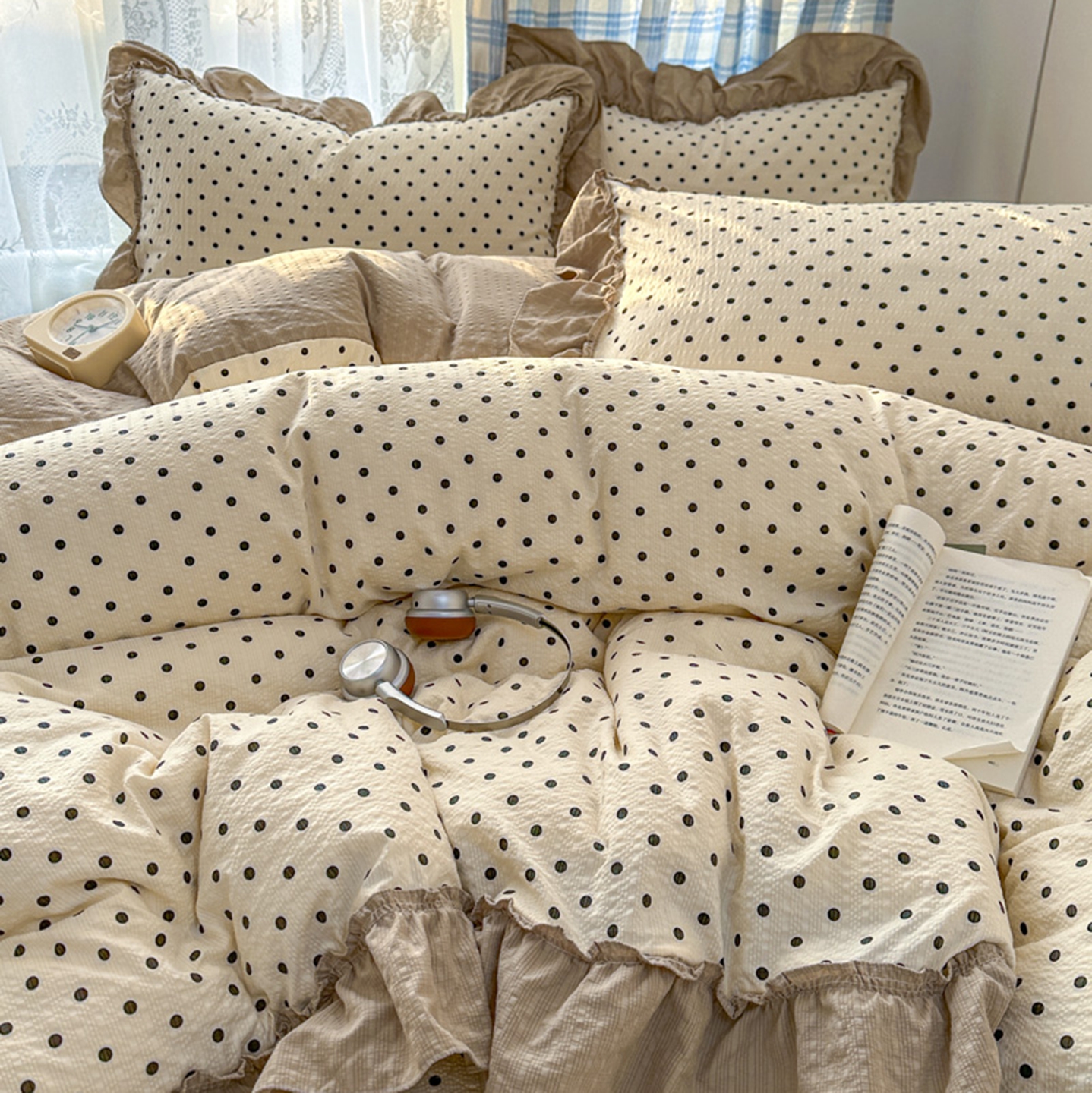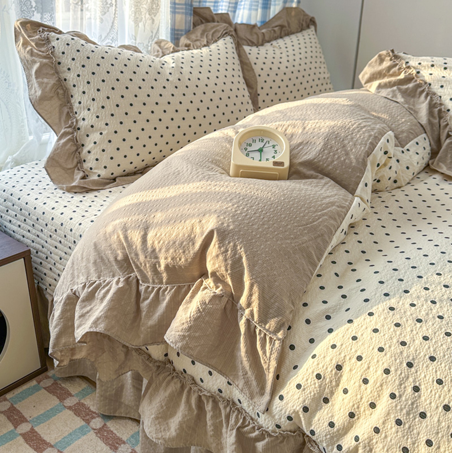 商品名称:欧尚 2026新款花边床盖四件套 奶油波点
