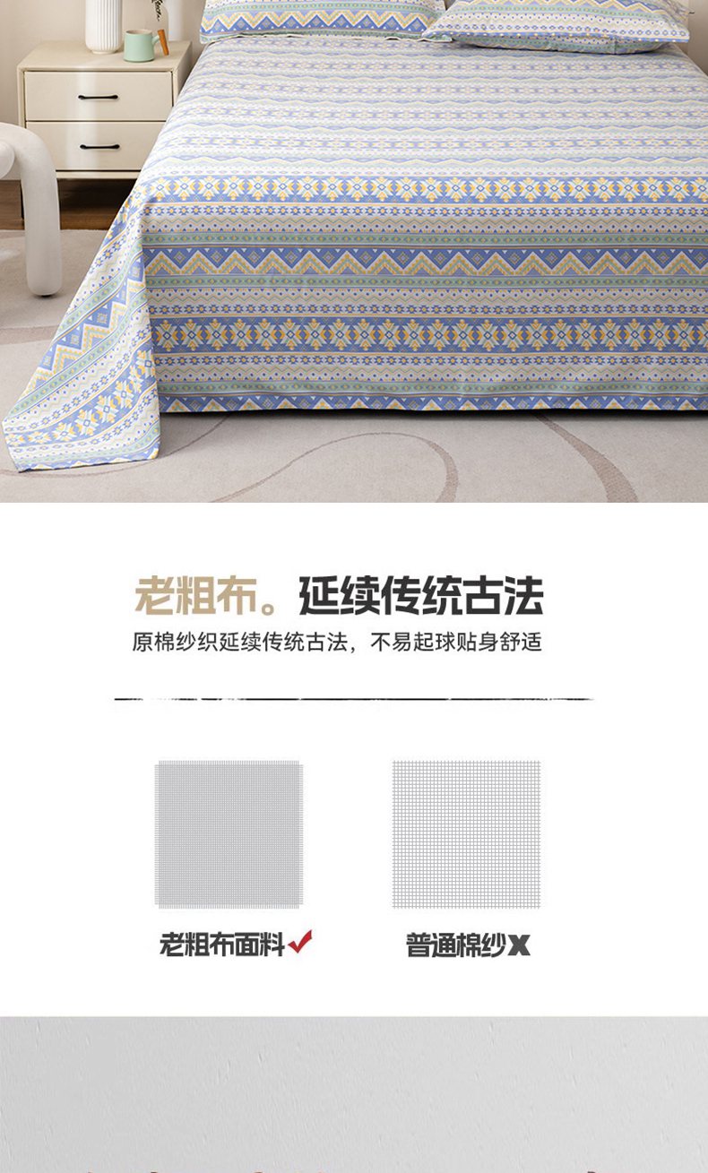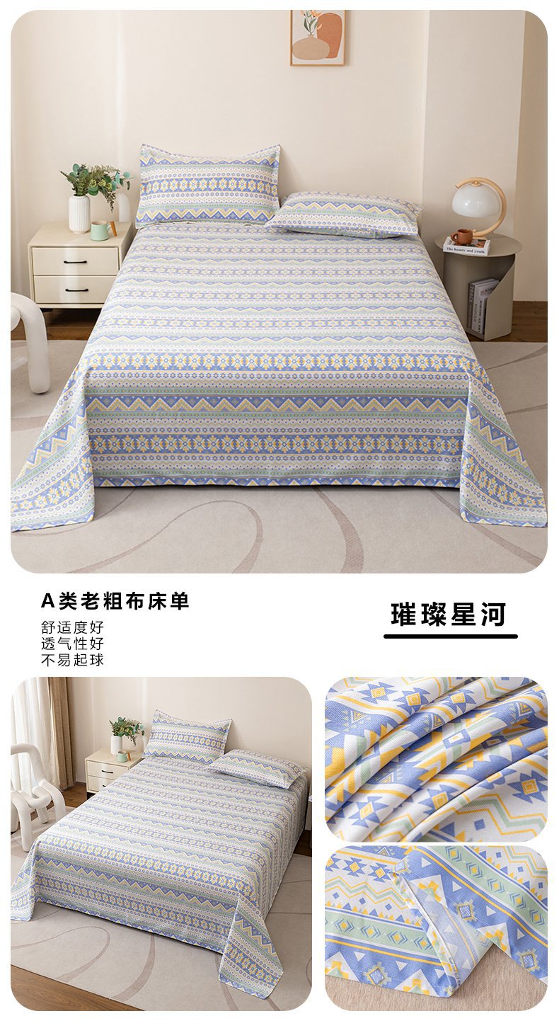 • 91家纺网 家纺一手货源 找家纺 居美良品 2026新款升级面料人字纹老粗布床单单件枕套可做凉席二三件套 璀璨星河